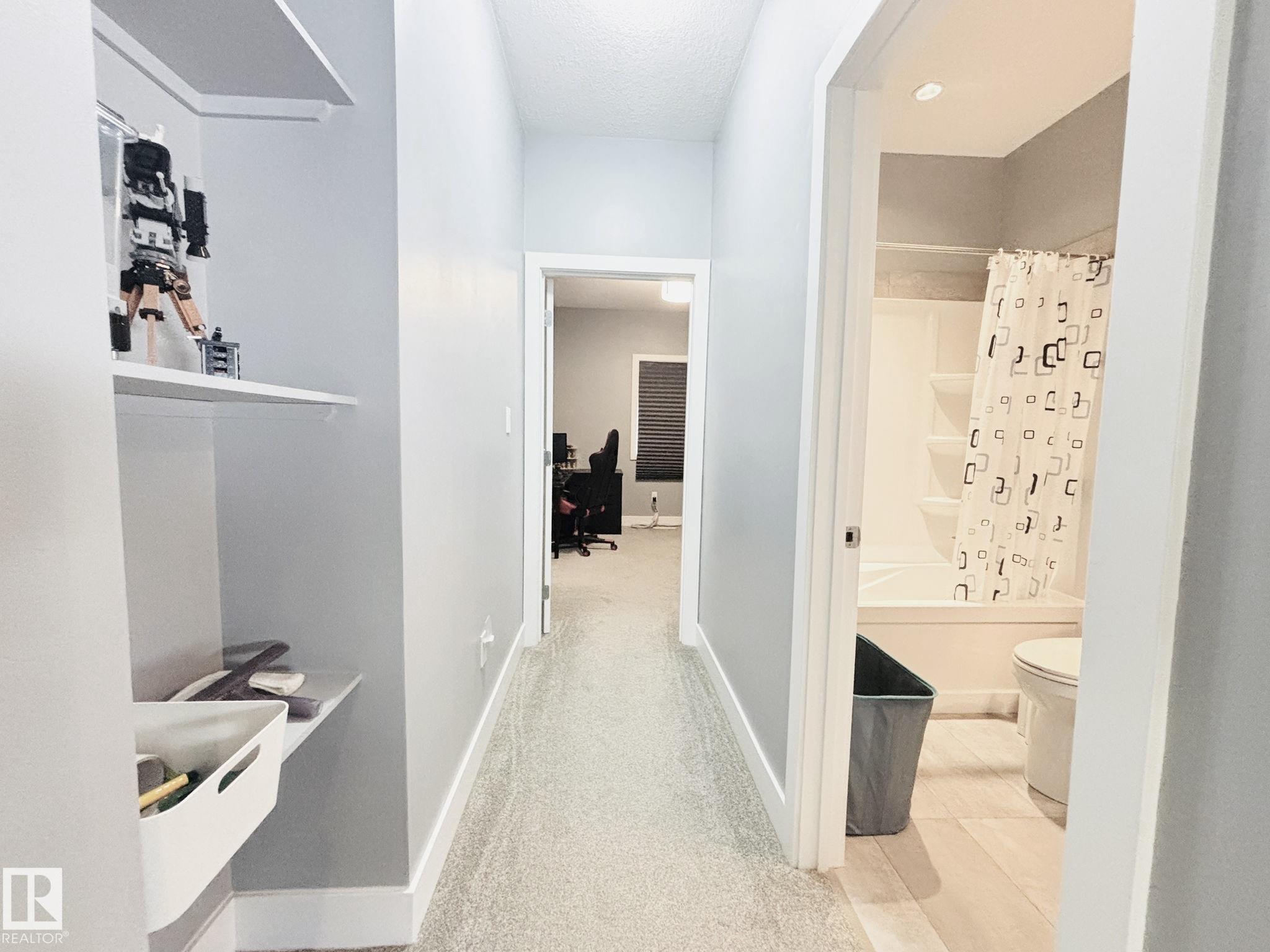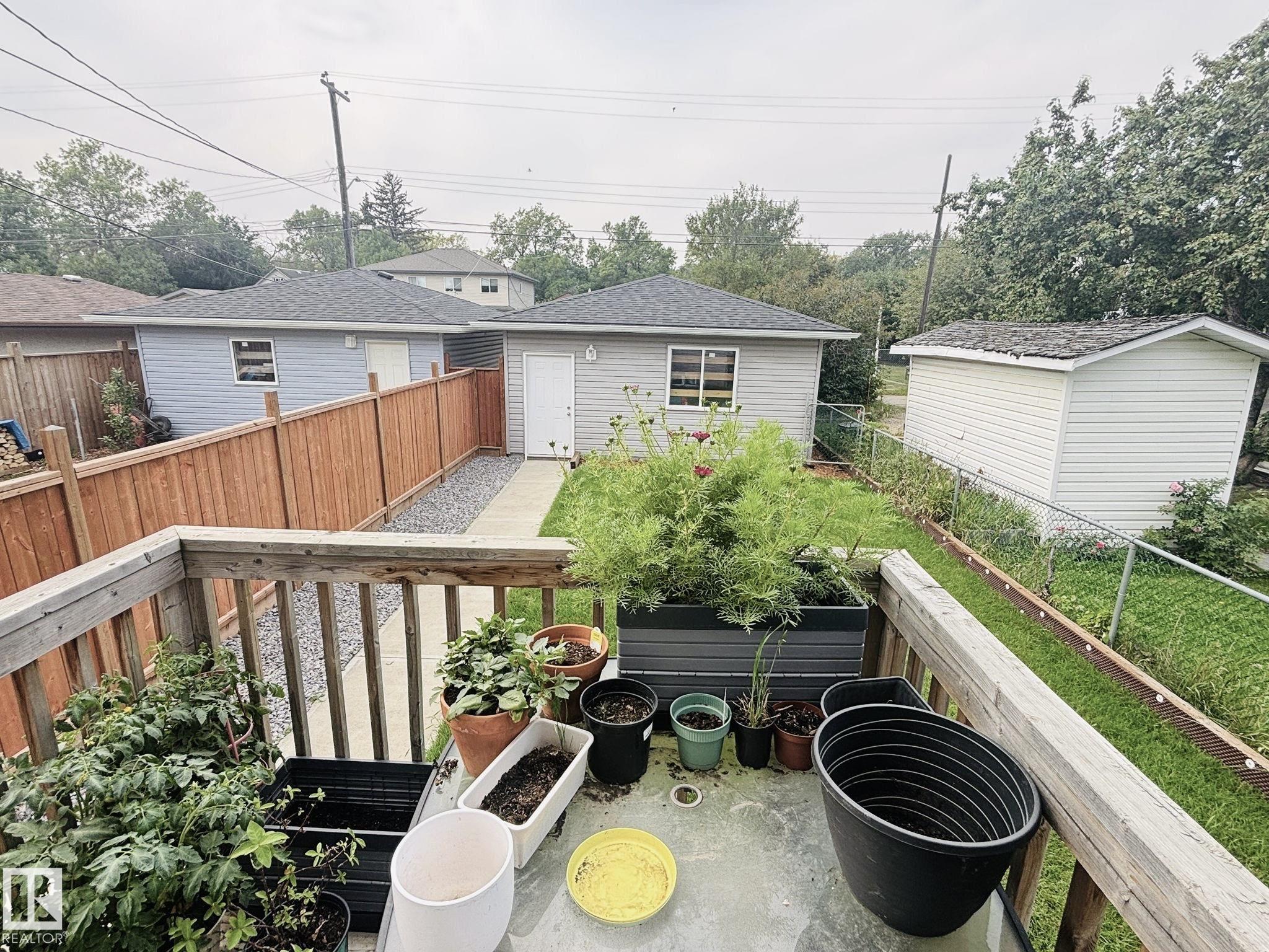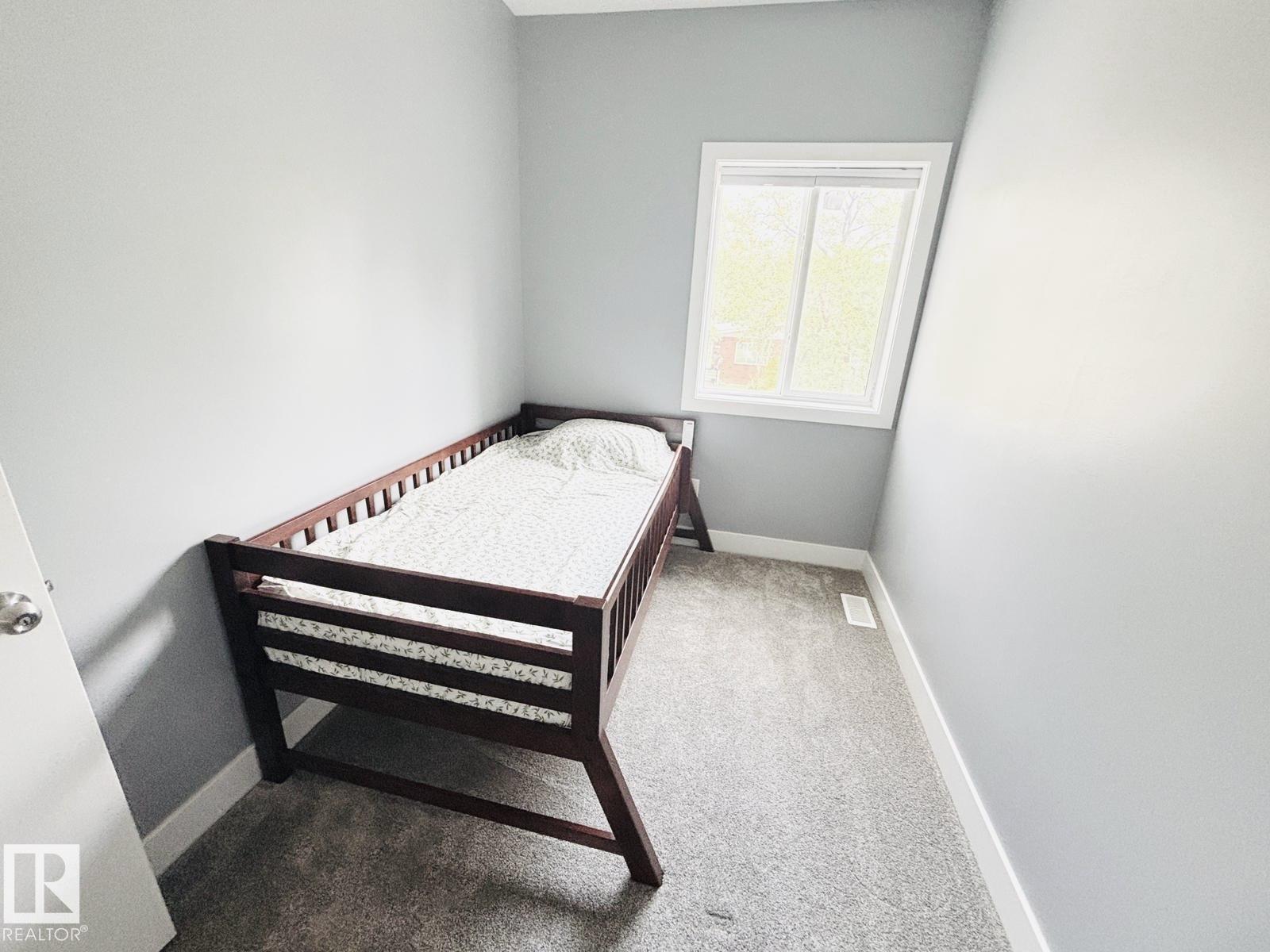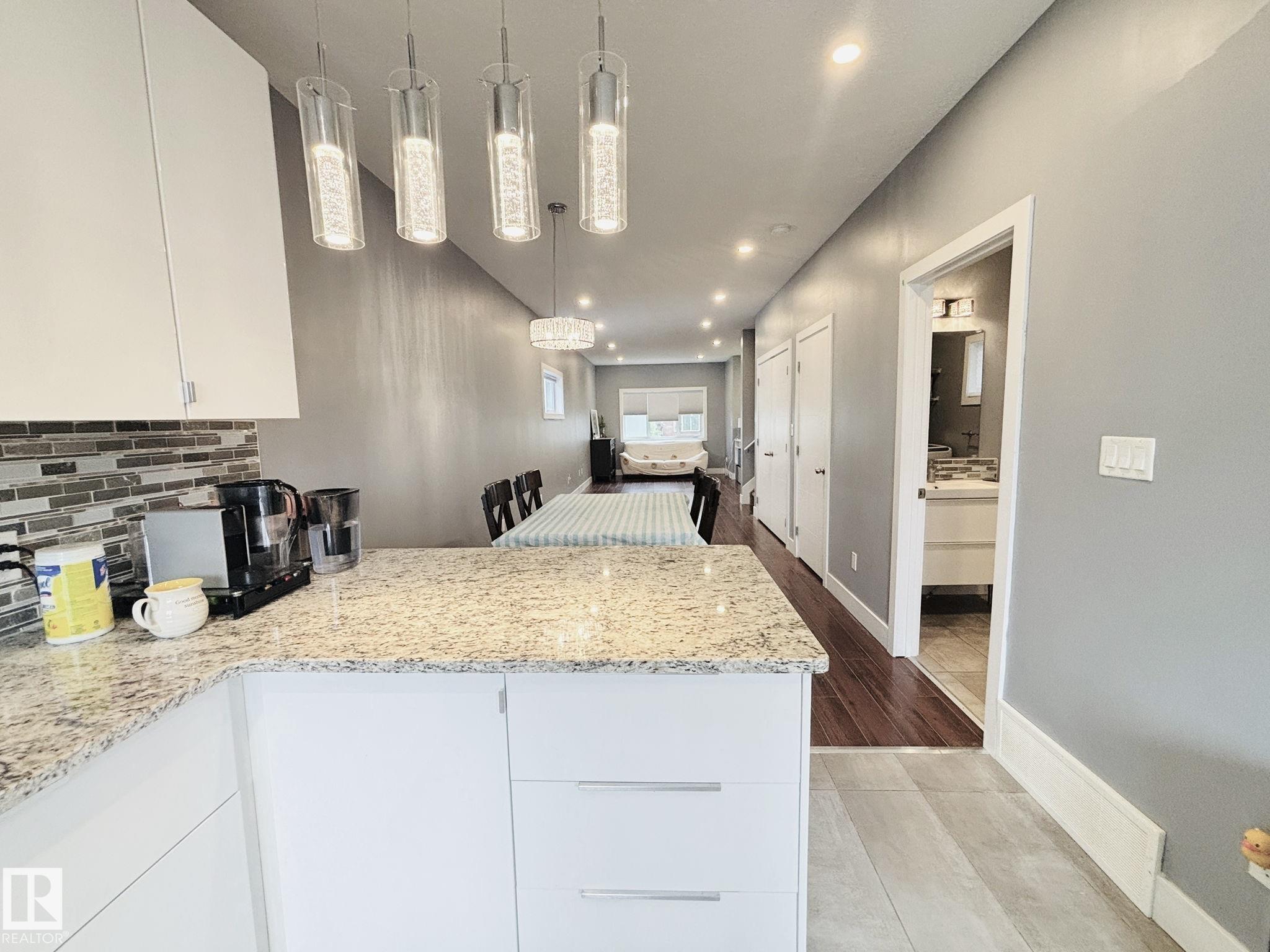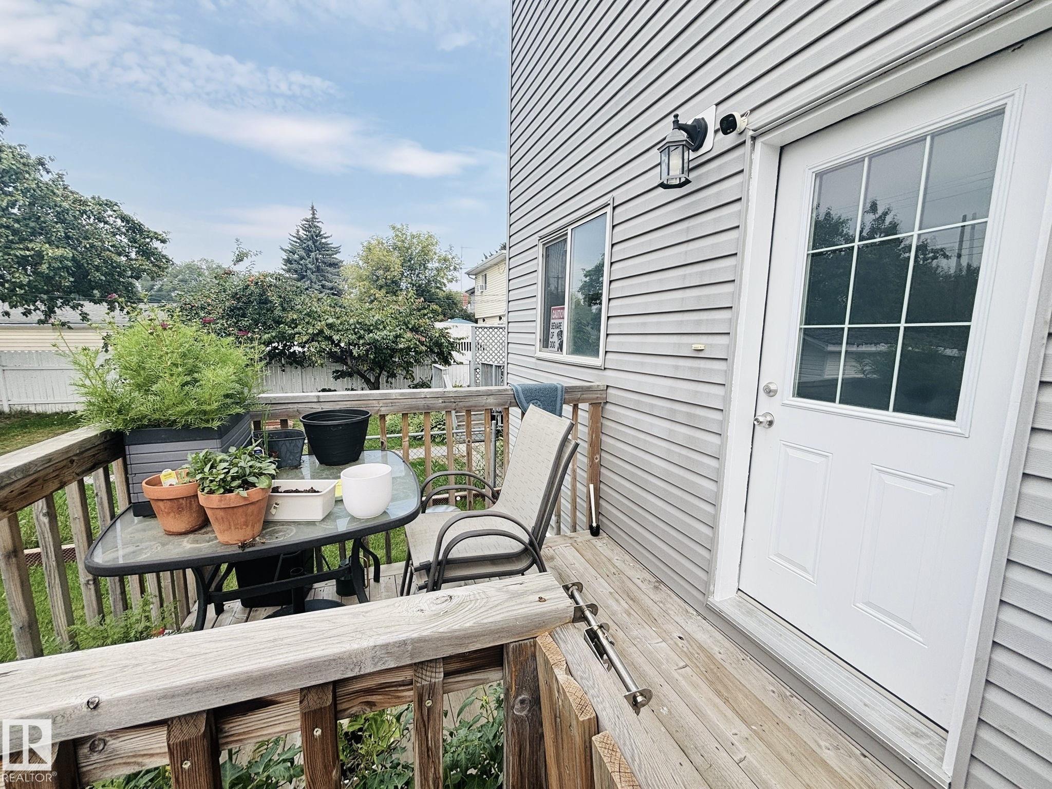 HIDDEN GEM! Custom built in 2017, this beautiful NEWER infill home is located in Edmonton's core area, just minutes to downtown, NAIT, LRT, schools, playgrounds, andall amenities. The main floor features 9FT ceilings, a spacious living room, bright dining area, and a modern kitchen with granite countertops & high-end stainless steel appliances, plus a half bath and laundry. Upstairs offers a bonus room, a generous primary suite with walk-in closet & 4-pc ensuite, two additional bedrooms, and a full bath. The separate side entrance leads to a 9FT basement with 4 large windows & full rough-ins--ready for development into a luxury family space or legal suite. Concrete walkways, deck, and new landscaping are complete. A double detached garage sits on the extra-deep 150FT lot, providing a large backyard for outdoor enjoyment. Move-in ready and perfectly located!