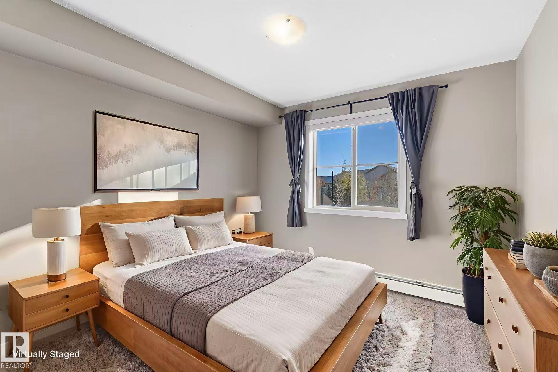 ORIGINAL OWNER -- IMMACULATE and MOVE-IN READY! This ULTRA-RARE, ULTRA-BRIGHT 2-BEDROOM, 2-FULL-BATH CORNER UNIT with a FLEX DEN features LUXURY VINYL FLOORING, modern QUARTZ COUNTERTOPS, and stainless-steel appliances. Comes with 2 PARKING STALLS - one underground and one surface. As you walk in, you'll find a FLEX AREA PERFECT FOR A DEN OR HOME OFFICE leading into a spacious kitchen, dining, and living area filled with natural light. The large primary bedroom includes a WALK-IN closet and full ENSUITE, while the second bedroom and 4-pc bath provide excellent privacy. Enjoy a COVERED BALCONY THAT DOES NOT FACE THE STREET, ideal for relaxing. Conveniently located near shopping, top-rated K-9 and high school, and minutes to the Edmonton Airport. Don't miss out!