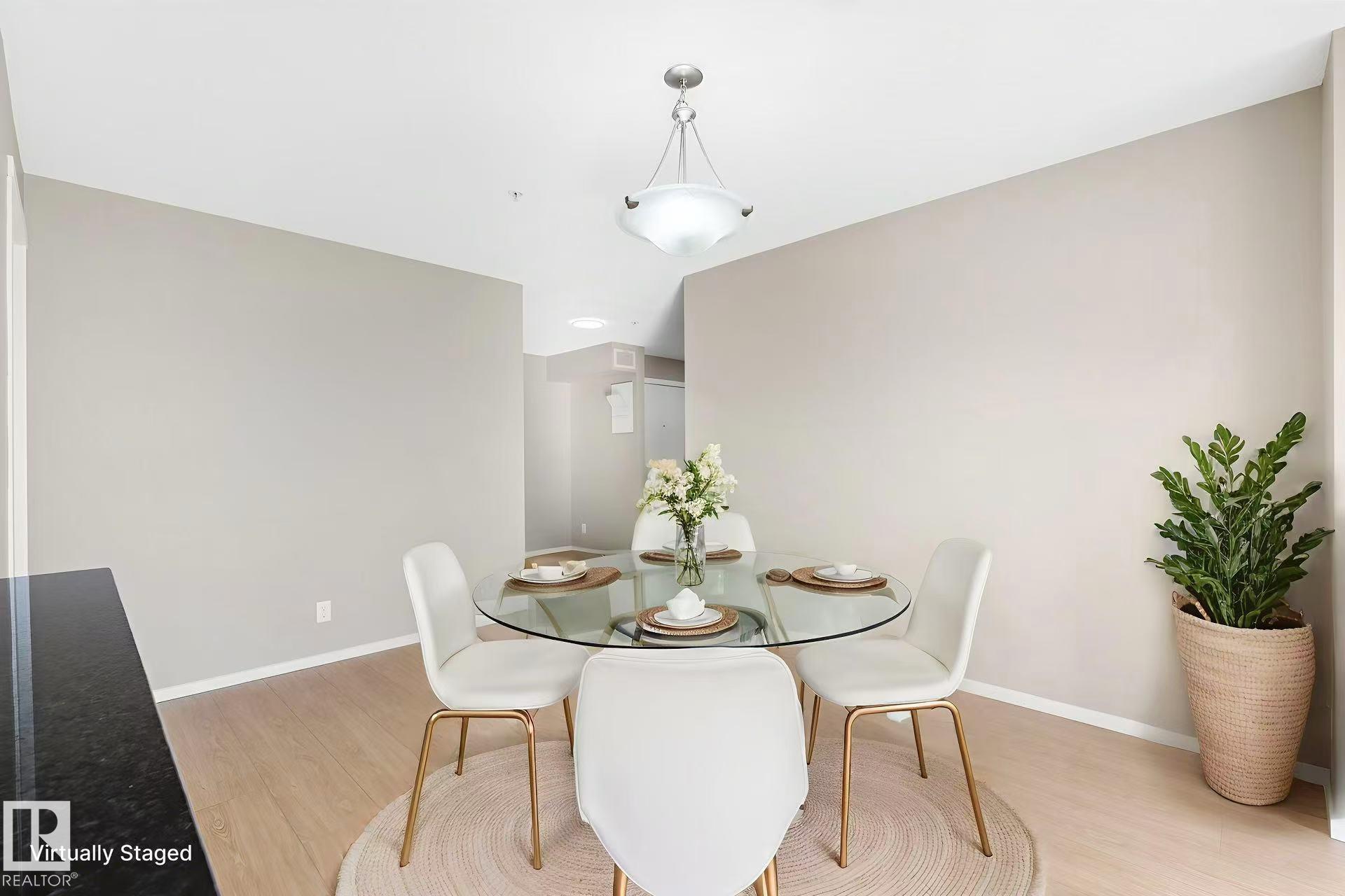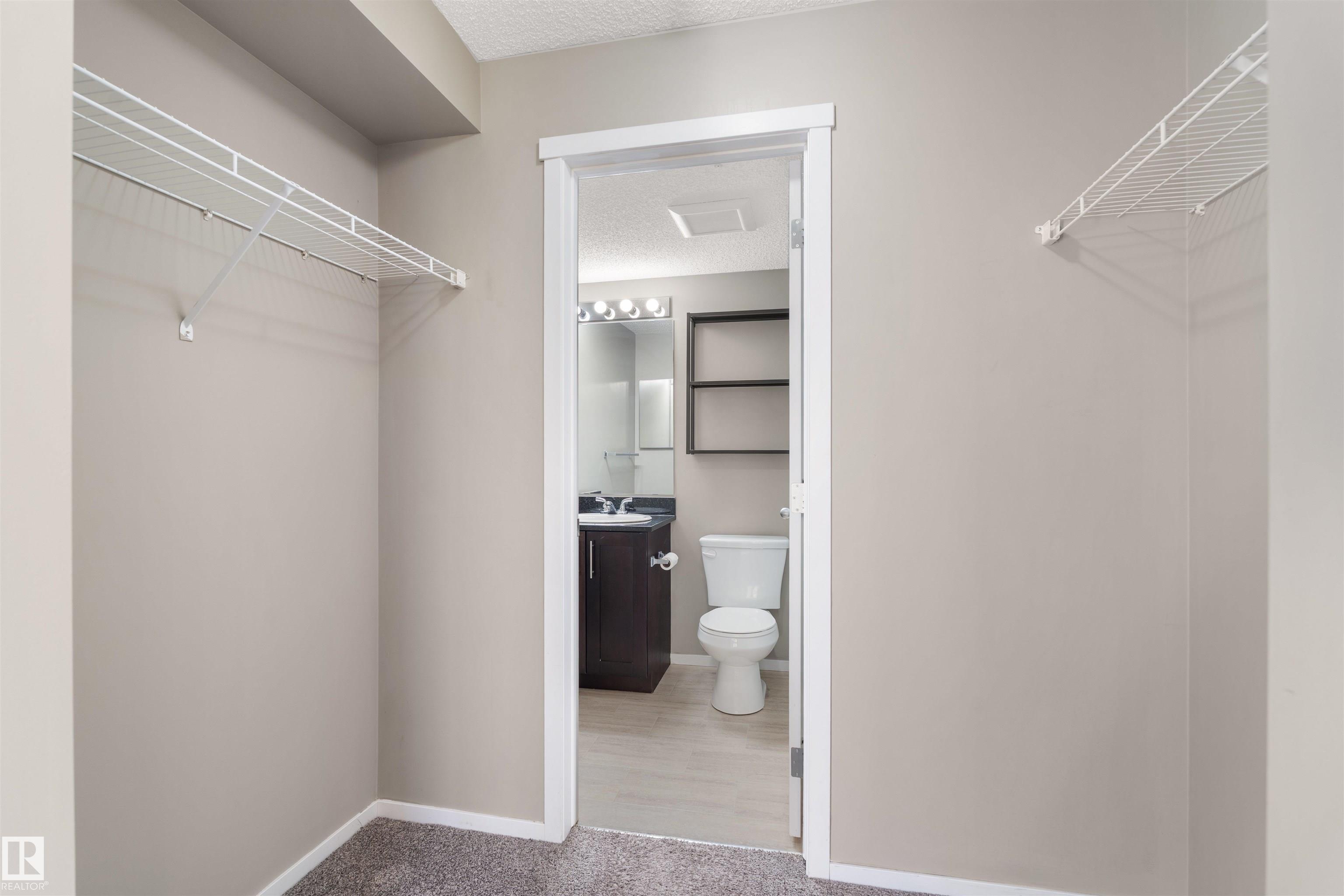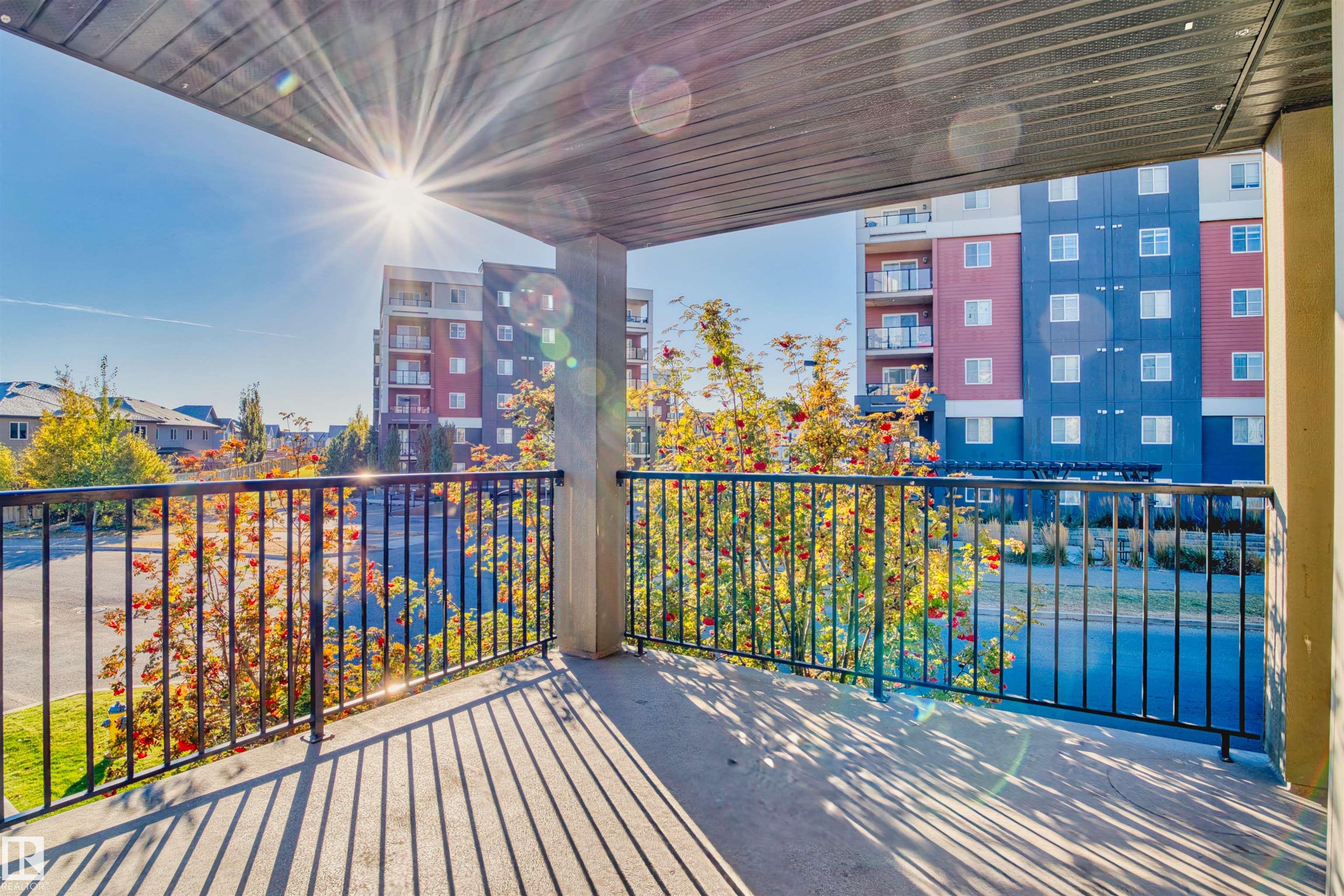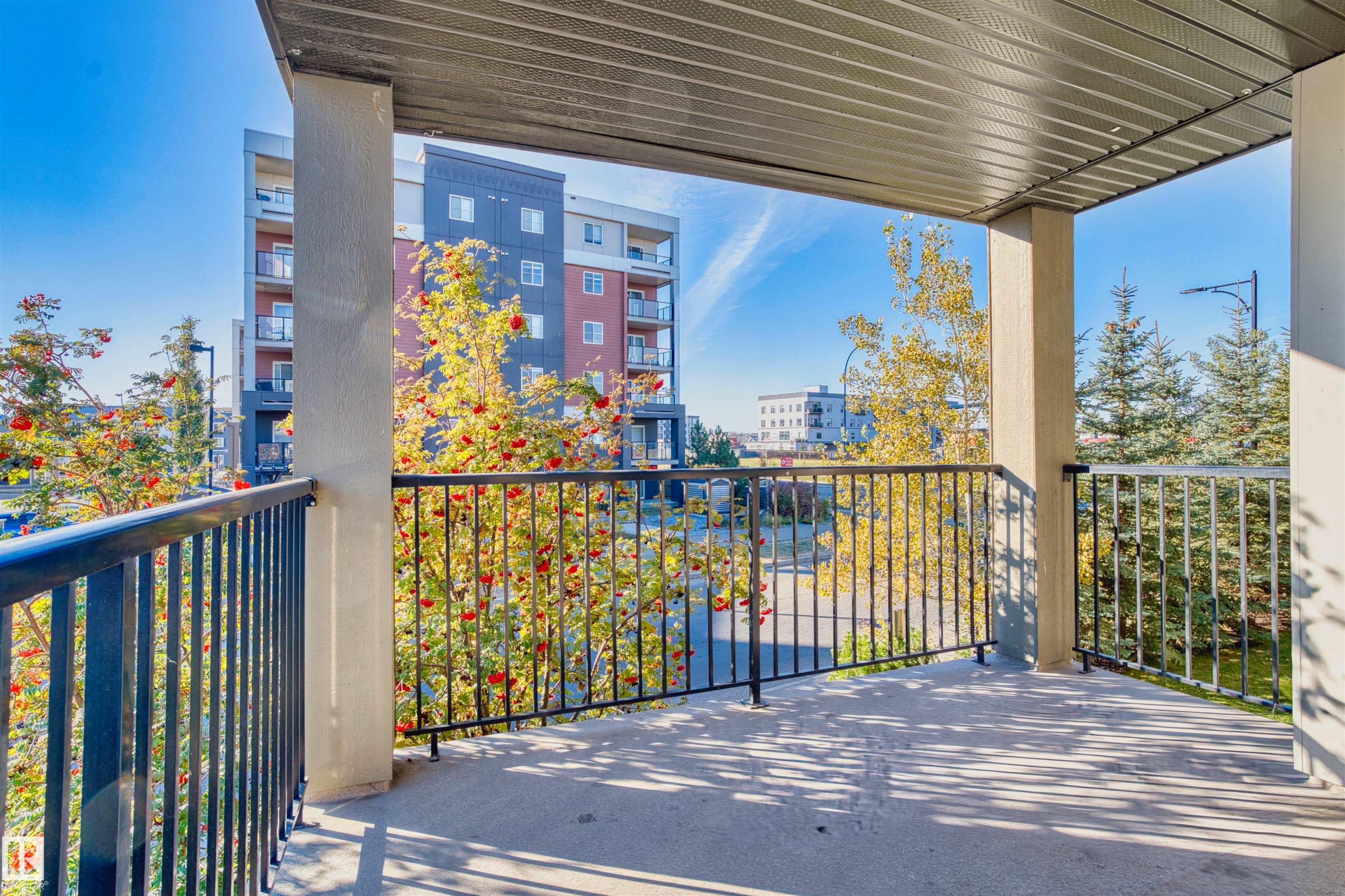 ORIGINAL OWNER -- IMMACULATE and MOVE-IN READY! This ULTRA-RARE, ULTRA-BRIGHT 2-BEDROOM, 2-FULL-BATH CORNER UNIT with a FLEX DEN features LUXURYVINYL FLOORING, modern QUARTZ COUNTERTOPS, and stainless-steel appliances. Comes with 2 PARKING STALLS - one underground and one surface. As you walk in, you'll find a FLEX AREA PERFECT FOR A DEN OR HOME OFFICE leading into a spacious kitchen, dining, and living area filled with natural light. The large primary bedroom includes a WALK-IN closet and full ENSUITE, while the second bedroom and 4-pc bath provide excellent privacy. Enjoy a COVERED BALCONY THAT DOES NOT FACE THESTREET, ideal for relaxing. Conveniently located near shopping, top-rated K-9 and high school, and minutes to the Edmonton Airport. Don't miss out!