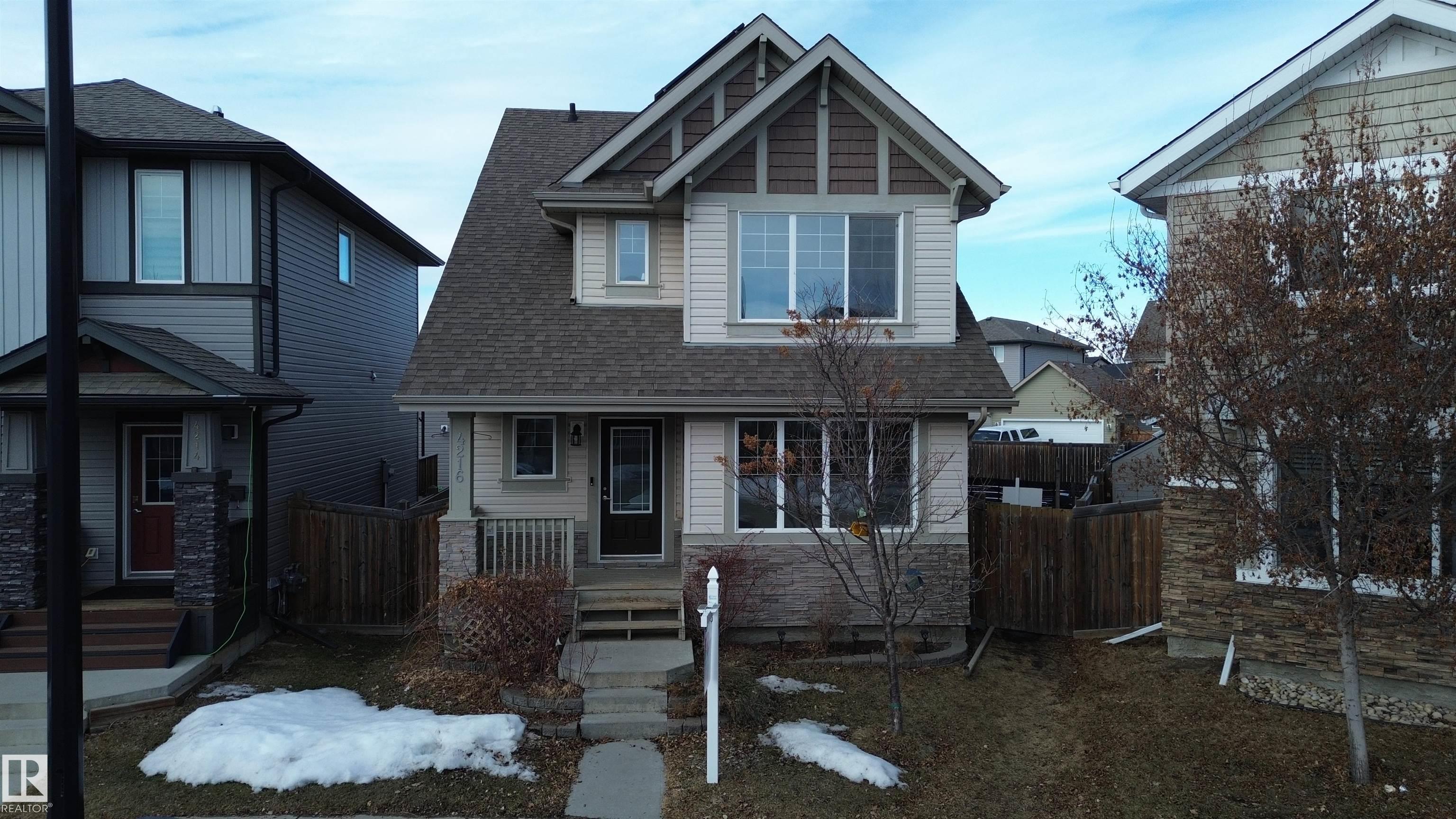 Must-See Legal Basement Home in Allard! Welcome to this beautifully upgraded home located in the desirable community of Allard, just a 2-minute walk to Dr. Lila Fahlman School, 2-minute drive to the high school and commercial plaza,and offering quick access to Anthony Henday Drive and Highway 2. Conveniently close to Costco and the Edmonton Airport. Situated on a huge pie-shaped lot, this home features a rare triple detached garage at the back and is loaded with upgrades throughout. The main floor offers a den, an open-concept kitchen, a spacious living area, and a bright dining space--perfect for family living and entertaining. The upper level includes 3 cozy bedrooms and 2 full bathrooms, providing comfort and functionality for the whole family. This home is designed for efficiency and modern living with Solar panels,2 furnaces,2 tankless hot water heaters, New hardwood floor . The legal basement suite has its own kitchen and a full bathroom, making it ideal for extended family or rental income.