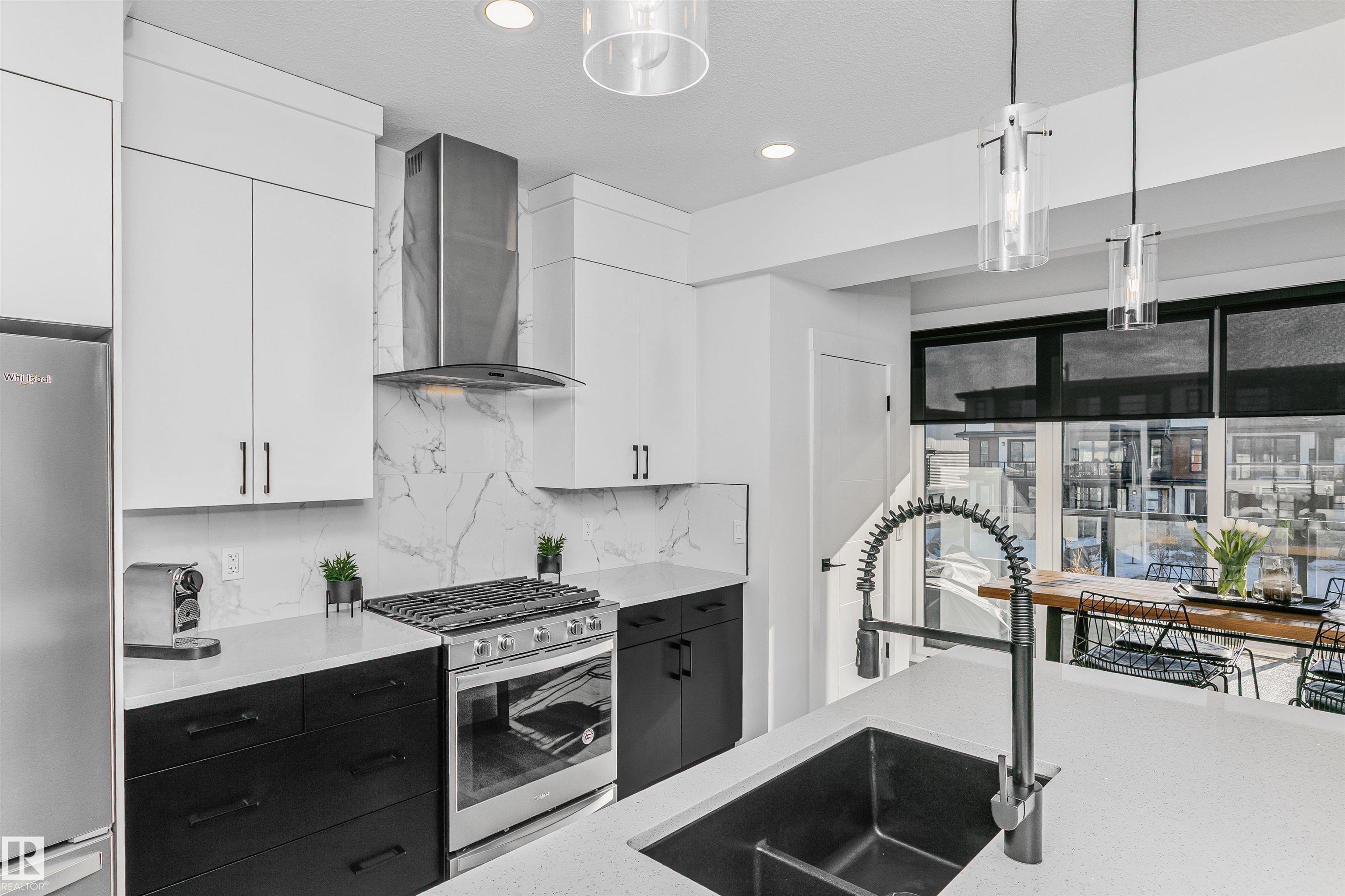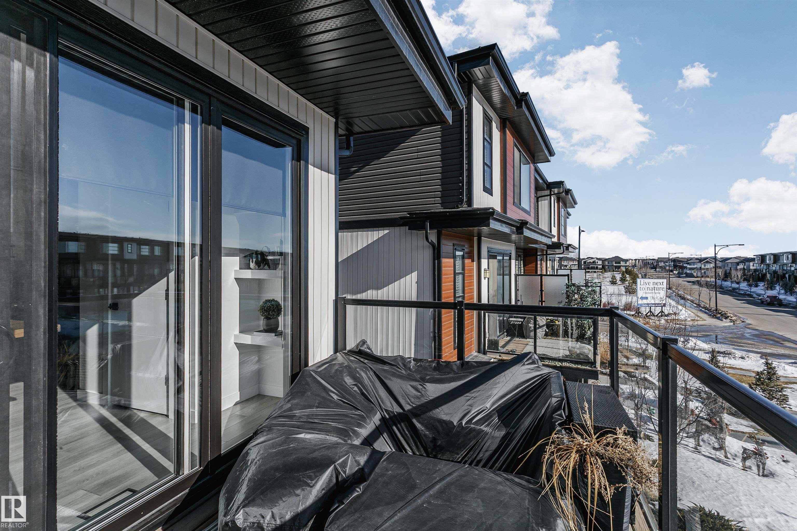 Chappelle Luxury Living! NO CONDO FEES! Meticulously maintained feels brand new, this executive 3-storey townhome is a sophisticated blend of modern luxury & functional design. Built by City Homes this END unit offers 3 beds, 2 baths & 1633 sqft of living space. Main floor open concept living showcases 9 ft. ceilings, a sleek wall-mounted electric fireplace & an upgraded gourmet kitchen. Upper floor has a large primary bedroom with 3 pc ensuite & a walk-in closet. Additional 2 spacious bedrooms, a 4 pc bath, laundry & plenty of built-in storage. Additional features include durable luxury vinyl plank flooring, a quartz island, upgraded light fixtures, a beautiful glass wall along the staircase, additional cabinetry & a private balcony. Full A/C, a double attached garage. Minutes from schools, parks, shopping & the Henday. Meticulous. Let's move!