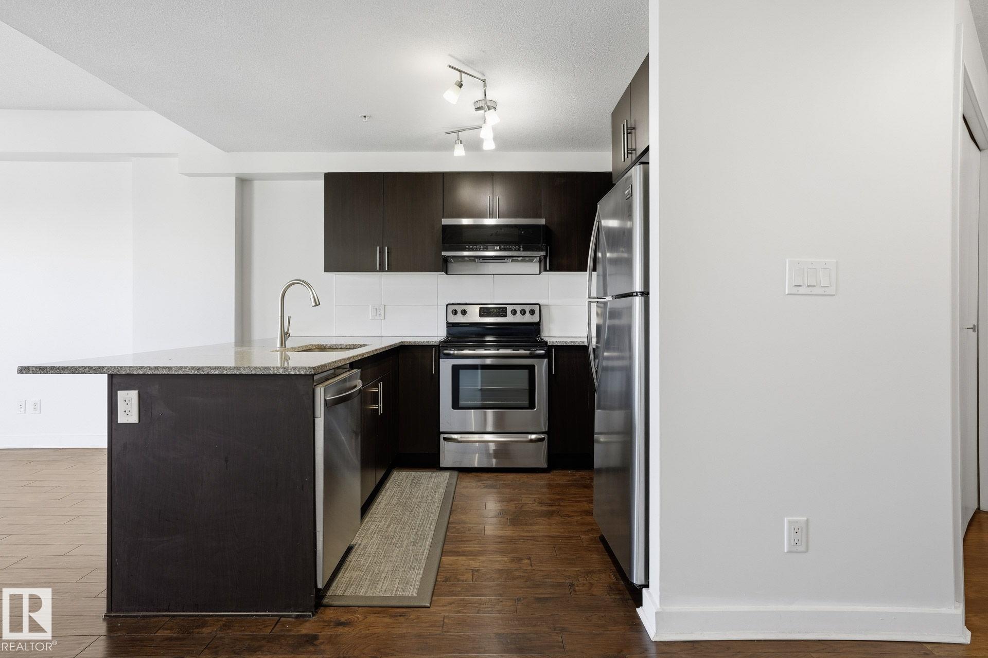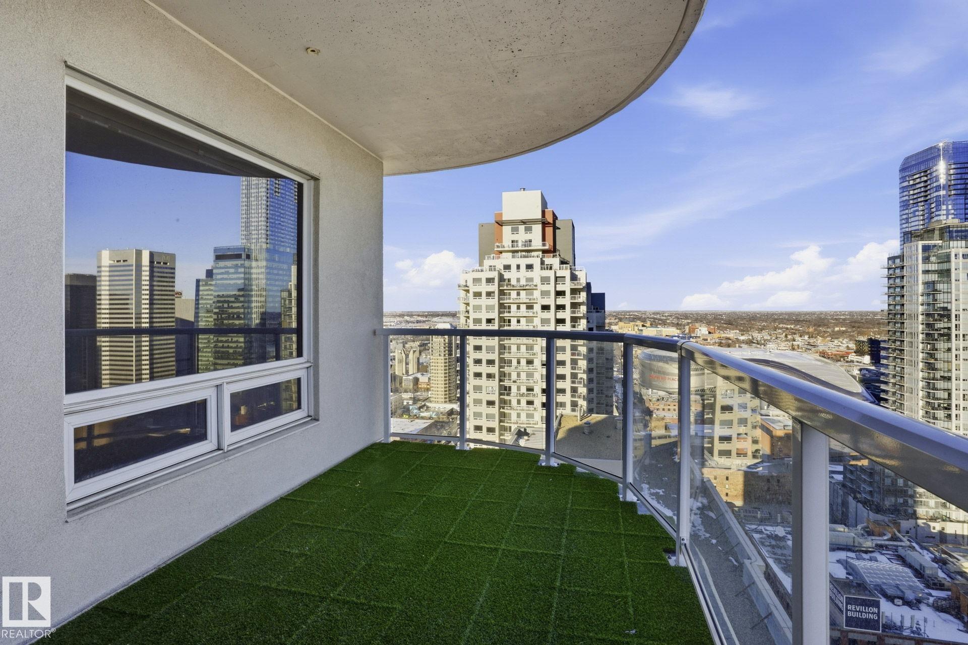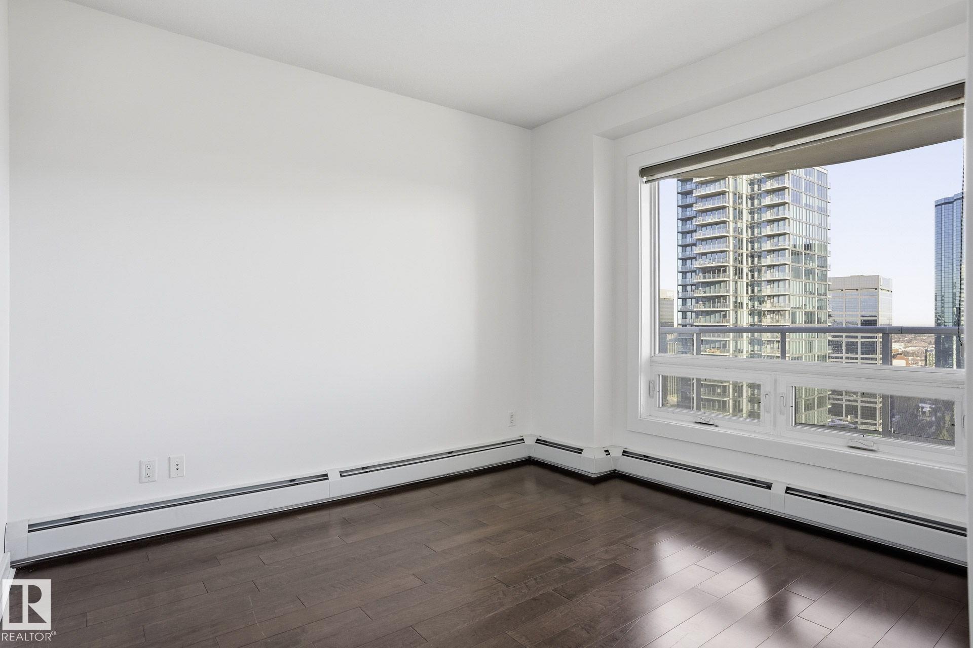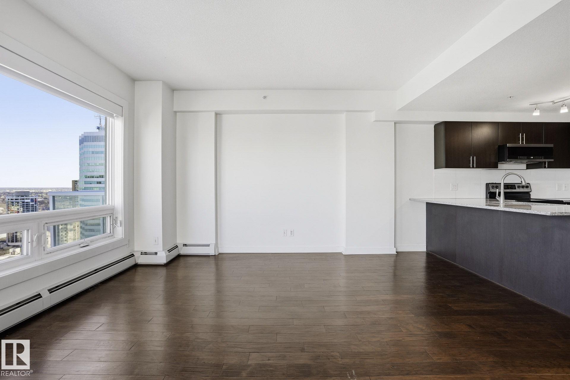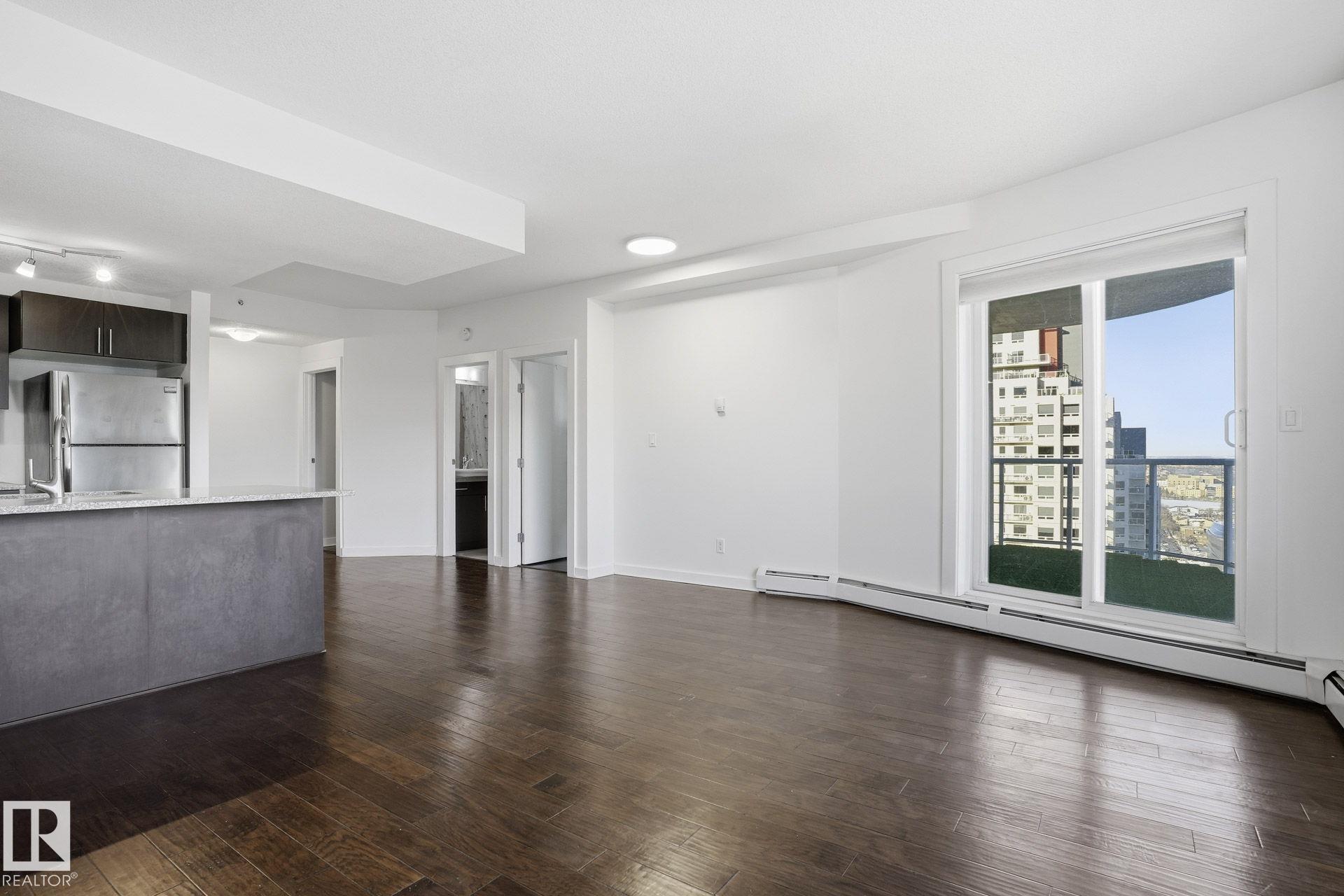 Live in the heart of downtown in this stunning 27th-floor condo in Icon II, offering incredible Downtown, NE, and SE River Valley views. This highly functional 2 bedroom, 2 bath features 098SqFt of spacious living with contemporary finishes throughout, including engineered hardwood, tile flooring, granite countertops, sleek cabinetry, upgraded fixtures & fresh paint. The open-concept kitchen is equipped with stainless steel appliances & a breakfast bar overlooking the spacious great room with dining nook & access to the balcony showcasing breathtaking views. The primary bedroom features a walk-in closet & 4 piece ensuite, while the large 2nd bedroom offers ample closet space. Enjoy in-suite laundry, plenty of storage, and secure heated underground parking, plus heated visitor parking. Unbeatable downtown location on one of Edmonton's best streets--steps to markets, dining, Ice District/Rogers Place, MacEwan, River Valley trails LRT, & minutes to the U of A and NAIT. Urban living at its finest!