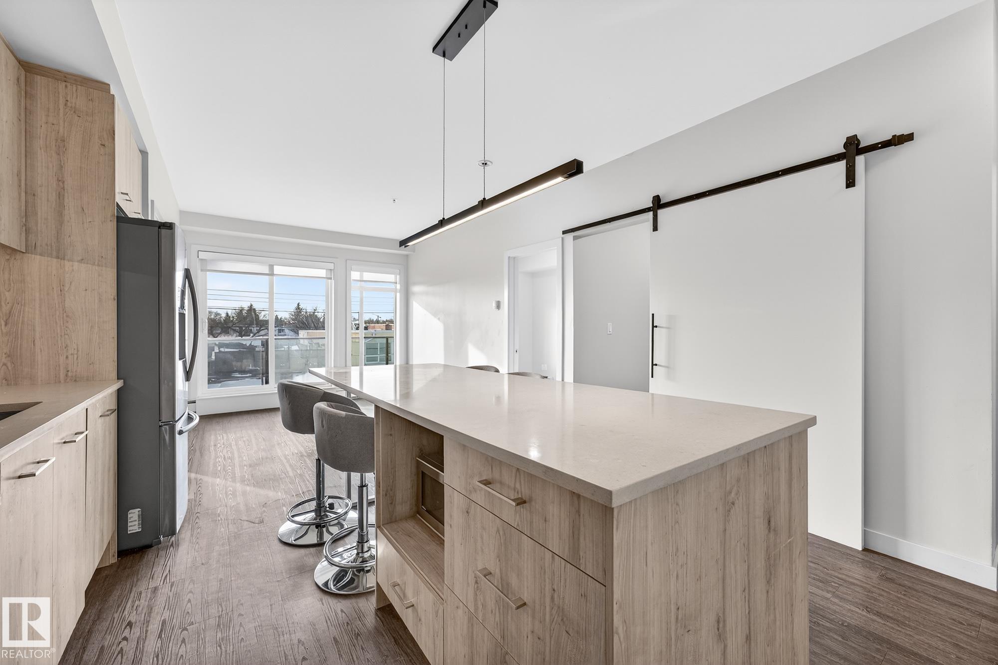 Welcome to Garneau, where unbeatable location meets modern luxury. Situated in the heart of Edmonton, this home is just steps from top-rated coffee shops, popular restaurants, & the river valley, w/ downtown only minutes away! This stunning unit offers top-to-bottom luxury, featuring soaring 9-foot ceilings & premium luxury vinyl plank flooring throughout. The show-stopping kitchen is designed to impress w/ a large island, quartz countertops, high-end stainless steel appliances, & a striking hexagon tile backsplash. The thoughtfully designed layout places the bedrooms on opposite ends of the unit, providing privacy for roommates or guests. The spacious primary suite includes a walk-through closet & a spa-inspired 4-piece ensuite w/ quartz counters, a glass walk-in shower, & ceramic tile. Additional highlights include a versatile den, a large patio, underground parking, in-suite laundry, & more. Easy to rent & located in one of the few Airbnb-friendly complexes in Edmonton!