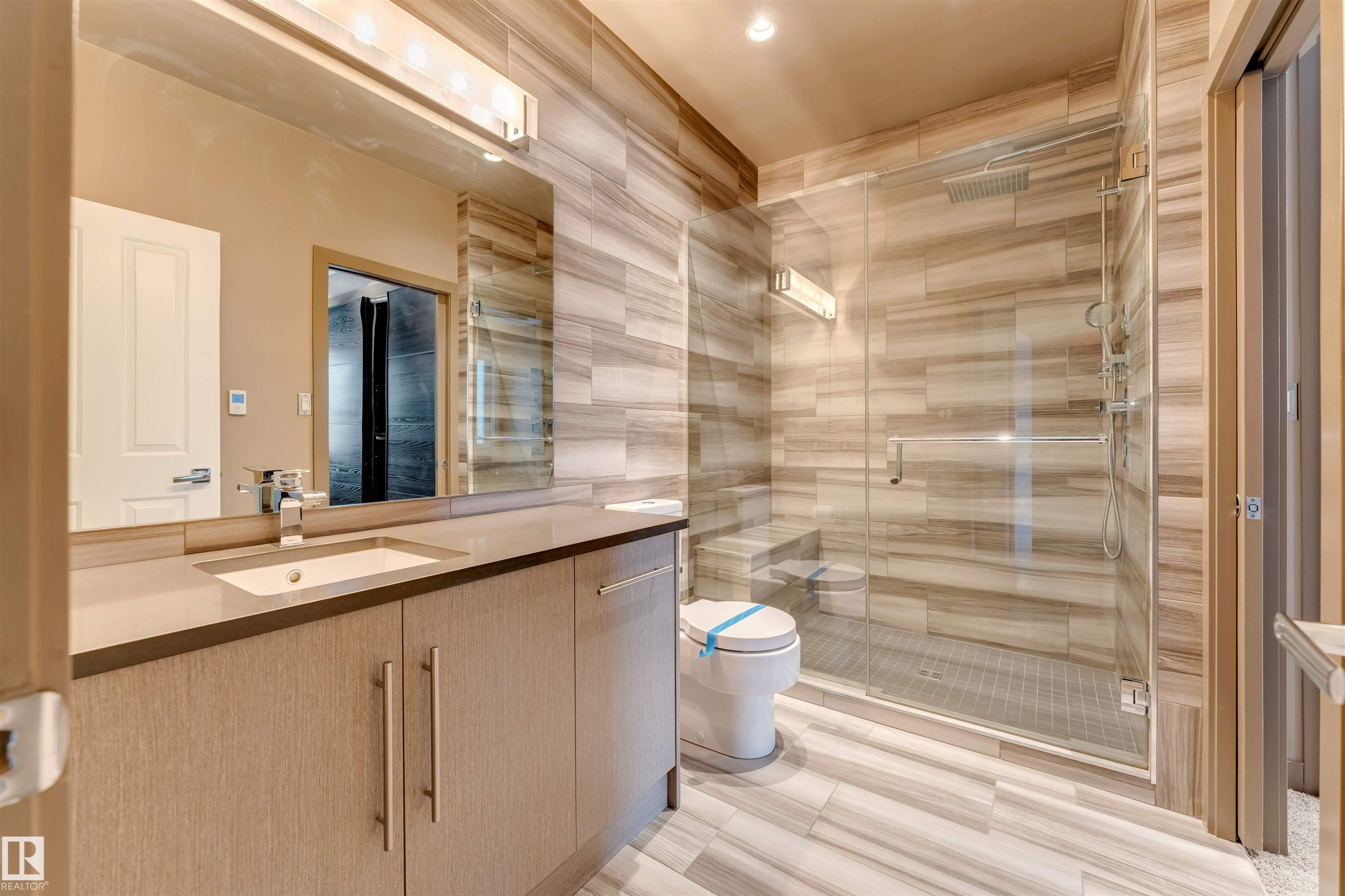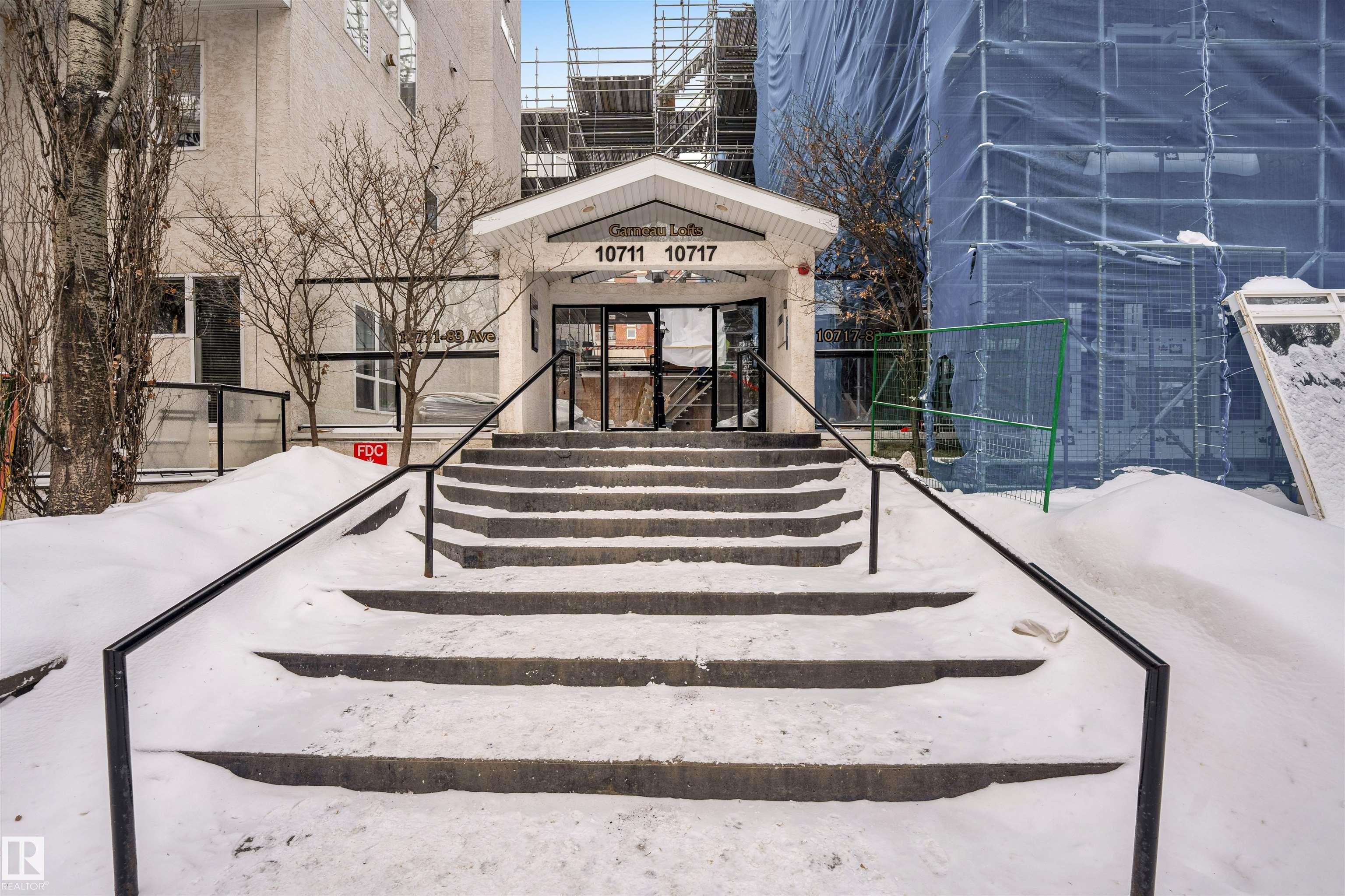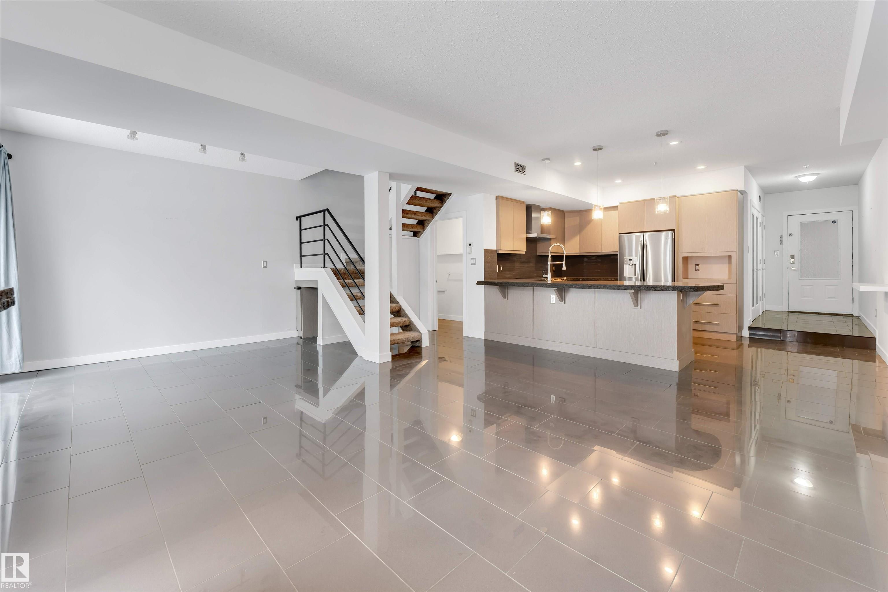 Absolutely Stunning Executive Condo in a Prime Location! Just steps away from vibrant Whyte Avenue and within walking distance to the University of Alberta, this beautifully designed executive condo offers modern luxury and unbeatable convenience. As you enter, you'll immediately notice the elegant high-gloss porcelain tile flooring throughout the main floor. The gorgeous chef's kitchen features custom Delton cabinetry with sleek handleless uppers, soft-close drawers, an oversized flush-mounted double sink, and stainless steel appliances. The true centerpiece is the one-of-a-kind double-thick 2.5" rough-edge granite island with an eat-up bar, complemented by a stylish porcelain backsplash and LED under-cabinet lighting. The spacious open-concept living area is perfect for entertaining or relaxing, highlighted by a cozy gas fireplace with slate and granite surround. Upstairs you'll find two comfortable bedrooms with plush carpeting and premium underlay. The beautifully designed 3-piece bathroom features