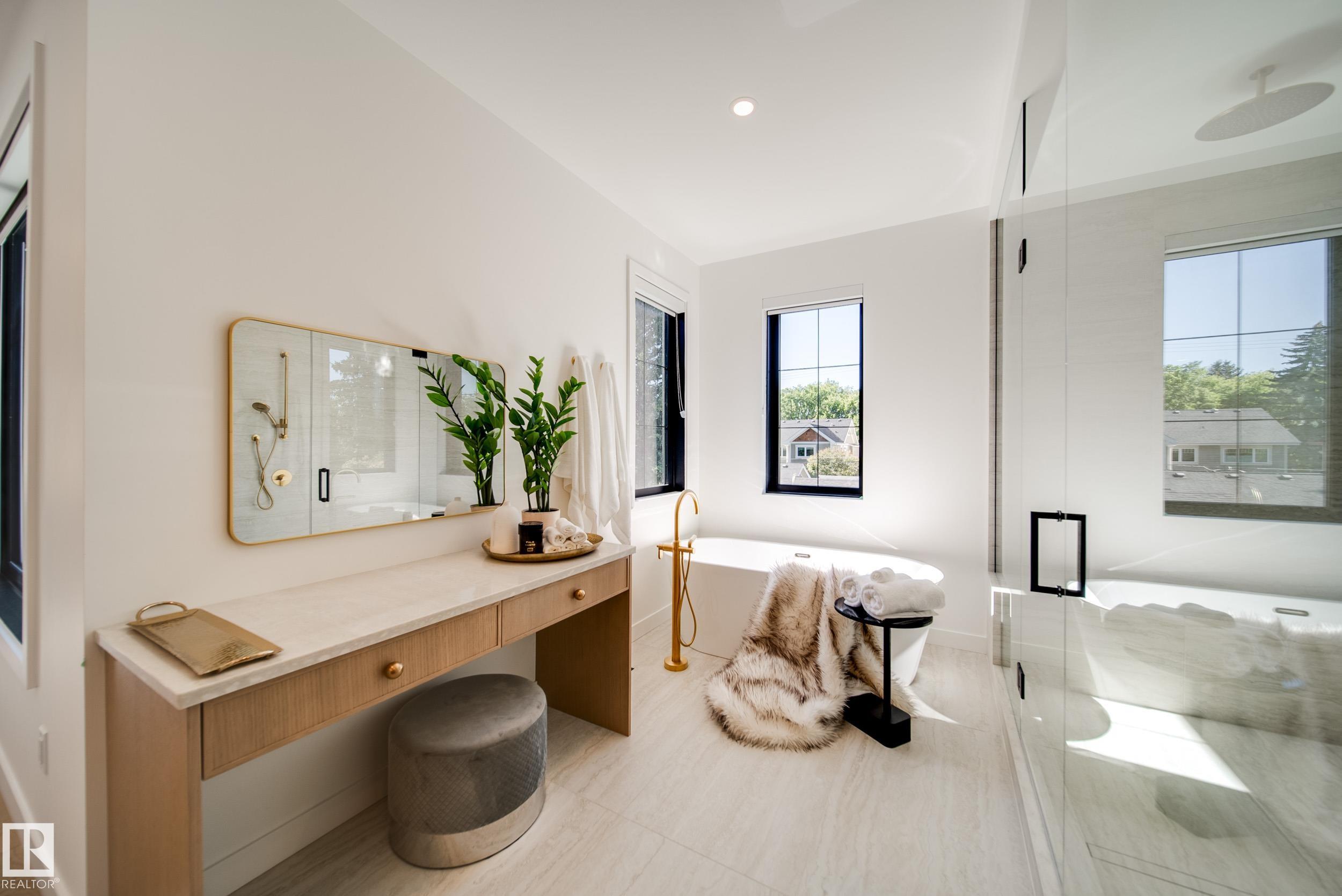 Welcome to your dream home in the prestigious community of Glenora! This CUSTOM 2 Storey home built by Sinova Developments offer's over 5,000 sq ft of luxurious living space, perfectly situated on a quiet, tree-lined street & on a LARGE 50'x150' deep lot! Step inside to soaring 10' ceilings, upgraded grid window's, wide plank hardwood flooring on all 3 levels, & a stunning chef's kitchen w/ a 12' island, custom cabinetry throughout, Jenn Air panel ready appliances, formal dining, kitchen nook, & main floor office. Upstairs features 4 spacious bedrooms each w/ private ensuites & walk-in closets! MASSIVE primary w/ true spa like ensuite, freestanding soaker tub, custom shower & W-I-C. Fully finished basement is complete w/ theatre room, gym, wet bar, rec room, full bath & bedroom. Central A/C & OVERSIZED heated 3 car garage (892 sqft). Fully landscaped west-facing yard. Minutes from downtown, river valley trails, & top schools. Rare opportunity to own in one of Edmonton's most sought-after neighbourhoods!