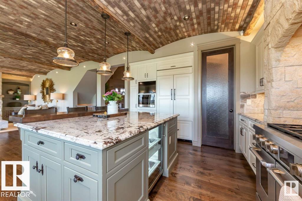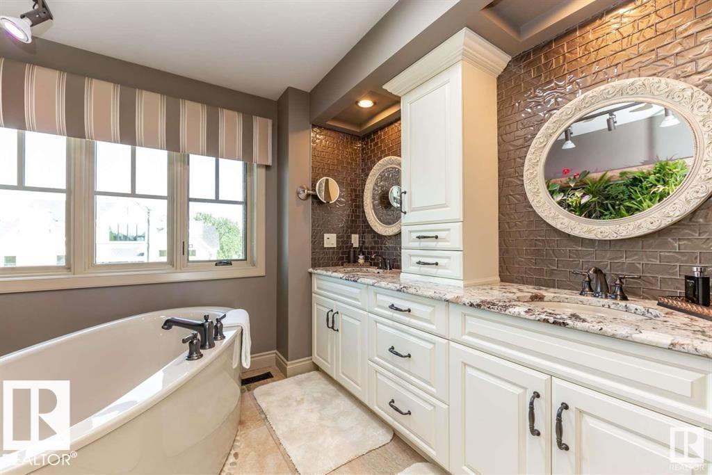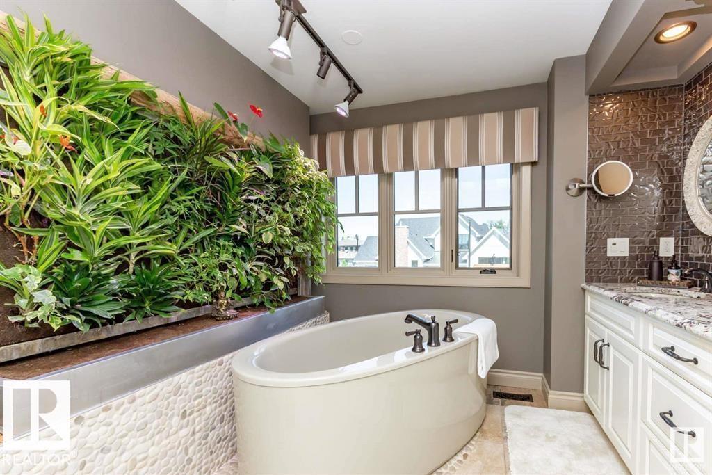 An award winning french country style property, on one of the nicest streets in South Edmonton. A custom built former lottery home backing onto the greens of Jager Ridge Course with over 3500sqft of living space, this eco-elegant home has been upgraded in every possible way. A "ZERO ENERGY HOME" with $85,000 Solar Panel System to power your home & sell back to the grid. It includes R40 Insulated Walls, R80 Attic, drain water heat recovery, HRV & air source heat pumps for heating & cooling, insulated tri-pane smart windows, radiant floors & electric car charger. High end estate level finishing, include a french style brick barrel ceiling on the main floor and wood beamed ceilings throughout. A true chefs kitchen with all paneled appliances, Jennair range and Urban Cultivator. Two custom living walls, 3 Bedrooms up all with their own ensuite, bonus room up, mainfloor den, walkout basement with guest suite & fully landscaped large lot with irrigation. Rebuild cost on this house would far exceed asking price.