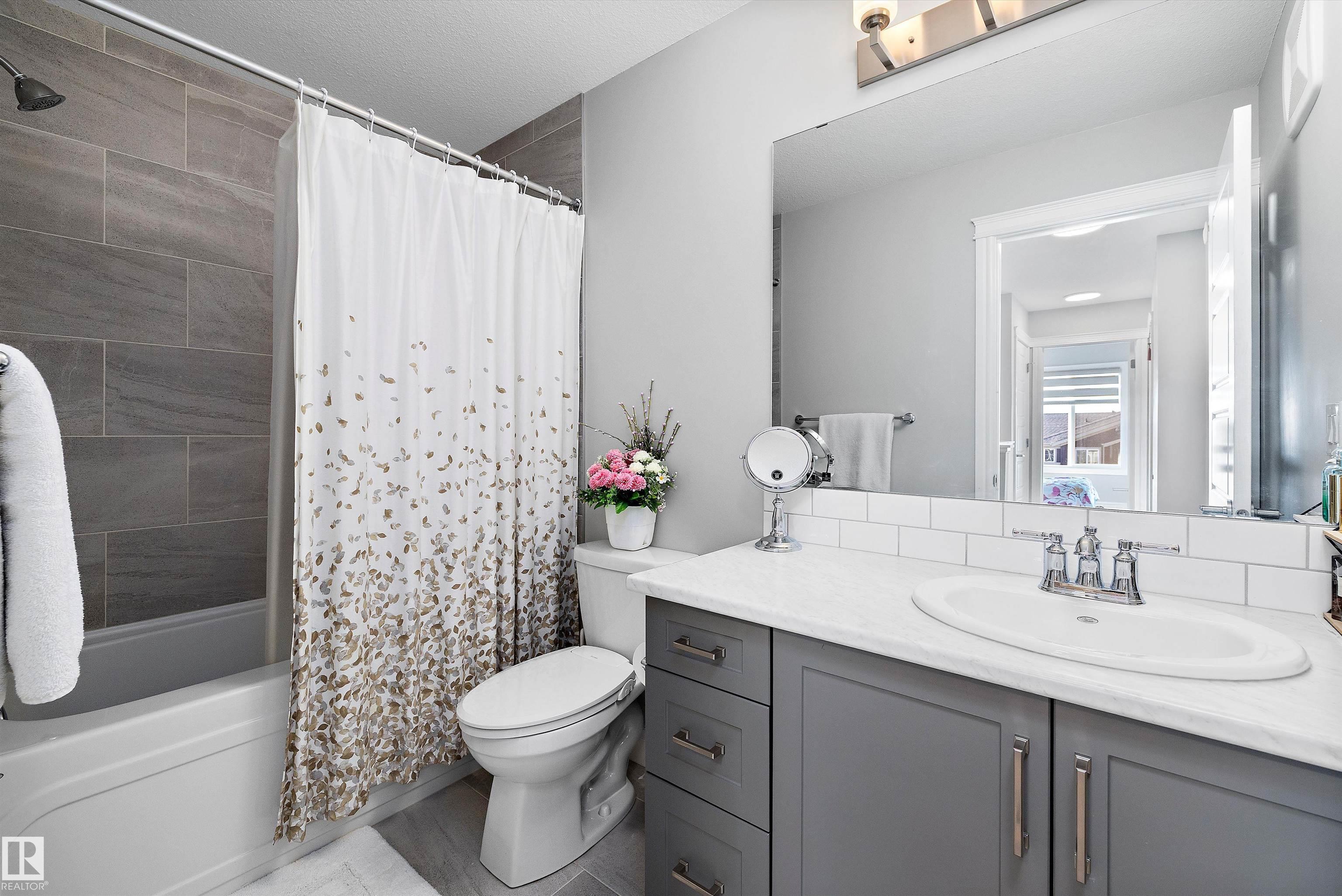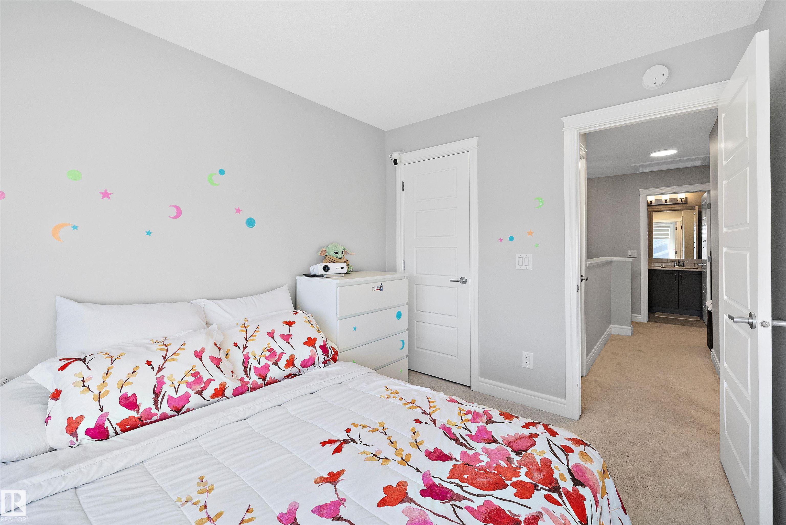 No condo fee TOWNHOME in the sought-after neighbourhood of Keswick! This nearly new 3-bedroom + den townhouse delivers a bright, practical layout in a prime southwest Edmonton location. With an east-facing front, the home welcomes beautiful morning light through large windows and is finished with brand-new zebra blinds throughout. The open-concept main level is designed for both everyday comfort and entertaining, featuring a spacious kitchen with quartz countertops, modern cabinetry, a walk-in pantry, convenient laundry area, and a powder room. On the entry level, you'll find an oversized single attached garage, ample storage, and a versatile den -- perfect for a home office, gym, or creative space. Upstairs includes two well-sized secondary bedrooms, a full 4-piece bathroom, and a bright primary retreat complete with a walk-in closet and private ensuite. Ideally situated just minutes from Currents of Windermere and close to walking trails, parks, schools, golf and major roads to get around the city.