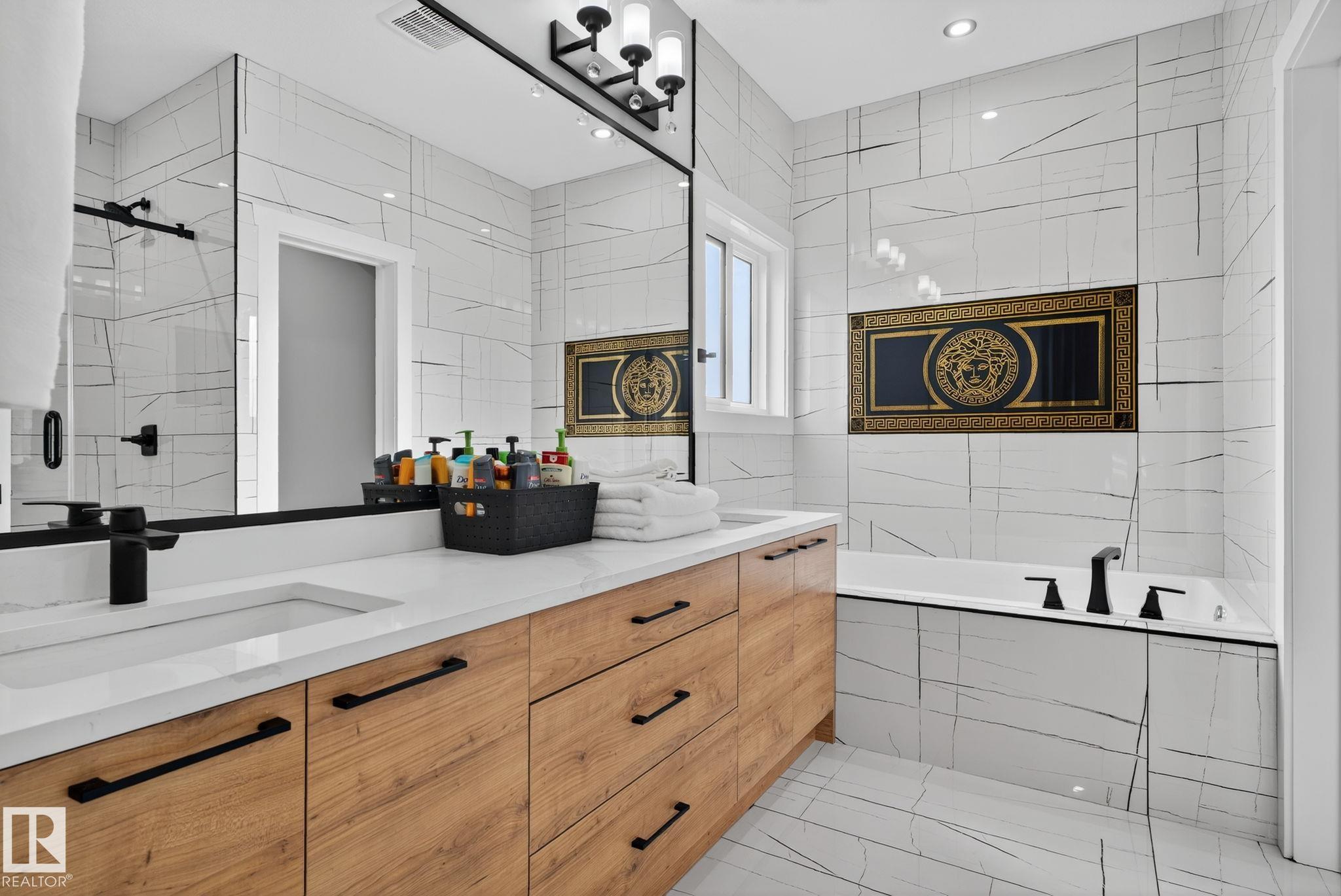 A RARE GEM IN LAUREL! This move-in ready home stands out from typical new builds with included stainless steel appliances, front landscaping, and window blinds. Step into luxury with an open-to-above, elegant finishes, and TWO SPACIOUS LIVING AREAS, perfect for entertaining or family gatherings. The stunning kitchen features quartz countertops, a large island, under-cabinet lighting, a wet bar, and a SEPARATE SPICE KITCHEN for added convenience. Main floor BEDROOM and FULL BATH offer ideal space for guests or multi-generational living. Upstairs boasts FOUR BEDROOMS, including a serene master retreat with spa-inspired ensuite, a second master with its own ensuite, and two bedrooms sharing a Jack & Jill bath. Thoughtful extras include a large MUDROOM with garage access and an unfinished basement with a second furnace, ready for your personal touch. Minutes from schools, parks, Meadows Rec Centre, shopping, and major routes!
