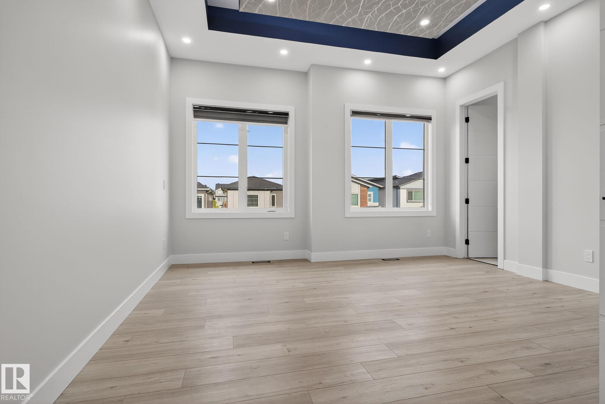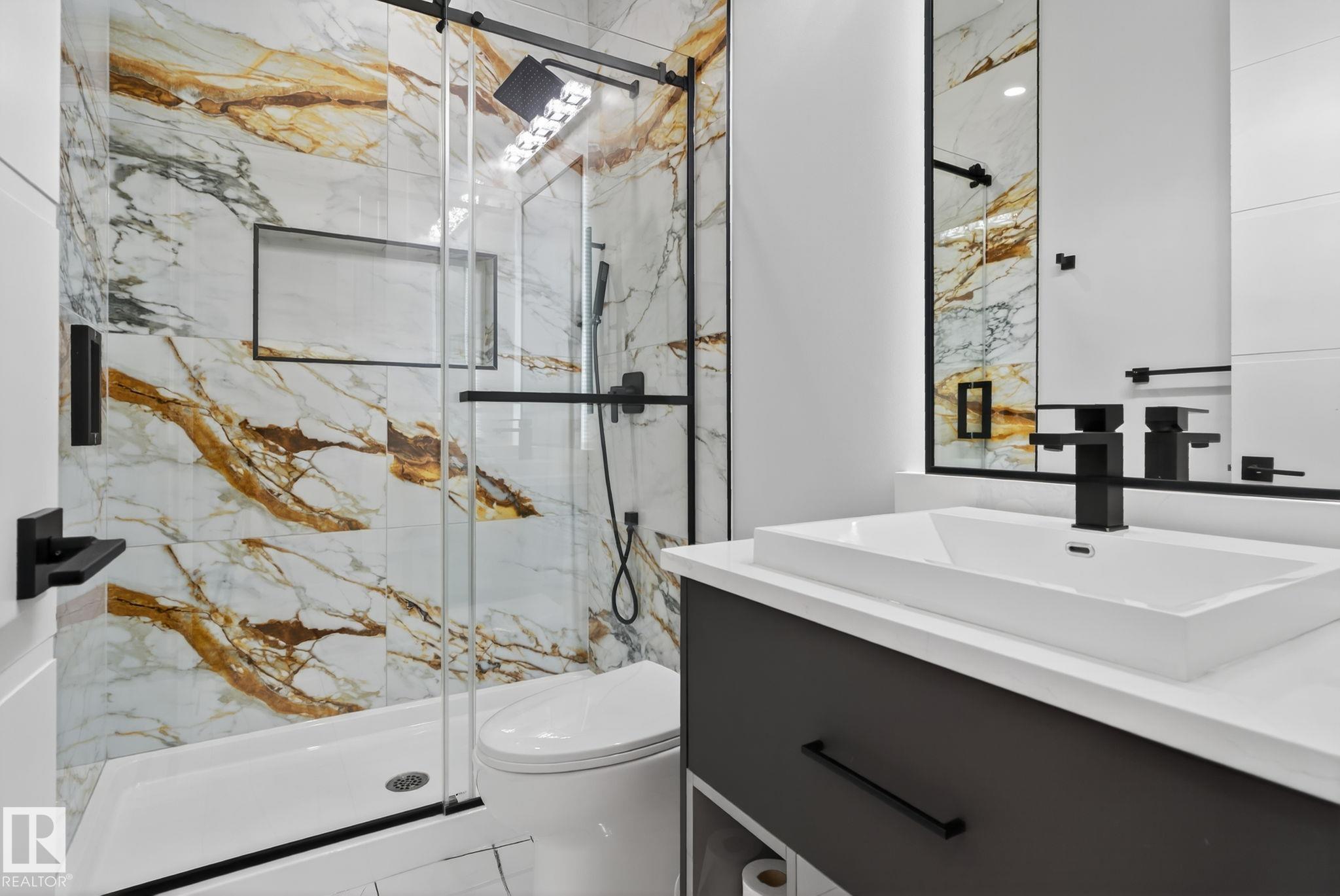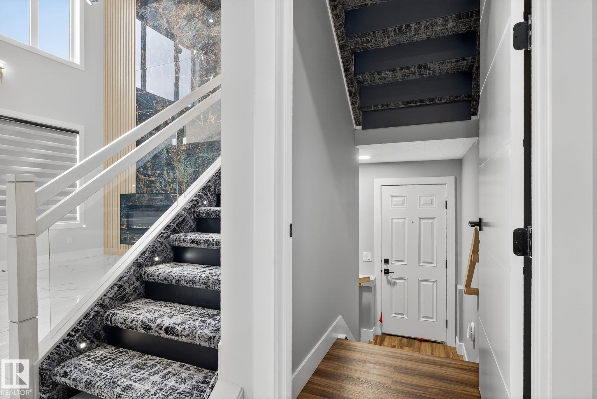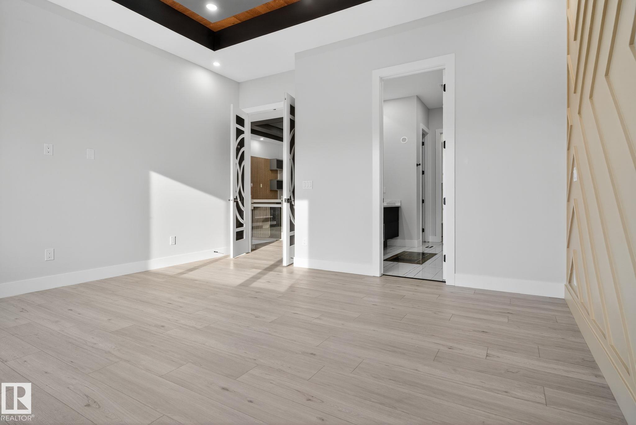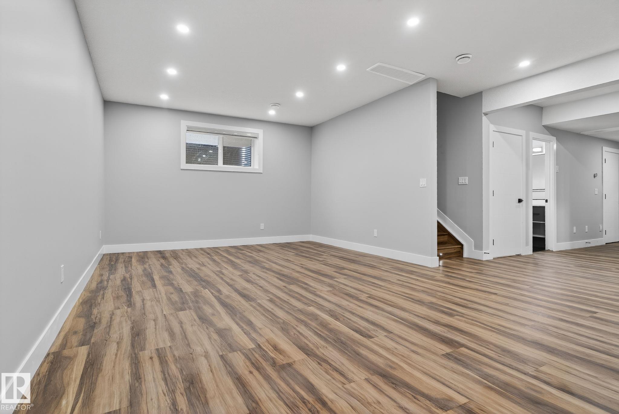 Welcome to this stunning home, boasting over 4200 sq. ft. of living space with a 3-bedroom BASEMENT in the highly desirable LAUREL COMMUNITY. Featuring 8 bedrooms and 5 full baths, it's perfectly suited for multi-family living. Step inside to a thoughtfully designed layout with 10 Ft. CEILINGS, elegant tile flooring, open-to-below living area, main-floor Bedroom with full bath, chef-inspired kitchen, and a LARGE SPICE KITCHEN. Upper level offers 10-ft ceiling, vinyl flooring, FOUR generous bedrooms, a bonus room, and three full baths. Master suite is a true retreat, with massive walk-in closet and 5-pc ensuite. PROFESSIONALLY FINISHED BASEMENT provides 3 bedrooms, full bath, separate kitchen, laundry, and entrance for added privacy. Premium features include ELECTRONIC TOILET SEATS, rain showers, oversized garage, designer fixtures, HUGE deck, acrylic stucco, 8-ft doors, EXPOSED CONCRETE DRIVEWAY, and an impressive double-door entry. Conveniently located near all Amenities, K-9 and High School.