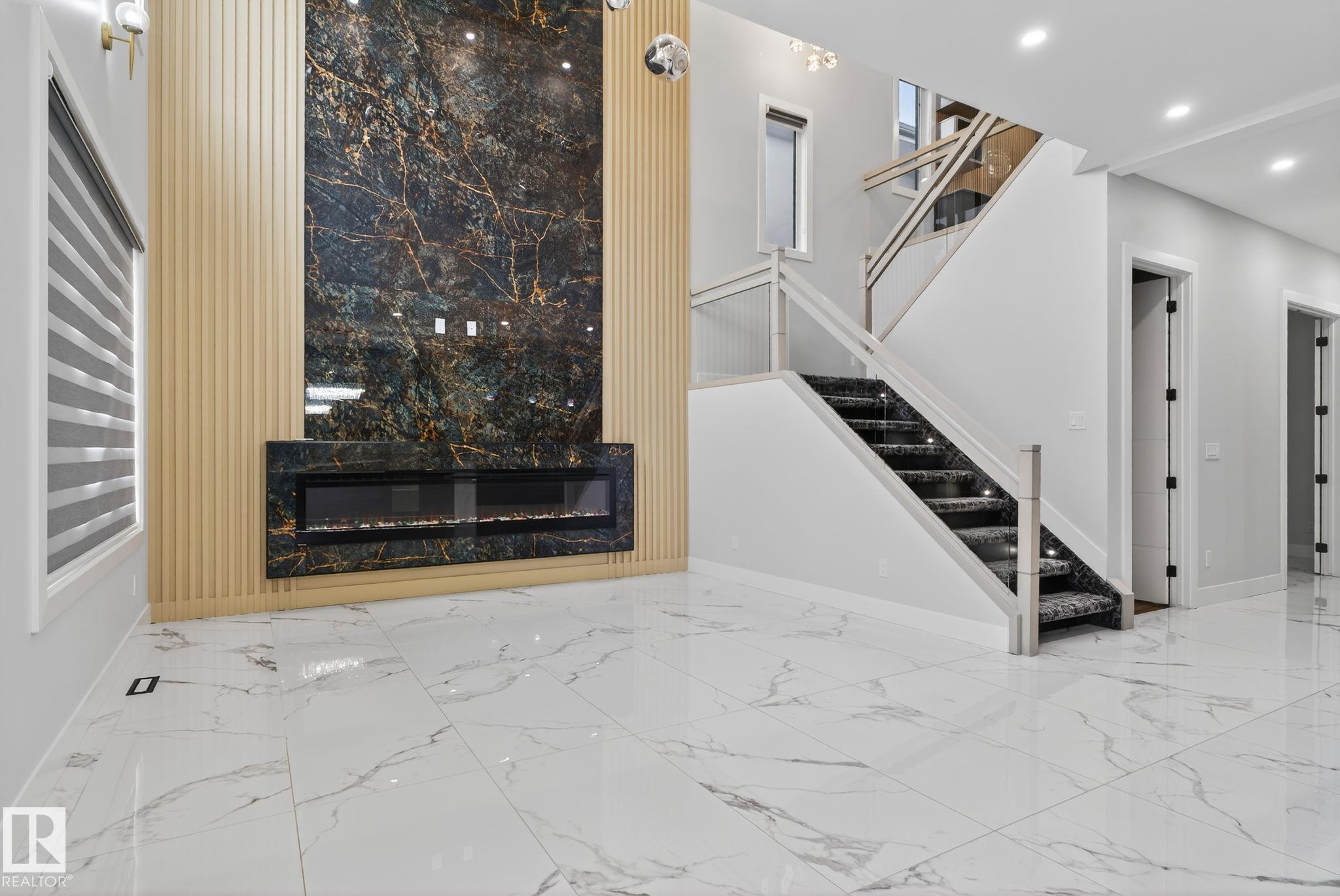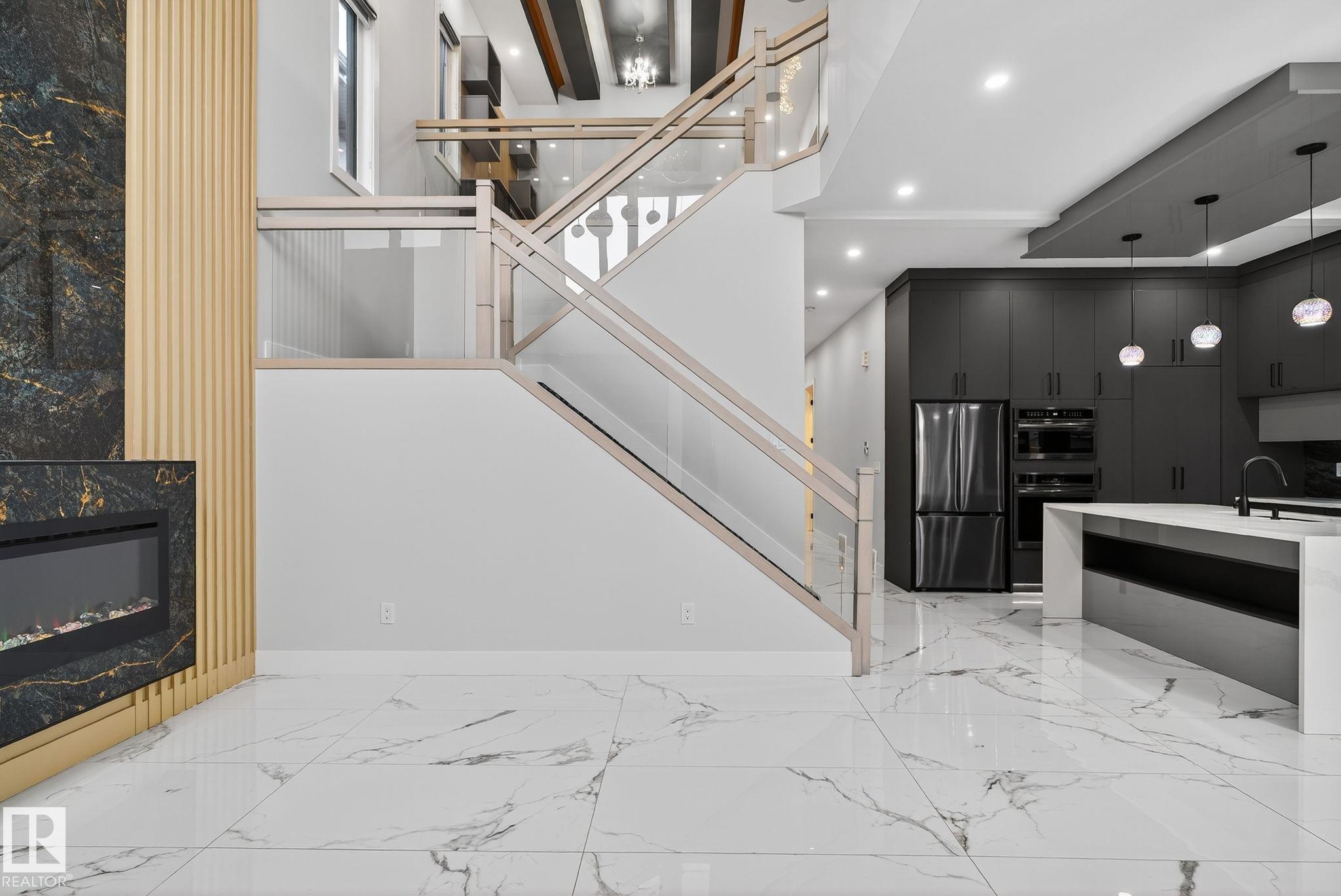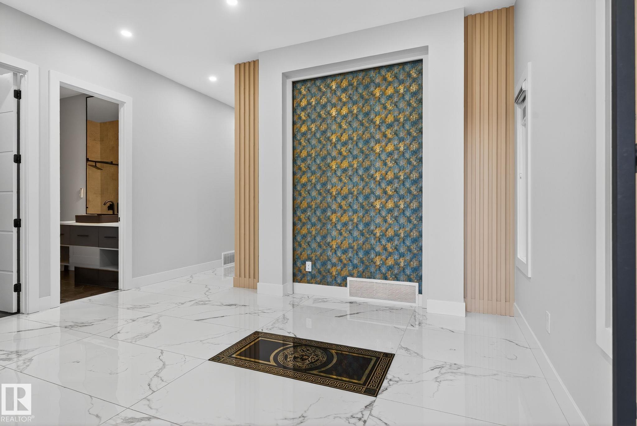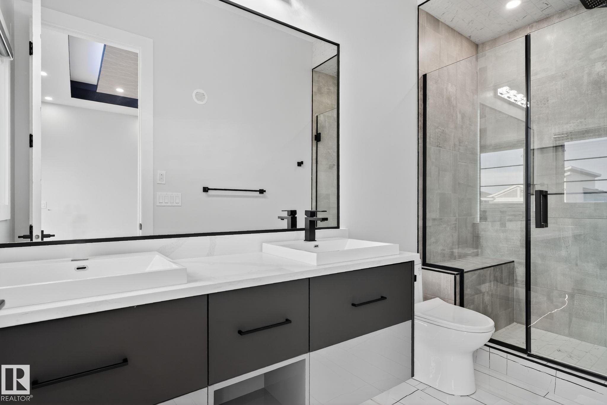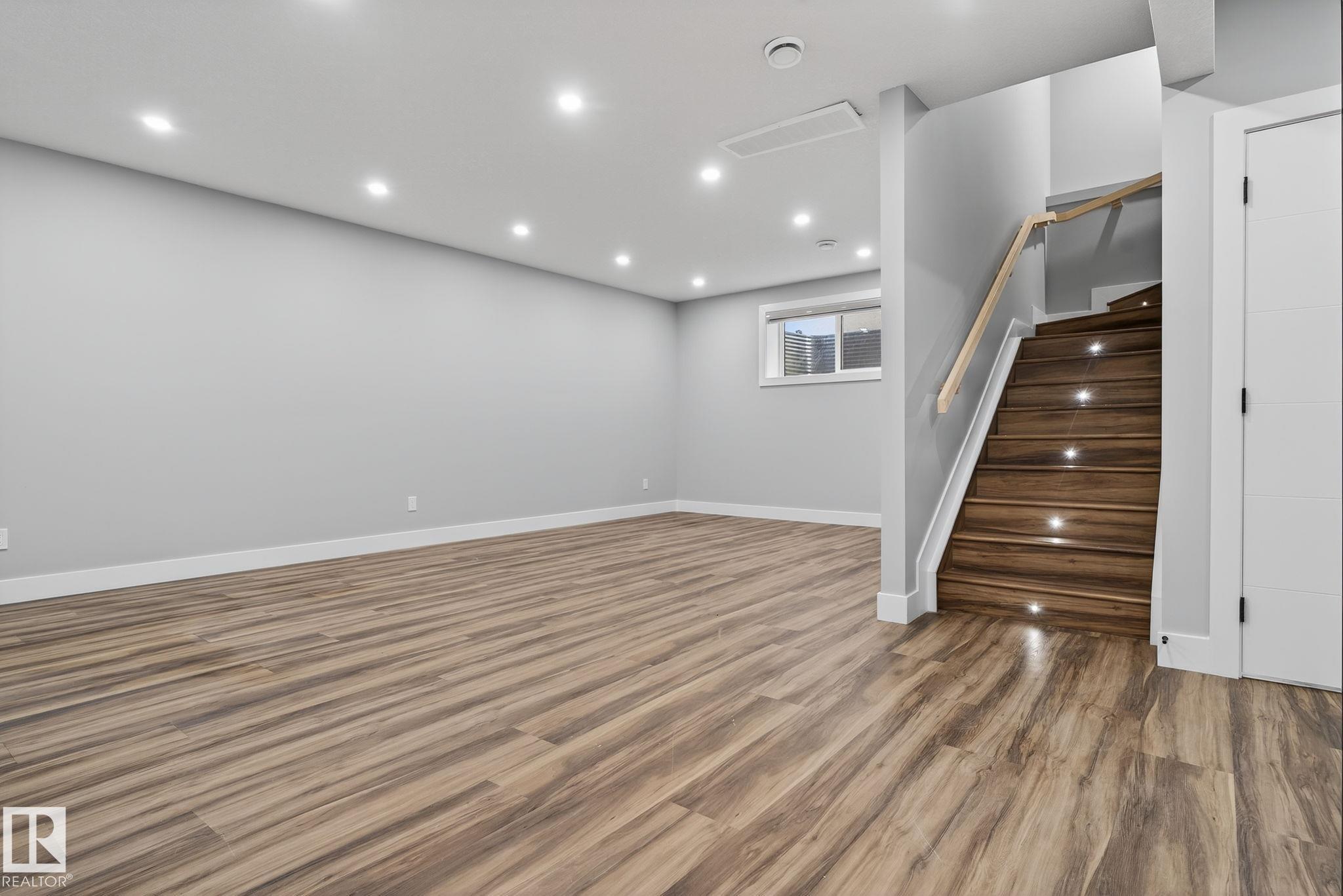 Welcome to this stunning home, boasting over 4200 sq. ft. of living space with a 3-bedroom BASEMENT in the highly desirable LAUREL COMMUNITY. Featuring 8 bedrooms and 5 full baths, it's perfectly suited for multi-family living. Step inside to a thoughtfully designed layout with 10 Ft. CEILINGS, elegant tile flooring, open-to-below living area, main-floor Bedroom with full bath, chef-inspired kitchen, and a LARGE SPICE KITCHEN. Upper level offers 10-ft ceiling, vinyl flooring, FOUR generous bedrooms, a bonus room, and three full baths. Master suite is a true retreat, with massive walk-in closet and 5-pc ensuite. PROFESSIONALLY FINISHED BASEMENT provides 3 bedrooms, full bath, separate kitchen, laundry, and entrance for added privacy. Premium features include ELECTRONIC TOILET SEATS, rain showers, oversized garage, designer fixtures, HUGE deck, acrylic stucco, 8-ft doors, EXPOSED CONCRETE DRIVEWAY, and an impressive double-door entry. Conveniently located near all Amenities, K-9 and High School.