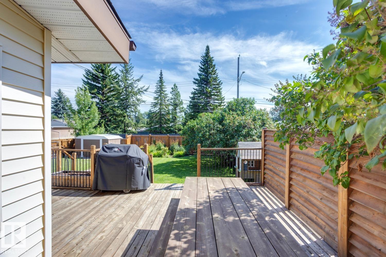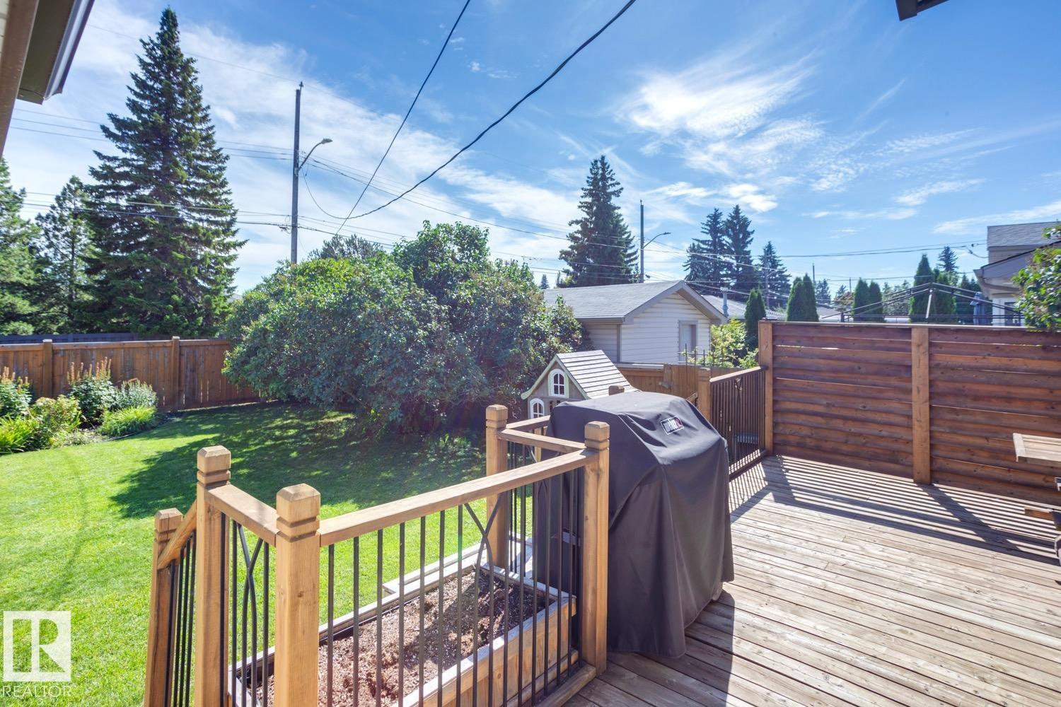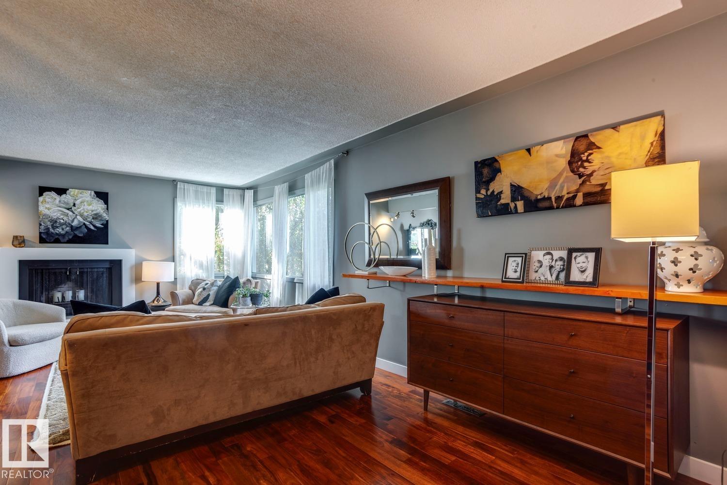 Awesome family home in the desirable community of Malmo! This unique 2-storey is located on a very quiet street, sits upon a beautiful 6000 sqft lot, offers over 2400 sqft of living space, 4 total bedrooms, and has been tastefully updated! The main floor features a spacious floor plan, great kitchen w/s.s. appliances, breakfast nook, formal living/dining areas w/hardwood floors and lavish fireplace. Gorgeous family area w/vaulted ceiling, extensive wood features, and additional fireplace. Upstairs you will find the four good sized bedrooms and full bath. The fully finished lower level offers a great rec area and plenty of storage space. Outside you will enjoy the very private yard, huge deck, and mature landscaping. Other features of the home include: new furnace/HWT, newer roof, some new windows, new fence, renovated bathrooms, flooring, paint, fixtures, and more! Located steps to great schools, public transit, Southgate mall, and minutes to the University of Alberta. Great opportunity in a great area!