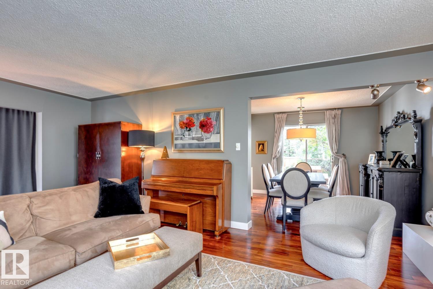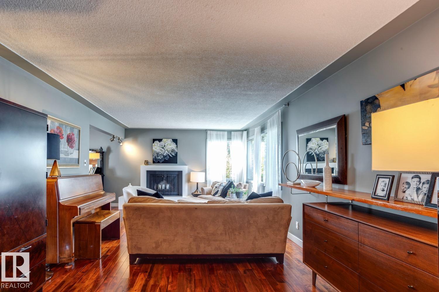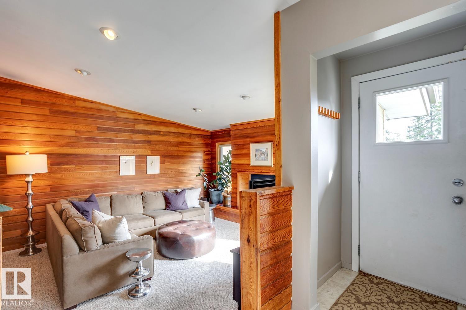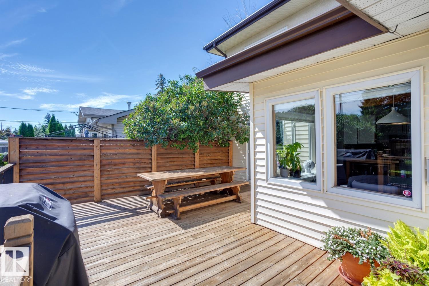 Awesome family home in the desirable community of Malmo! This unique 2-storey is located on a very quiet street, sits upon a beautiful 6000 sqft lot, offers over 2400 sqft of living space, 4 total bedrooms, and has been tastefully updated! The main floor features a spacious floor plan, great kitchen w/s.s. appliances, breakfast nook, formal living/dining areas w/hardwood floors and lavish fireplace. Gorgeous family area w/vaulted ceiling, extensive wood features, and additional fireplace. Upstairs you will find the four good sized bedrooms and full bath. The fully finished lower level offers a great rec area and plenty of storage space. Outside you will enjoy the very private yard, huge deck, and mature landscaping. Other features of the home include: new furnace/HWT, newer roof, some new windows, new fence, renovated bathrooms, flooring, paint, fixtures, and more! Located steps to great schools, public transit, Southgate mall, and minutes to the University of Alberta. Great opportunity in a great area!