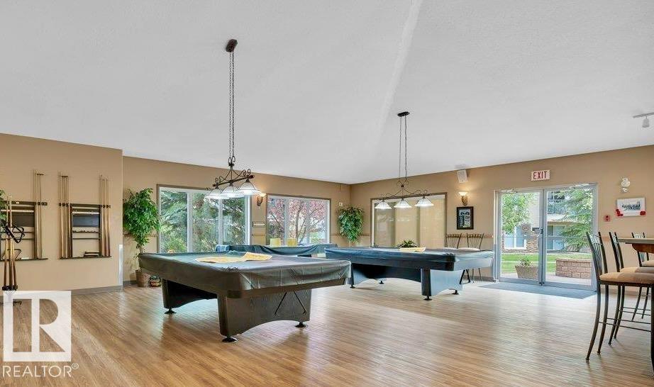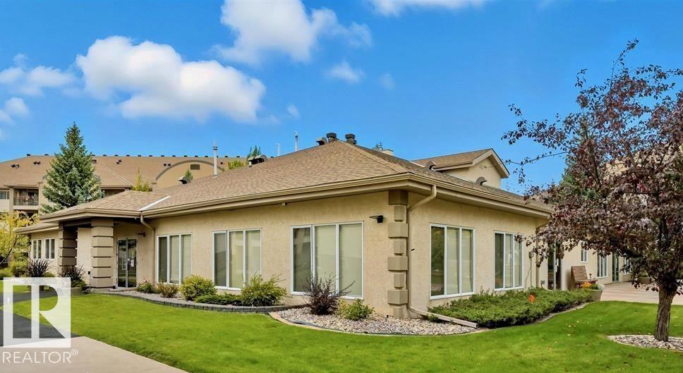 Welcome to one of the area's most sought-after 55+ communities, known for its vibrant atmosphere and outstanding amenities. Residents enjoy a fitness room, billiards area, games room, library, social room, guest suite, and even a car wash, creating a lifestyle that feels more like a private club than a typical condo building. This spacious 1 bedroom, 1 bathroom unit features an open-concept kitchen, living, and dining area filled with natural light. The kitchen includes all new appliances. The generous primary bedroom offers direct patio access and a walk-through closet leading to the newly renovated 3-piece bathroom with a walk-in shower and built-in seat. You'll also find new in-suite laundry and an oversized storage room. Heated underground parking with a large storage cage is included. Located steps from shopping, dining, medical services, the Edmonton Public Library, public transit, and the future LRT.