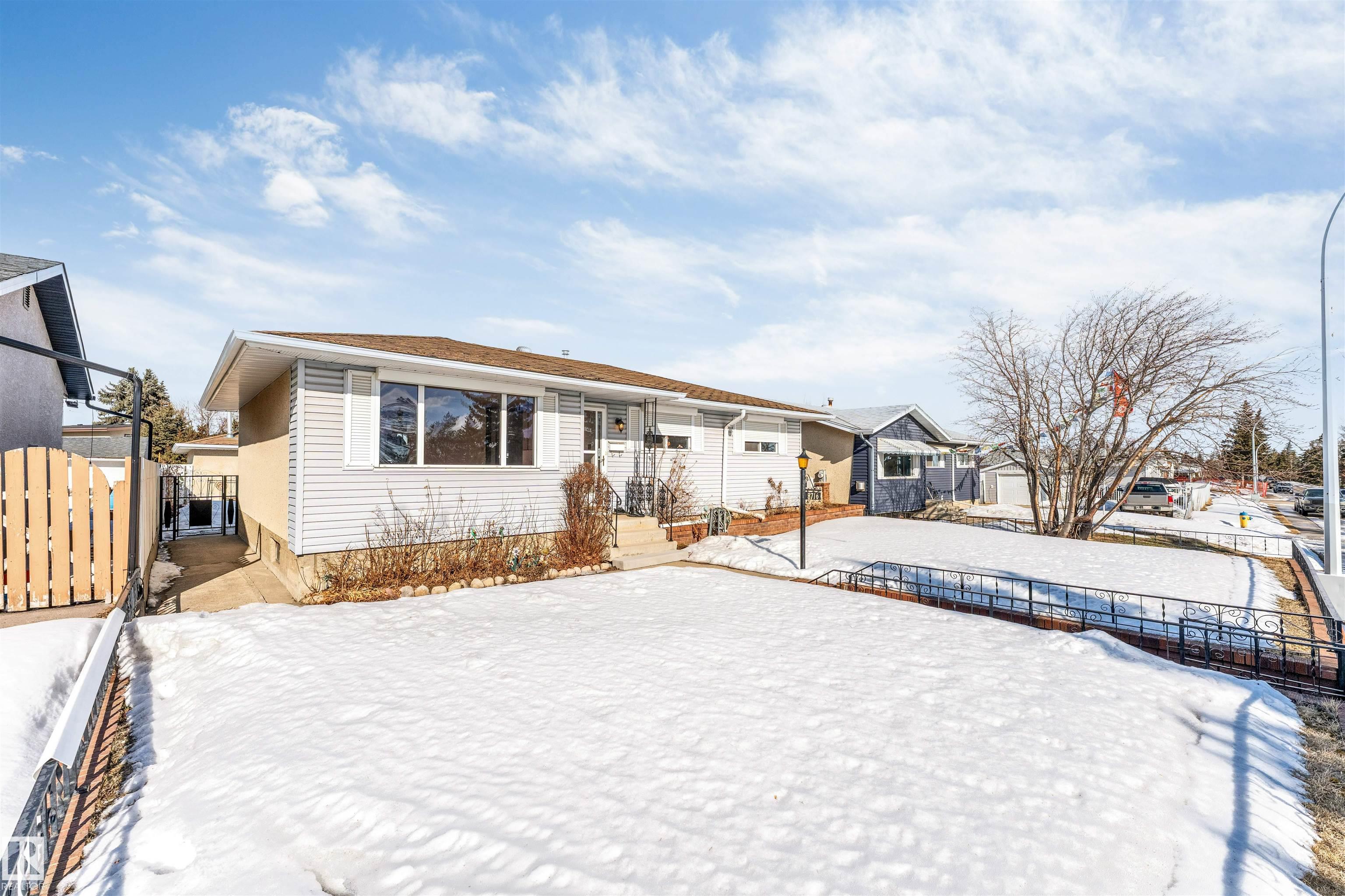 !!!SEPARATE ENTRANCE and 2 KITCHENS!!! ..INVESTOR ALERT!! 50 ft. x 120 ft lot ...Beautiful BUNGALOW located in the desirable community of Northmount in Edmonton! This well-maintained home features 5 BEDROOMS and 1.5 BATHROOMS, offering plenty of space for families or investors. The property includes a SEPARATE ENTRANCE and 2 KITCHENS, providing excellent potential for extended family living. The basement already has a HALF BATHROOM WITH POTENTIAL TO CONVERT INTO A FULL BATH. Enjoy the comfort of a CENTRAL AIR CONDITIONER, along with RECENT UPGRADES INCLUDING A NEWER FURNACE AND HOT WATER TANK, providing added efficiency and peace of mind. Enjoy the convenience of a HEATED GARAGE and RV PARKING SPACE. The home is ideally located MINUTES FROM SHOPPING, SCHOOLS, AND PUBLIC TRANSIT, with quick access to Northgate Centre and North Town Centre. A fantastic opportunity to own a SPACIOUS BUNGALOW in a prime north Edmonton location! Some of the pictures are virtually staged.