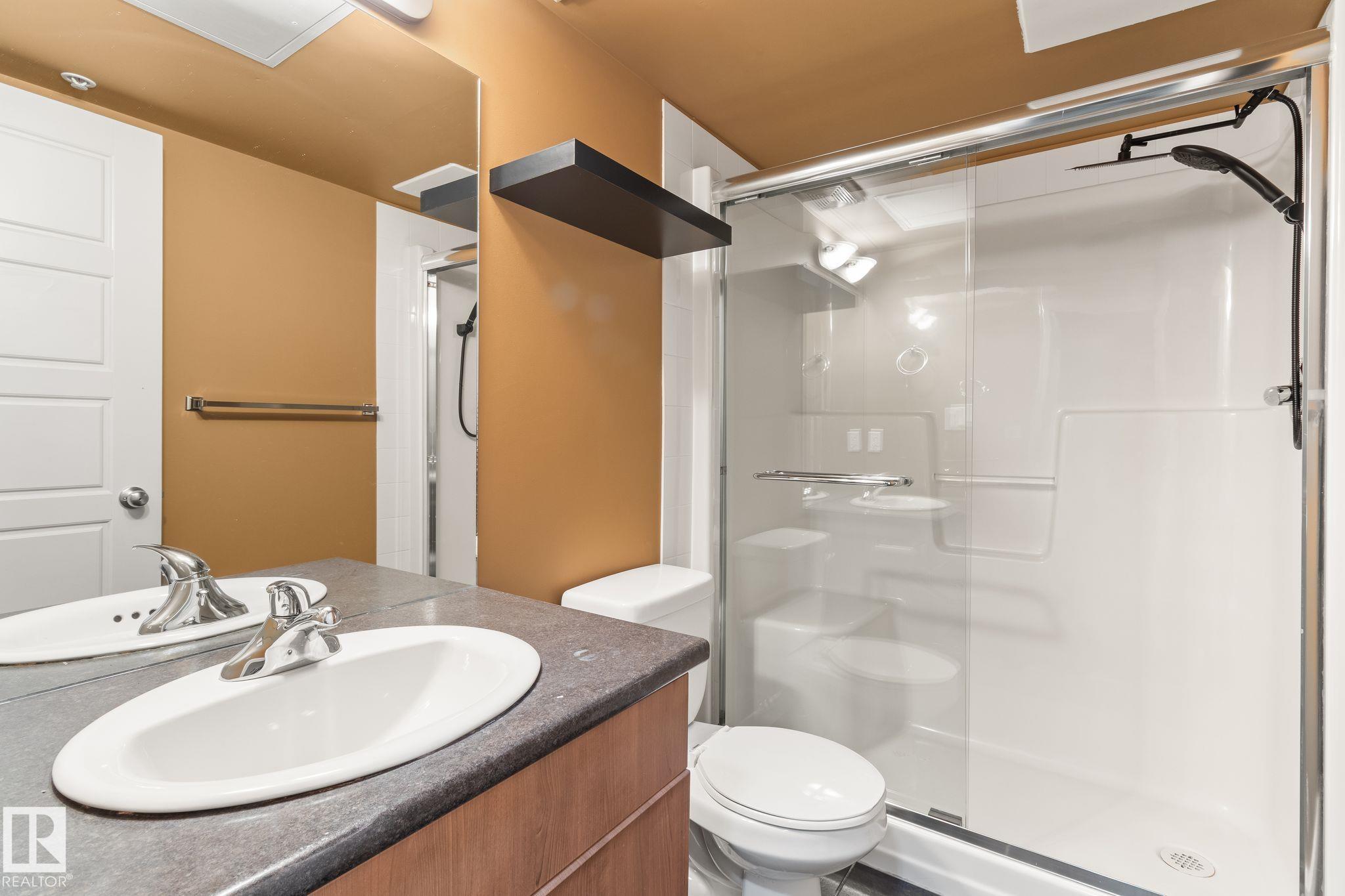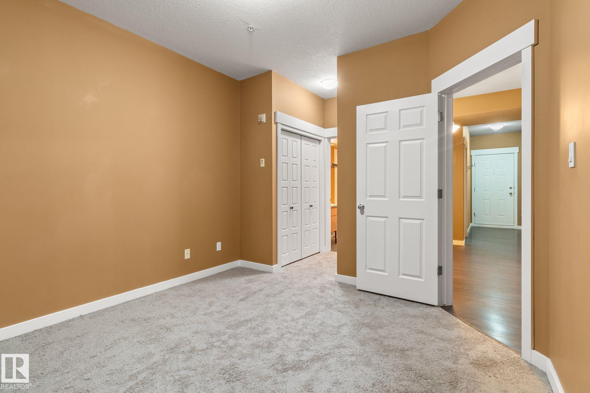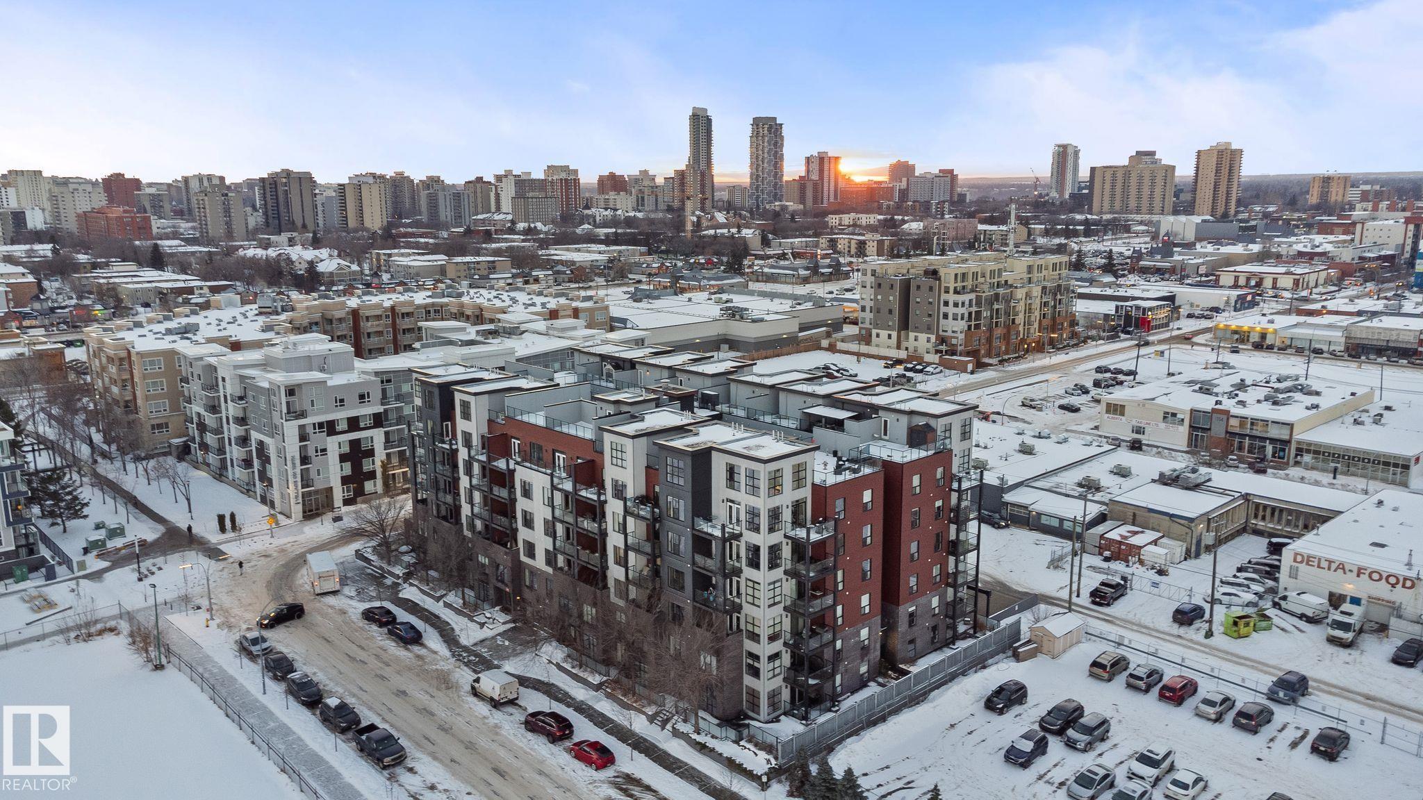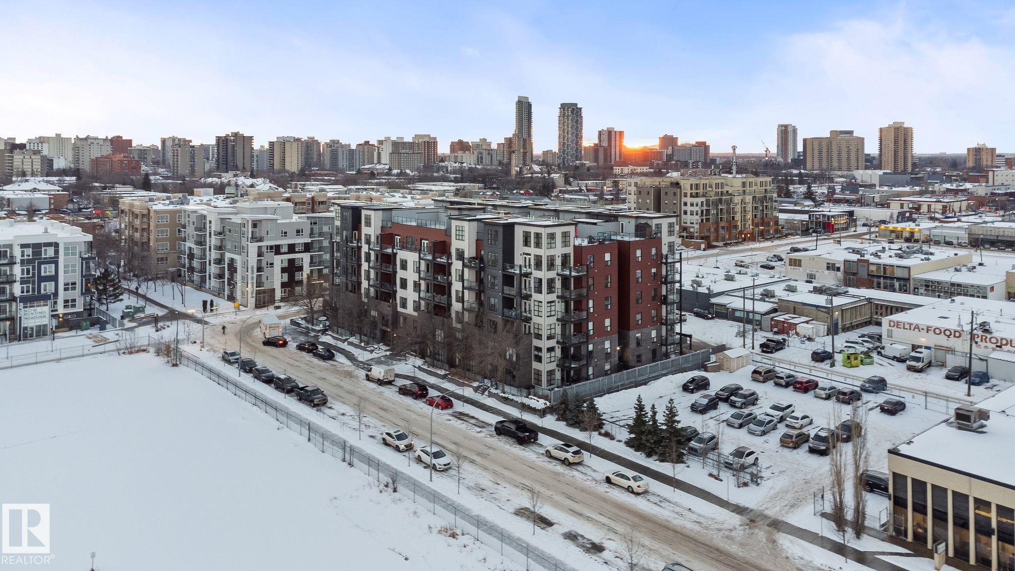 Minutes to downtown and close to Edmonton's best restaurants, shopping, and nightlife, this 790 sq ft condo nails the "easy city living" vibe. Tall ceilings and an open layout make the space feel bright and airy, while large windows bring in tons of natural light. The kitchen is the centerpiece with granite counters, a big island for prep and hosting, and stainless steel appliances. Wood style flooring keeps it clean and durable. The primary bedroom easily fits a king bed and includes a private dressing area that leads into a modern ensuite with a glass shower. A second room gives you options as a home office, guest space, or flex room. You also get a second full bathroom, in suite laundry, and air conditioning for summer comfort. Step outside to an oversized balcony with a gas line for your BBQ and plenty of room for patio furniture, perfect for summer evenings. Complete the package with underground parking for secure, year round convenience.