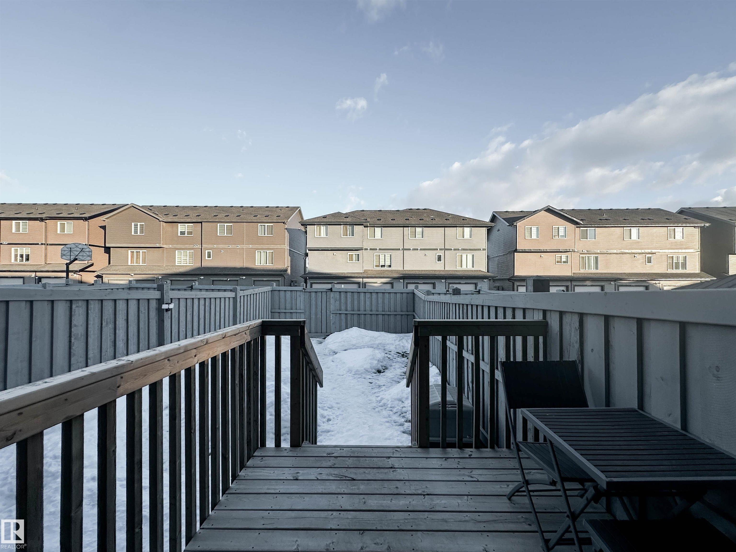 Experience refined townhome living in this thoughtfully upgraded residence designed for both style and comfort. The main level showcases elegant luxury vinyl plank flooring, a sophisticated electric fireplace, and an open living and dining area ideal for entertaining. The contemporary kitchen is finished with quartz countertops, upgraded stainless steel appliances, center island and a striking backsplash, creating a polished and modern aesthetic. A discreet 2-piece powder room completes the space. Upstairs, two spacious primary suites each offer private full ensuites, complemented by convenient upper-level laundry. The undeveloped basement offers endless potential to expand your living space with an additional bedroom and bathroom. Outdoors, enjoy a fully fenced yard with a deck and a double parking pad--an exceptional blend of luxury, functionality, and future potential.