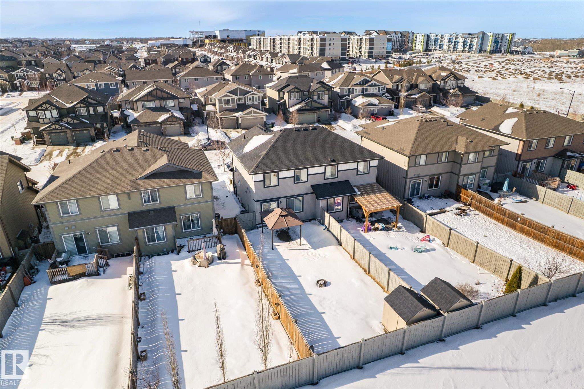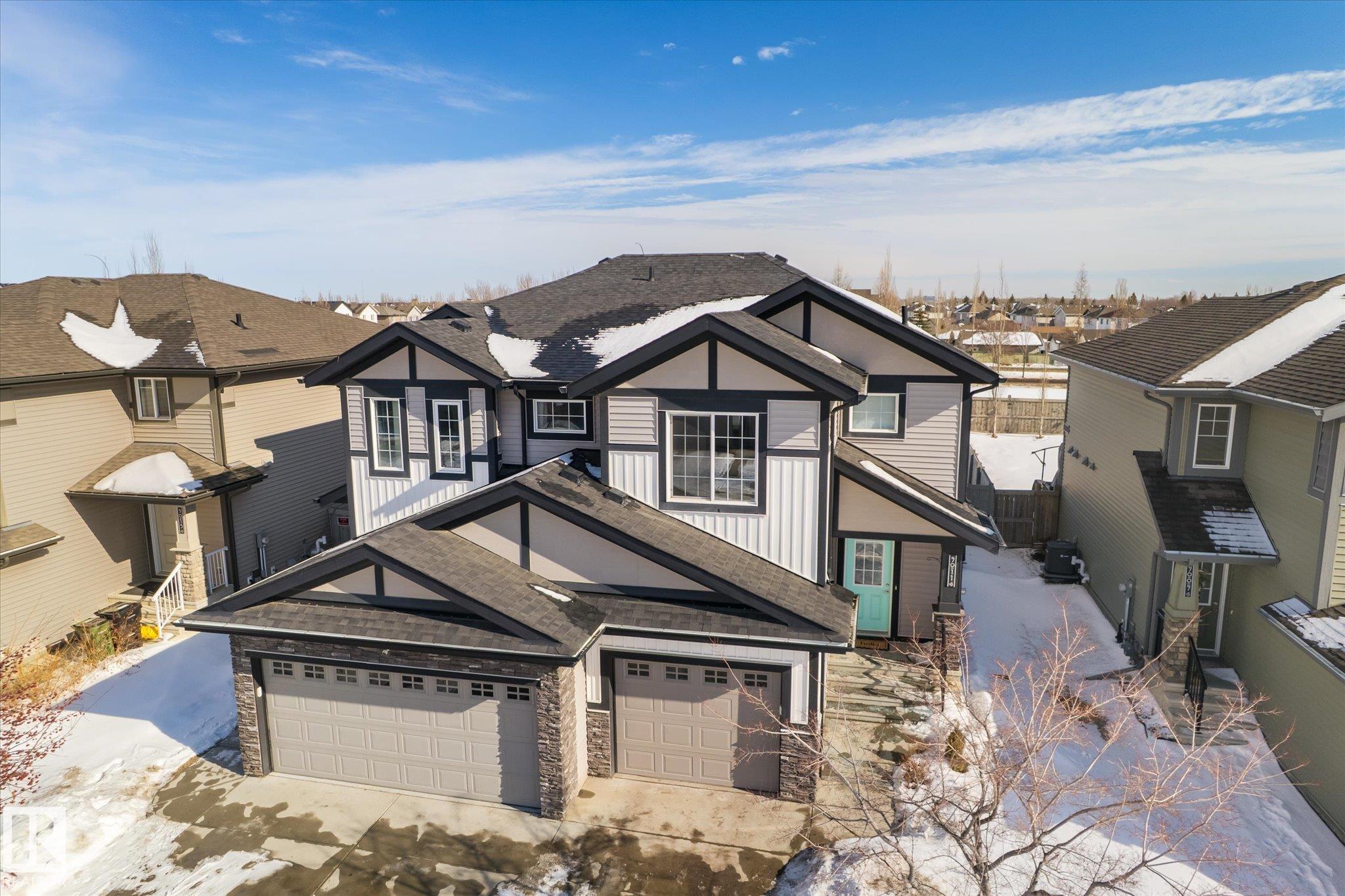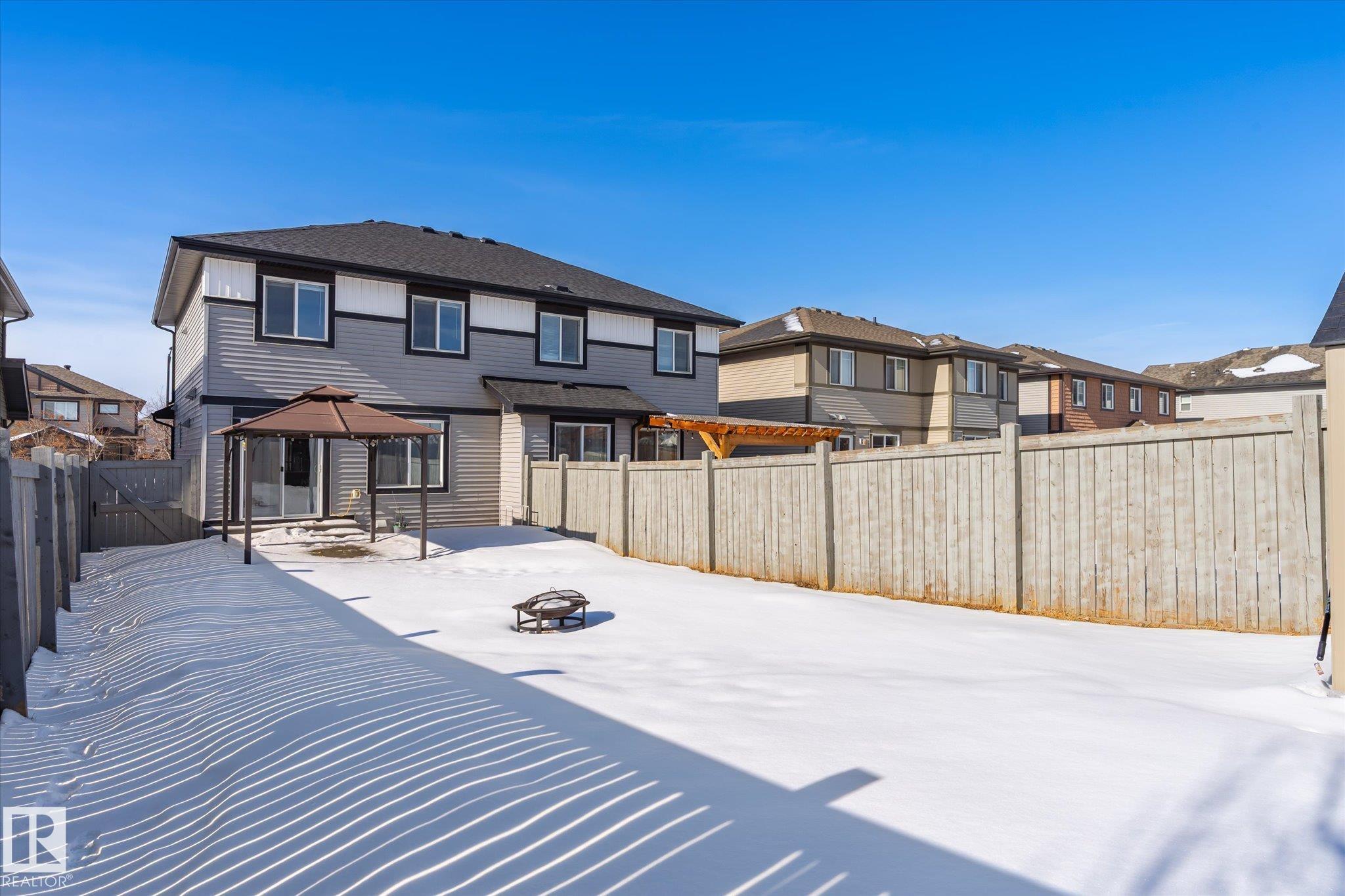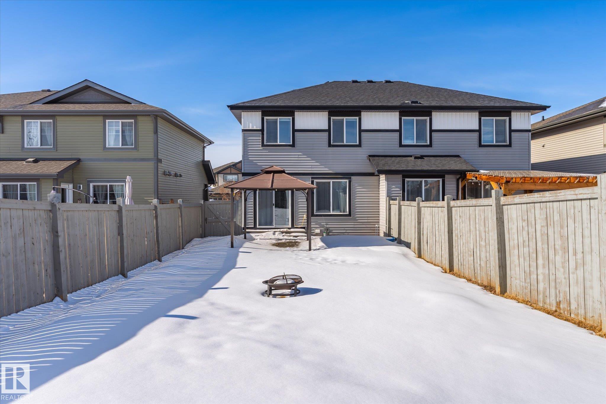 Located in the desirable community of Rosenthal within Lewis Estates, this well-maintained half duplex offers over 1,320 sq. ft. of living space, 3 bedrooms, 2.5 bathrooms, and a single attached garage.The main floor features a beautiful kitchen showcasing granite countertops, a large island, stainless steel appliances, rich wood cabinetry, and a spacious corner pantry. The dining area opens through patio doors to a large fenced backyard, perfect for entertaining or family time. A bright living room, 2-piece powder room, and access to the attached garage complete the main level.Upstairs, you'll find three bedrooms, including a primary suite with a walk-in closet and private 3-piece ensuite. The second and third bedrooms are larger than average and are conveniently located near the 4-piece main bathroom.Enjoy quick access to major routes including Anthony Henday Drive and Whitemud Drive, along with nearby amenities such as Costco Wholesale, River Cree Resort and Casino, great schools and shopping.