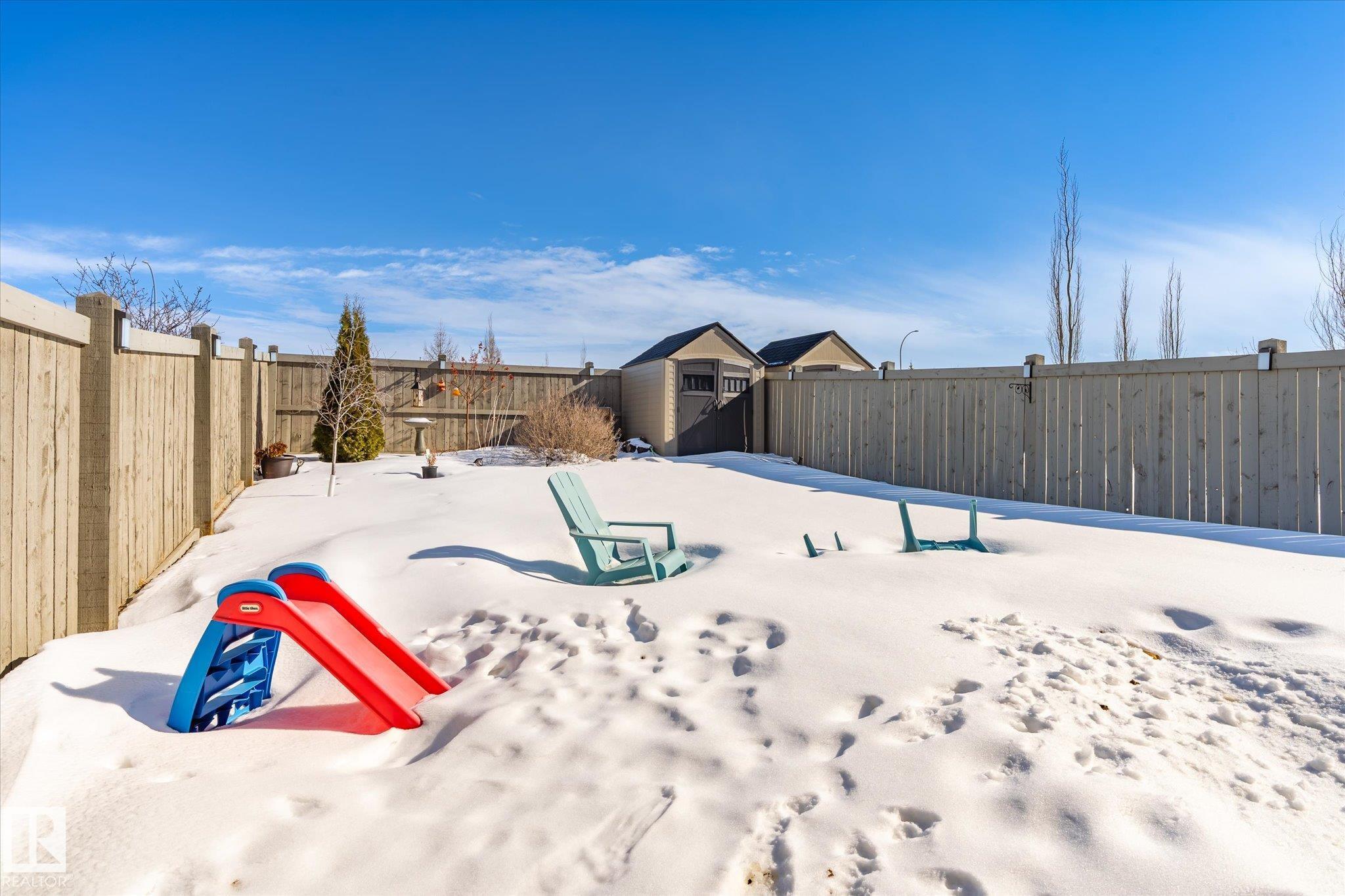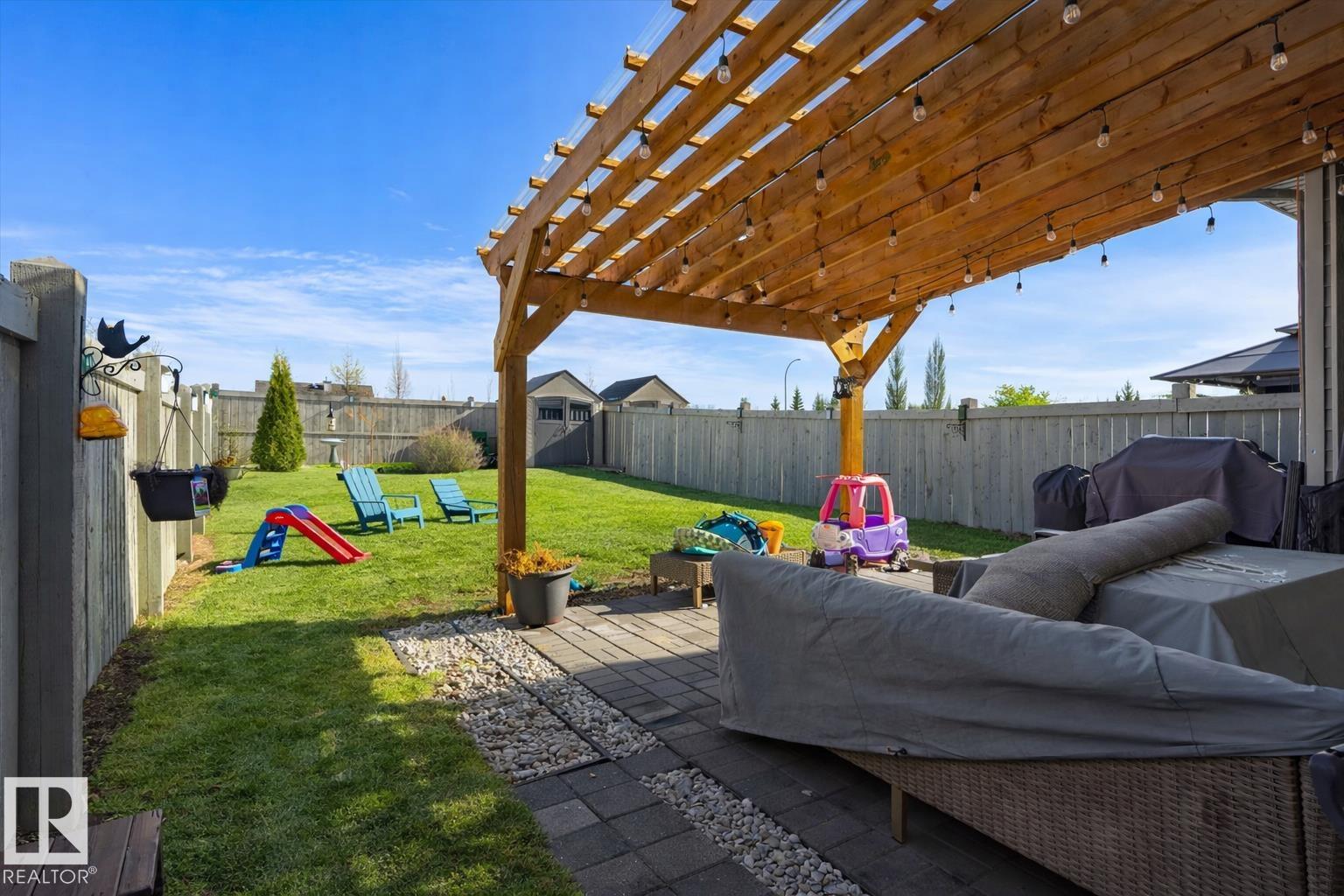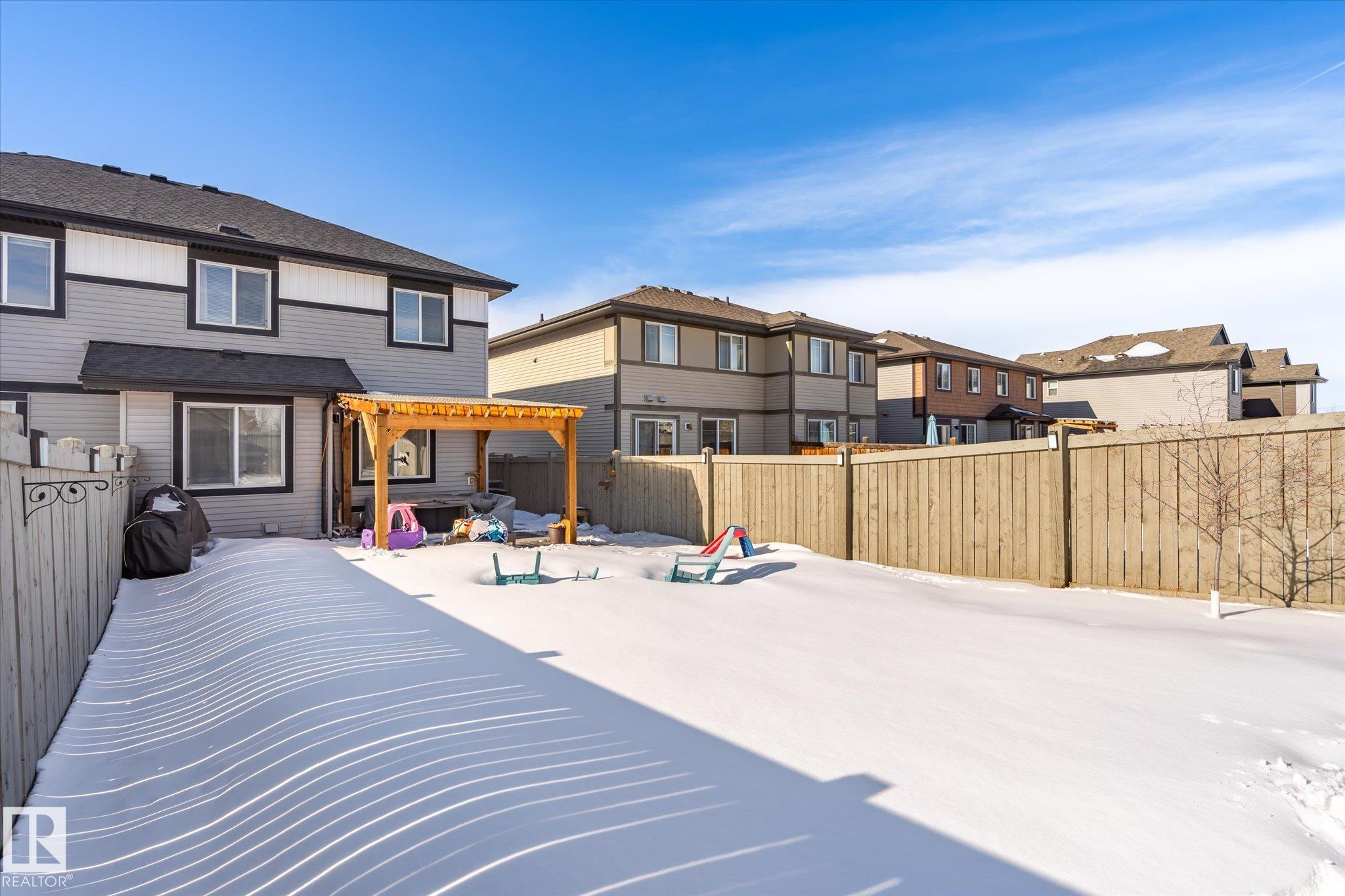 Welcome to this well-maintained half duplex in the desirable community of Rosenthal in the sought-after Lewis Estates. Offering over 1,500 sq ft above grade, this home features 3 bedrooms, 2.5 bathrooms, and a double attached garage. The open-concept main floor offering luxury laminate flooring, central A/C, quartz countertops, stainless steel appliances, and a modern kitchen with a large island and walk-through corner pantry. The bright breakfast nook overlooks the spacious fenced backyard with a deck and gazebo, creating a great space for entertaining and outdoor living. Upstairs you will find a generous primary suite with a 3-piece ensuite and walk-in closet, along with two additional well-sized bedrooms, a 4-piece bathroom, and convenient second-floor laundry. Ideally located with quick access to Anthony Henday Drive and Whitemud Drive, and just minutes from shopping, restaurants, and entertainment at West Edmonton Mall. A great opportunity to own in a family-friendly West Edmonton community.