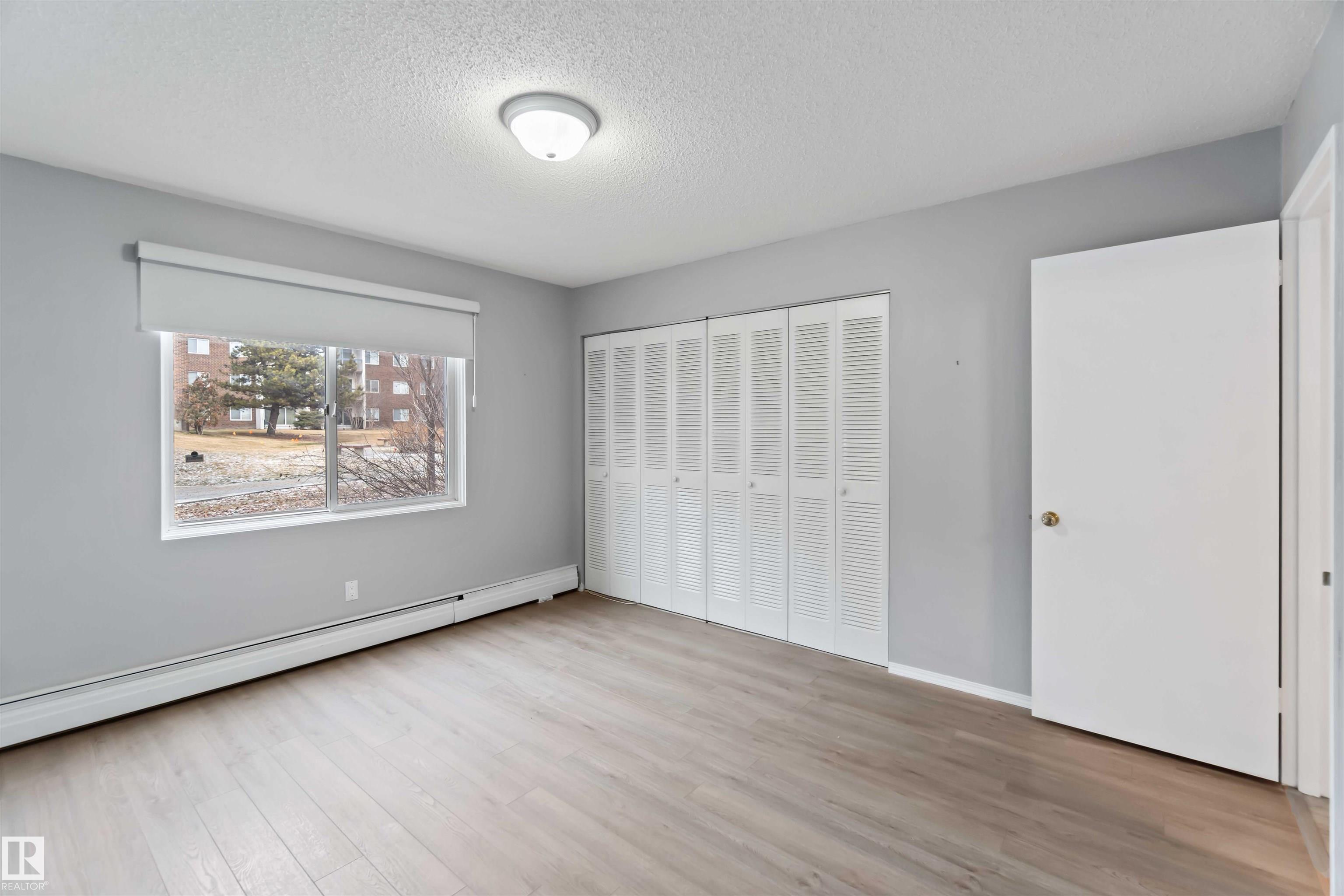 Affordable ground-floor condo with a serene park view! This bright and spacious 893 sq. ft. unit offers exceptional convenience--especially for pet owners--with direct access to green space and your own oversized patio, perfect for outdoor dining, BBQs, and gardening. Inside, you'll enjoy a well-designed layout featuring 2 bedrooms, a functional galley kitchen, a separate eating nook, and an impressively large living room filled with natural light. The modern 4-piece bathroom has been tastefully updated. Recent improvements include a new dishwasher, fresh paint, and new flooring throughout both the unit and the building's hallways. Additional features include an In-suite stacked washer and dryer, Generous in-unit storage, with the option to rent additional storage. Titled underground parking stall conveniently located near the access doors. The building offers excellent amenities such as a fully equipped gym, saving you the cost of an external membership, and a guest suite available for rent for visitors.