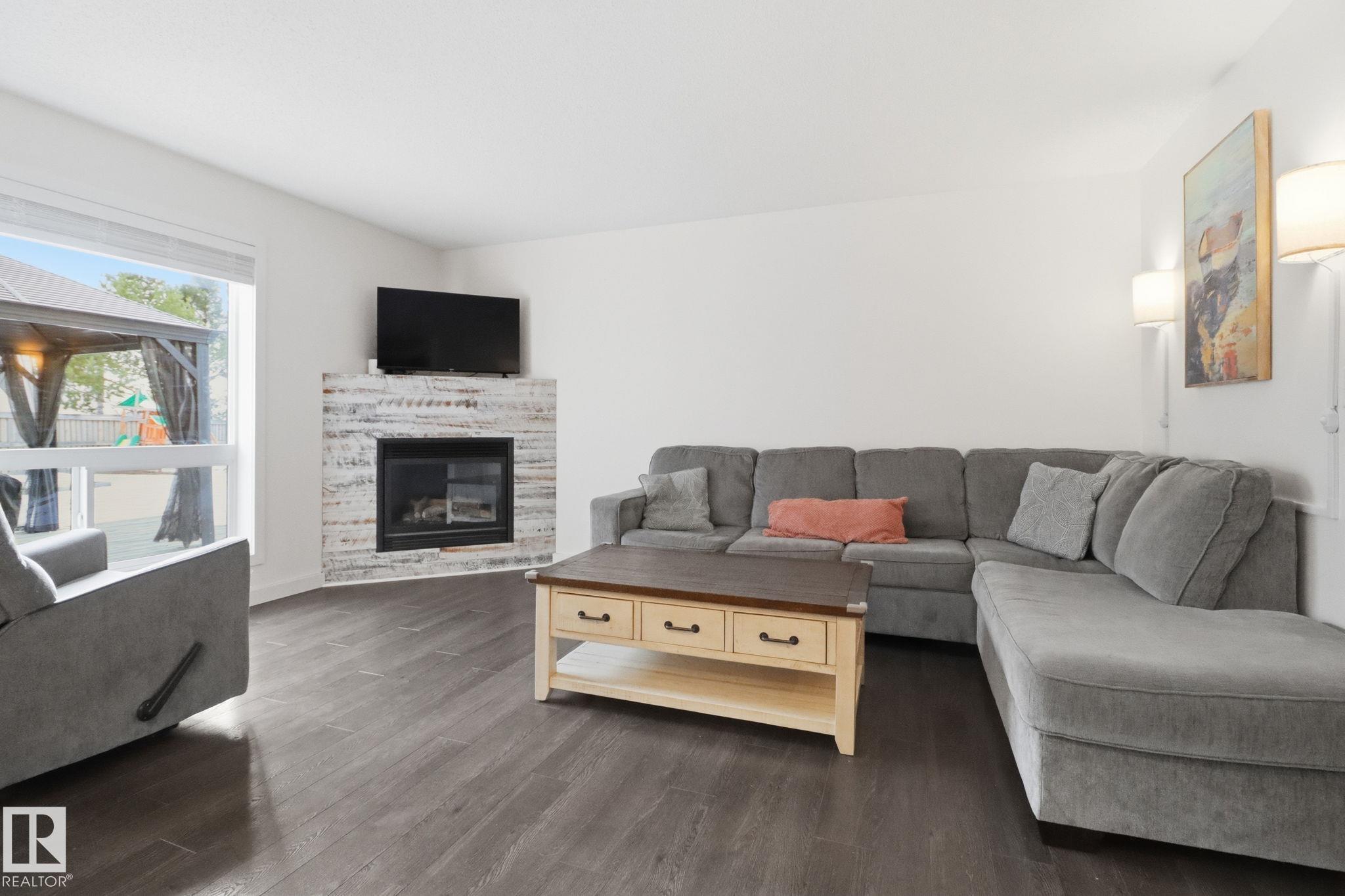 Turn-key half duplex on a rare, massive pie-shaped lot in highly sought-after South Terwillegar! Discover this fully finished 3-bedroom, 2.5-bath duplex offering over 1,700 sq.ft. of total developed space, positioned on an expansive 639 mý lot with a sunny SE-facing backyard. Enjoy exceptional outdoor living with a large deck, gazebo, mature privacy trees, and handy storage shed. The open main level features a cozy corner gas fireplace, peninsula-style kitchen, stylish tile flooring, abundant natural light and a professional fresh coat of paint throughout! Stay comfortable year-round with central A/C and a brand-new H/E furnace for optimal energy savings. The finished basement adds a spacious family room, versatile office/playroom nook, laundry/utility area, extra storage, and a newer HWT. The upstairs owner's suite offers a private 4 piece ensuite + walk-in closet. Best of all-no condo fees! Family-friendly neighborhood, close to all amenities, shops, transit, rec center, Henday, schools and more. 10/10!