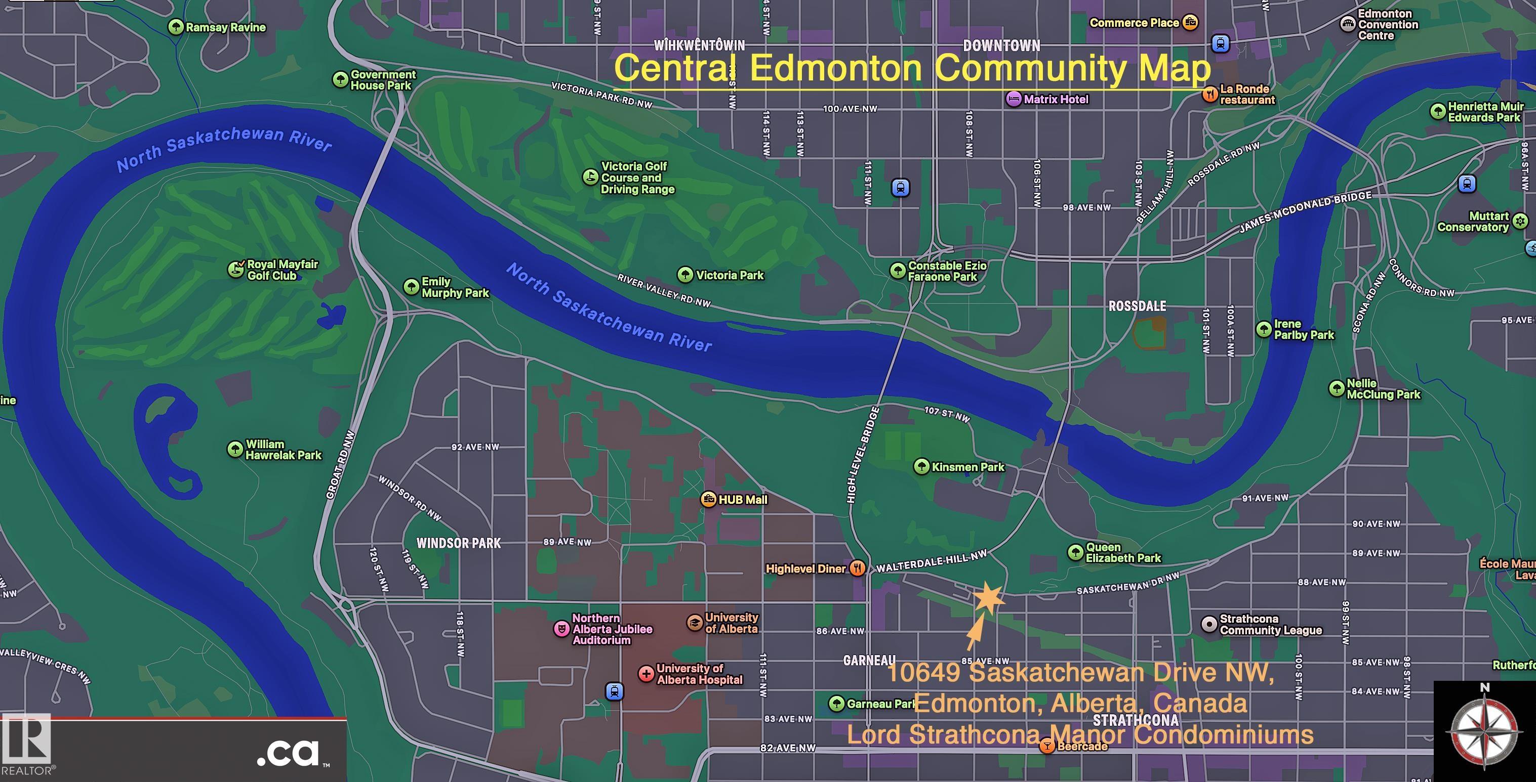 IMMACULATE CONDITION 6th FLOOR CORNER SUITE IN LORD STRATHCONA MANOR! Features & Upgrades: * Newer Painting & Flooring * Newer Stainless Steel Appliances * In-Suite Laundry & Storage * 2 BDRMs include a Walk-in Closet & 2 Full En Suite Baths * In-Suite Laundry & Storage * Heat Pump with Air Conditioning * TWO EXTERIOR BALCONIES -- Total NE through SW excellent wraparound views of City, ravine, River Valley, & Downtown. Lord Strathcona Manor offers a wide array of building amenities: * Secure Front Entrance Door * On-Site Maintenance Manager * Two Quality Passenger Elevators * Exercise Room * Social Room * Bicycle Storage Room * Underground (x 2 Stalls) * Visitor Parking (both front & back). South-Central Location on Saskatchewan Drive by River Valley Walking Trails, Kinsmen, University, Downtown, Walterdale Bridge, Restaurants, Retail, Legislature, Royal Glenora Club, Victoria Golf Course, & The Royal Mayfair Golf Club. Seller says "Very Good Neighbours" :) -- End of January Possession!