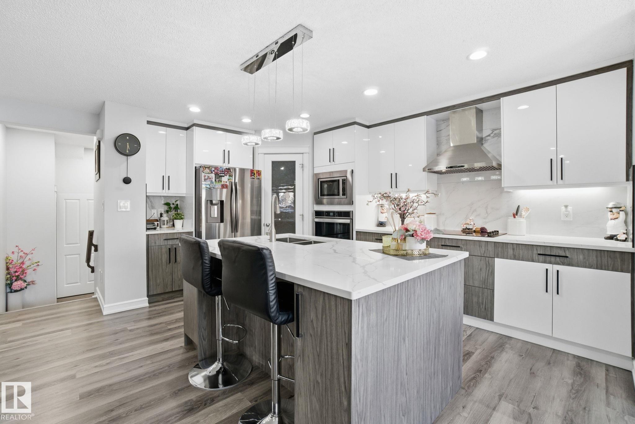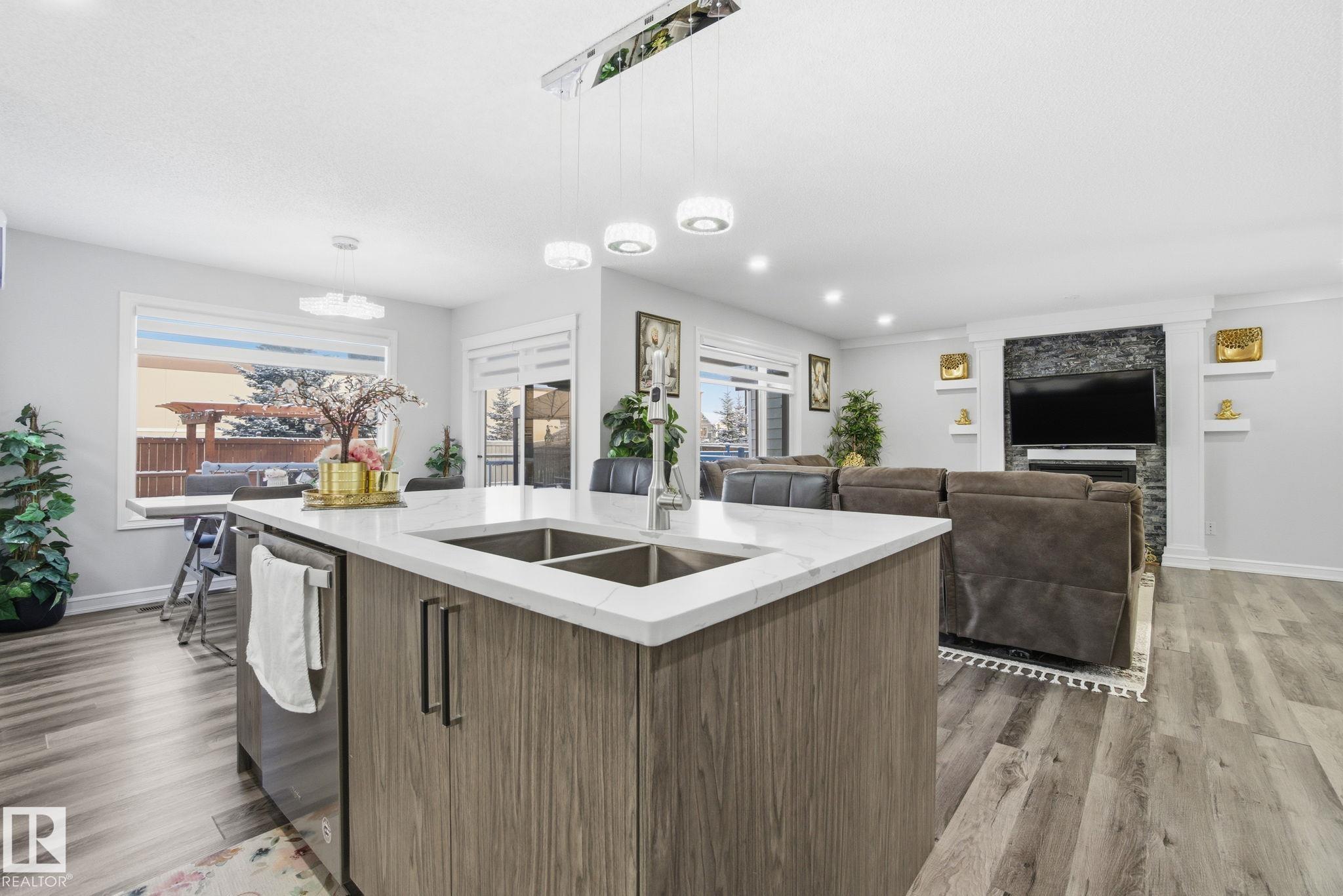 Welcome to this beautifully renovated 4-bedroom, 4.5-bath home in Tamarack, complete with a fully finished basement. Modern living, this home features stylish new flooring and a spacious, updated kitchen with granite and quartz countertops, stainless steel appliances, and ample storage. The open-concept main floor is perfect for both family life and entertaining. Upstairs, the primary suite offers a 4 piece ensuite and a walk-in closet with . An additional bedroom includes its own 4-piece ensuite, while two more well-sized bedrooms share another 3-piece bath. The fully finished basement provides a large family room & a bath. Step outside to enjoy a large deck with a covered portion perfect for summer gatherings and evening relaxation. The home also comes equipped with permanent exterior Christmas and holiday lighting, adding year-round convenience and curb appeal Ideally located within walking distance to Tamarack shopping, Meadows Recreation Centre, schools
