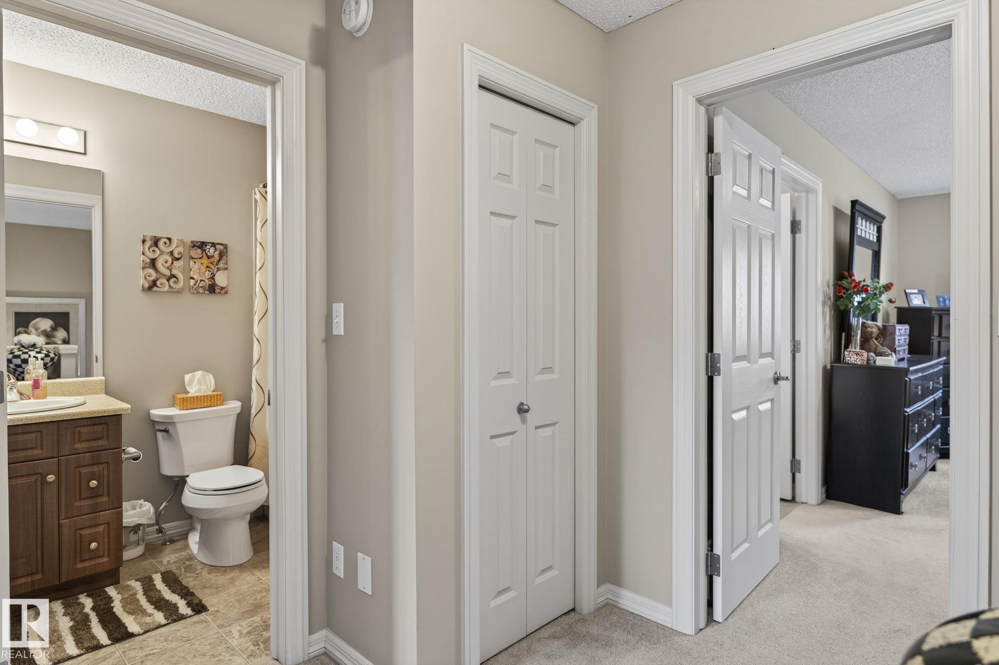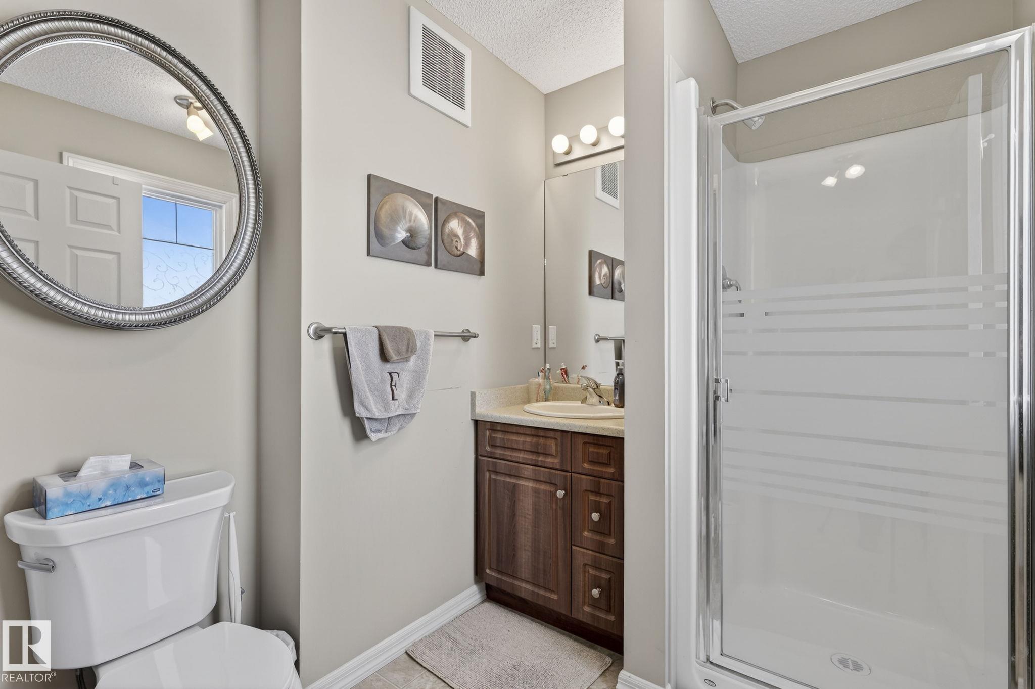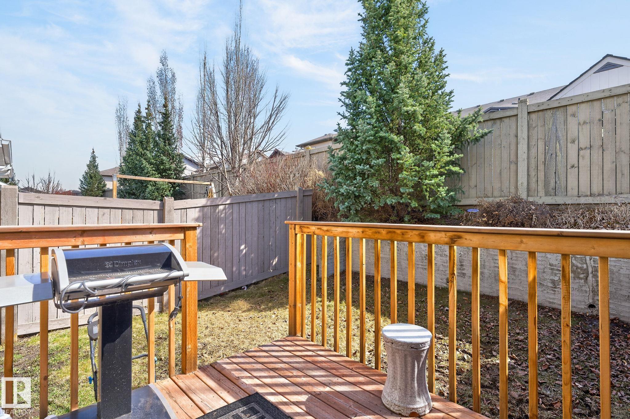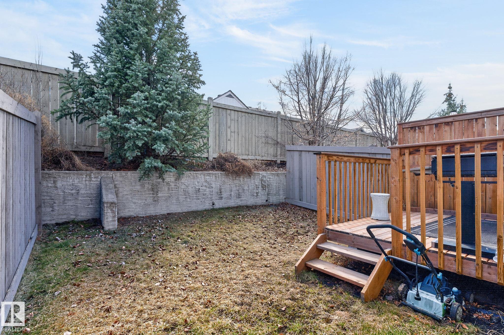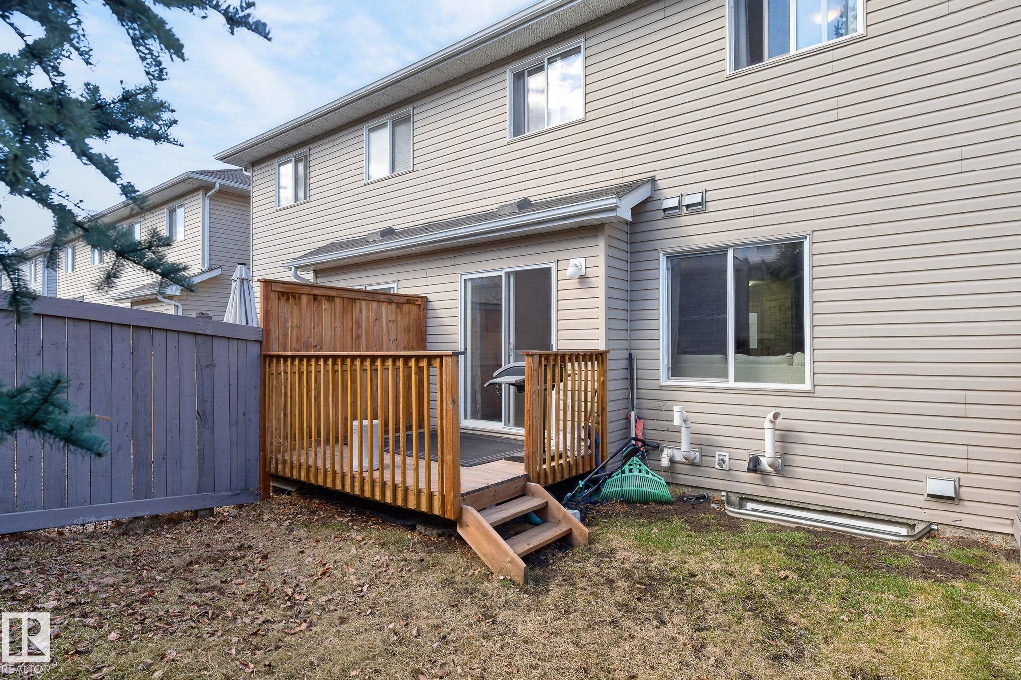 FANTASTIC townhouse in a fantastic location! Excellent layout and in immaculate condition. Main floor with gleaming hardwood flooring, boasts an inviting foyer. Cozy living room with big window. Beautiful kitchen has large island & ample cabinets. Bright and cheery dining area has patio door on to the deck & private fenced sunny south back yard. Conveniently located powder room. Insulated attach garage. Upstairs features the large master bedroom with its own ensuite & two closets. Two other spacious bedrooms and the main bath. Very popular complex which is close to all the amenities including your favourite coffee shops, restaurants & shopping venues, schools, parks & pond, The Meadows Community Recreation centre & transportation with easy access onto all major traffic arteries, Whitemud freeway, Anthony Henday & QE2 highway. Priced perfect and way below the 2026 assessment of $337,500. New hot water tank. One owner. Pride of ownership is evident everywhere! No pet, no children & pets! The search is over.