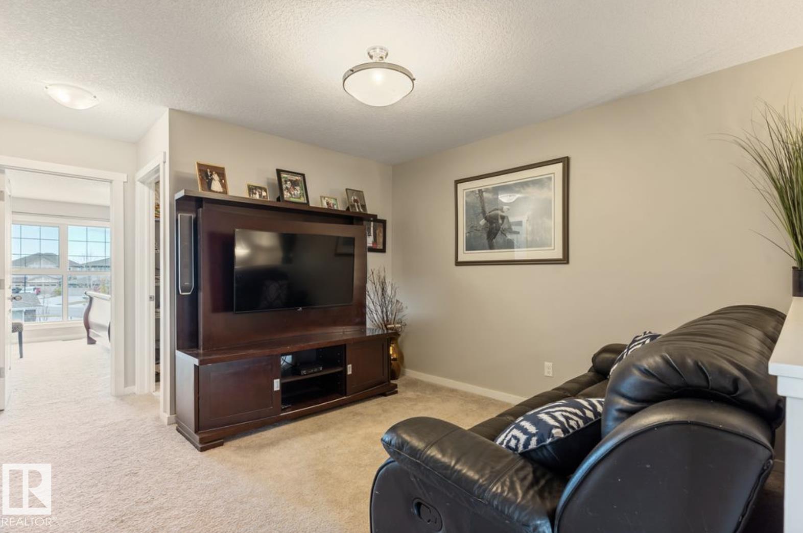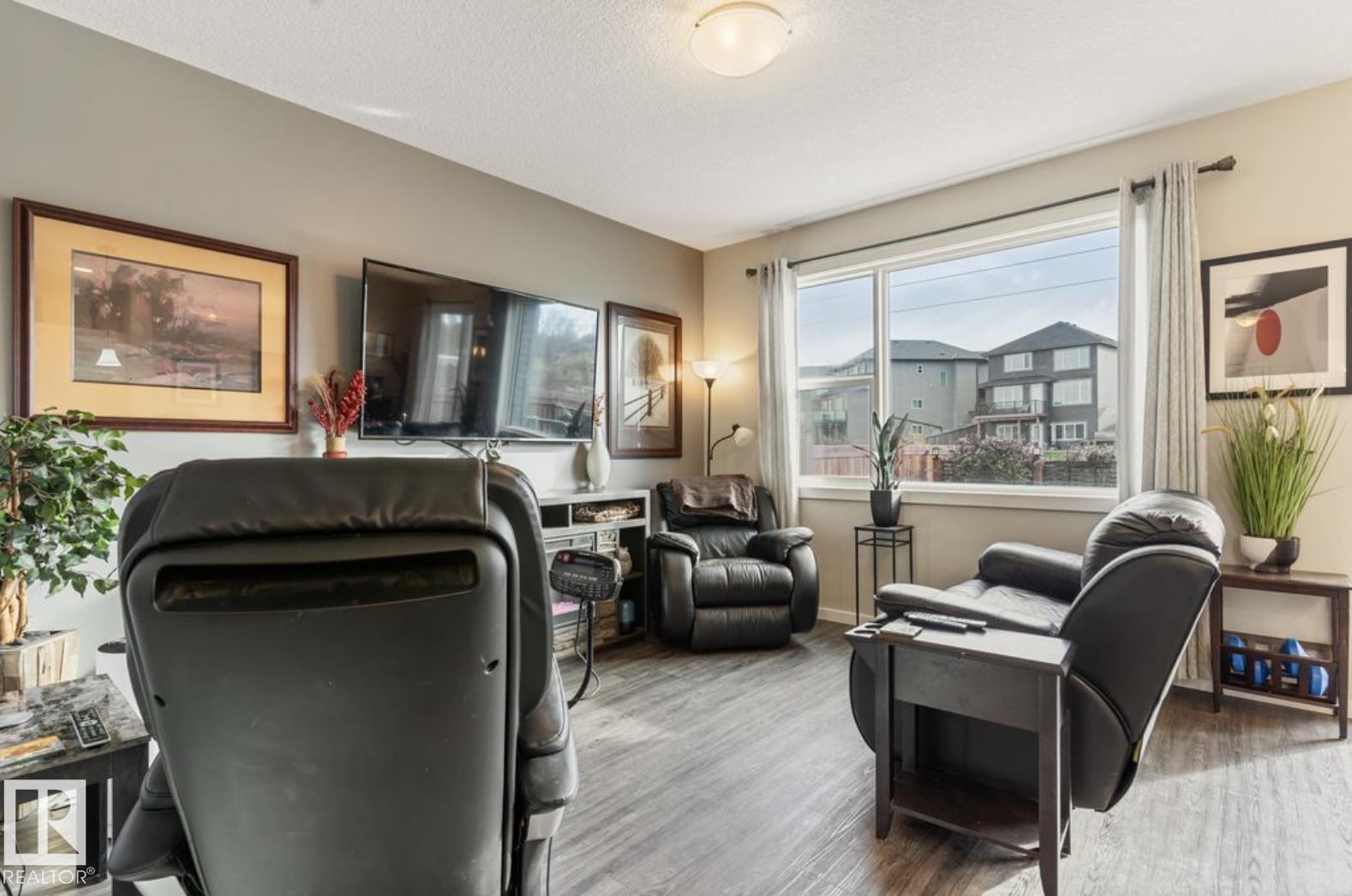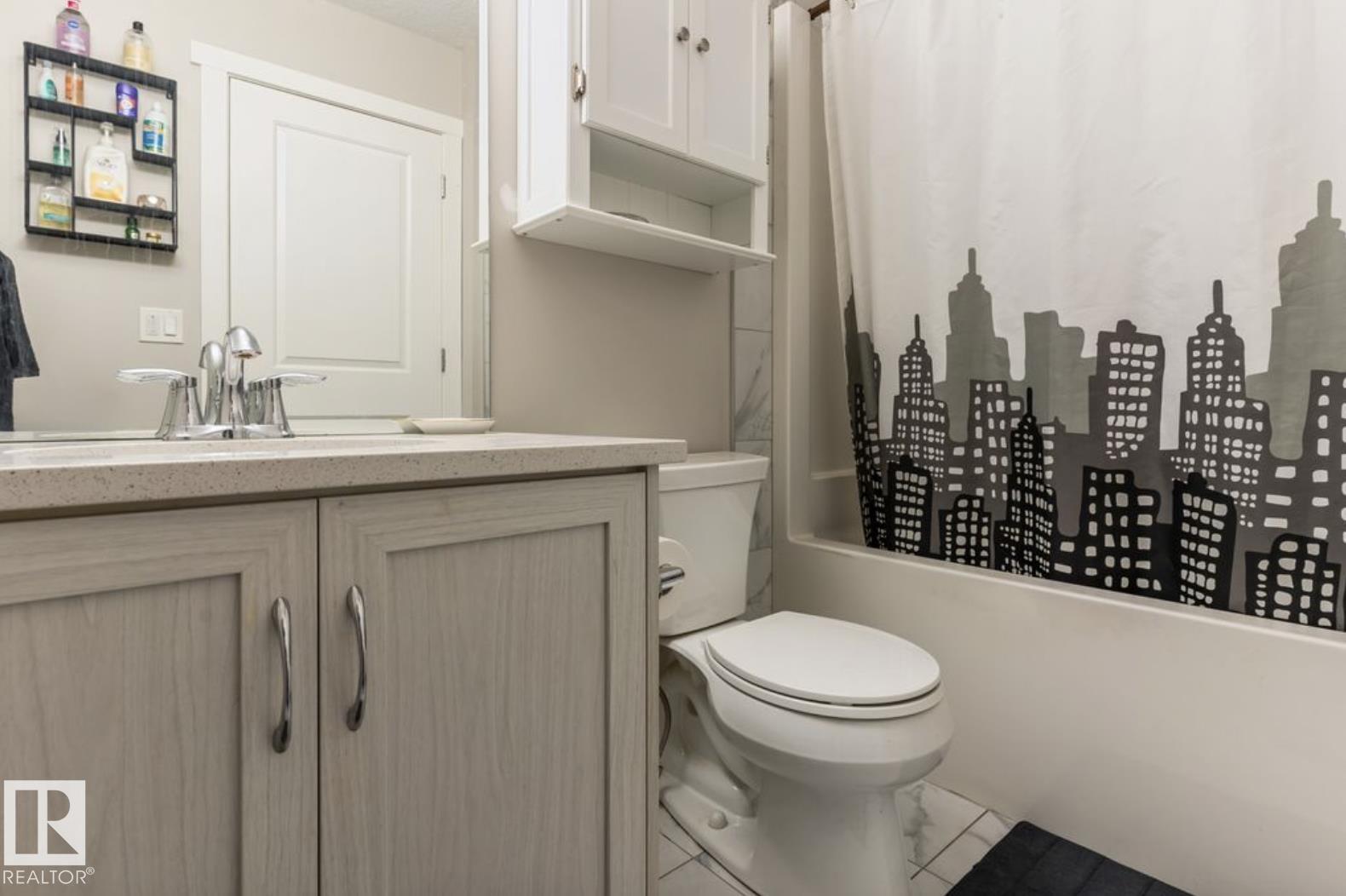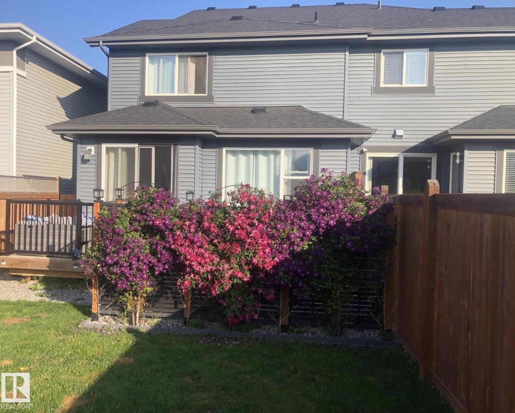 Welcome to this stunning 3-bedroom, 3-bath half duplex in the desirable community of Trumpeter, offering over 1,600 sq. ft. of modern living space and a fully insulated double-car garage. The main floor features 9-ft ceilings throughout and a bright open-concept design that seamlessly connects the kitchen, dining area, and living room, along with a convenient main-floor washroom. The kitchen impresses with snowy white quartz countertops and elegant beige cabinetry, creating a perfect blend of warmth and sophistication. Upstairs you'll find two additional bathrooms, three spacious bedrooms with ample closet space, and a versatile bonus room ideal for family entertainment or a home office. The professionally landscaped yard offers a sizeable deck and hot tub, providing the perfect space to relax and unwind. This home combines style, comfort, and functionality in one of Edmonton's most sought-after neighbourhoods.