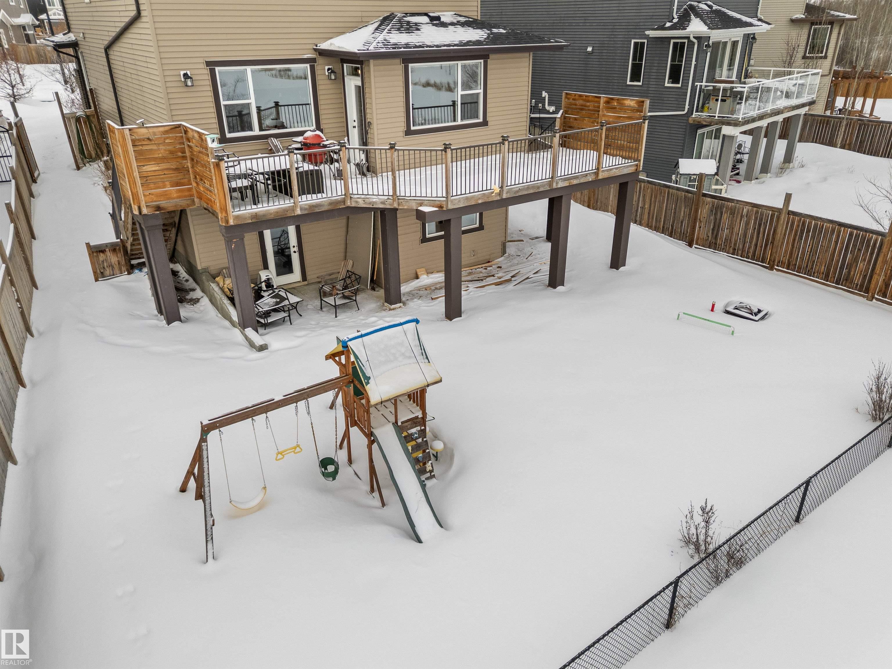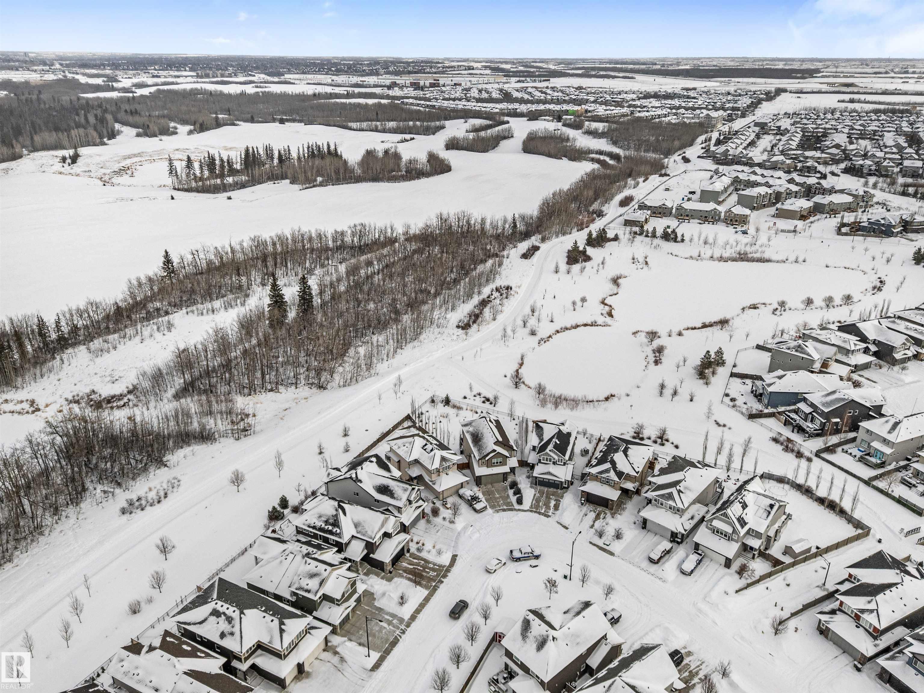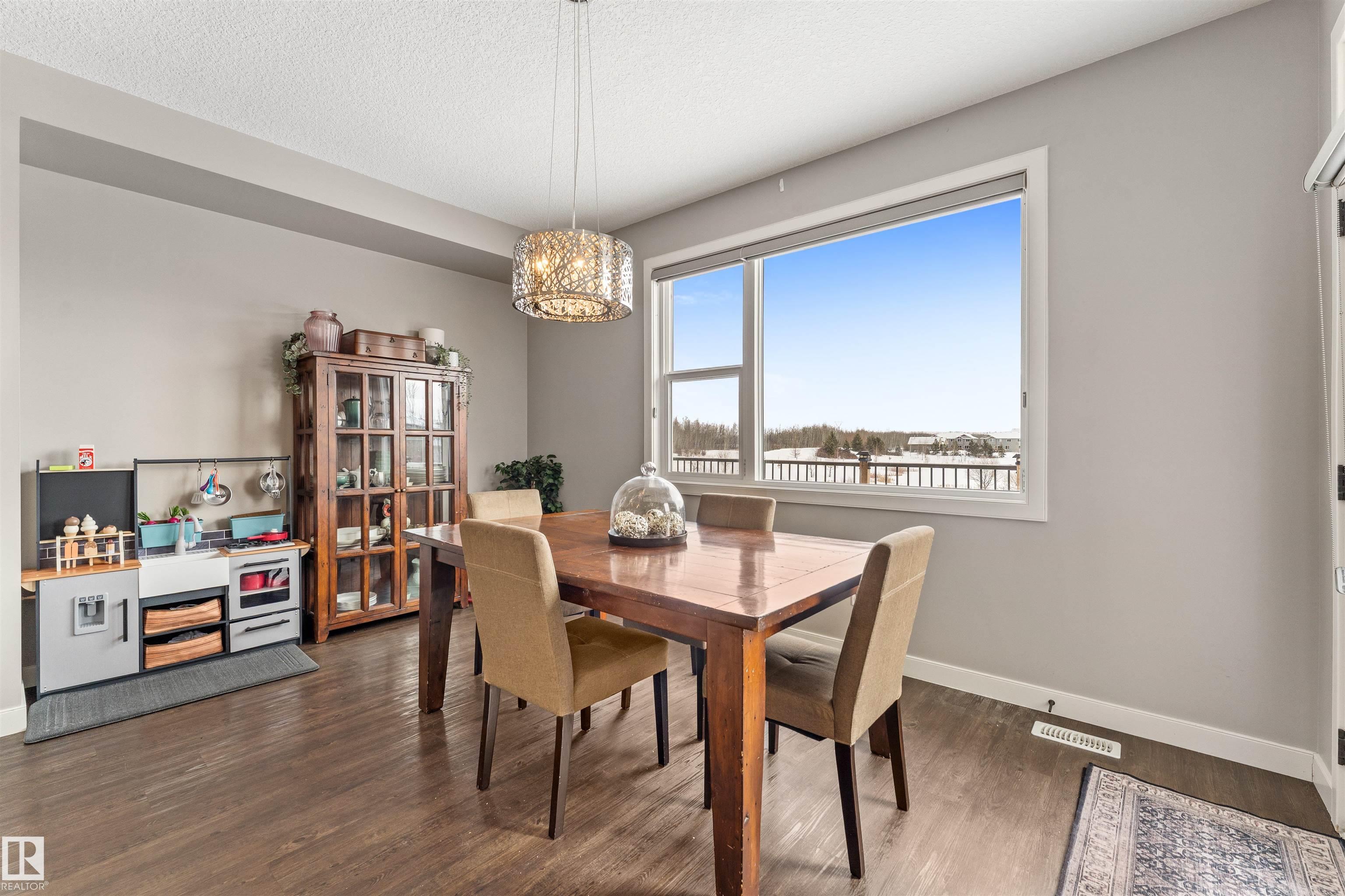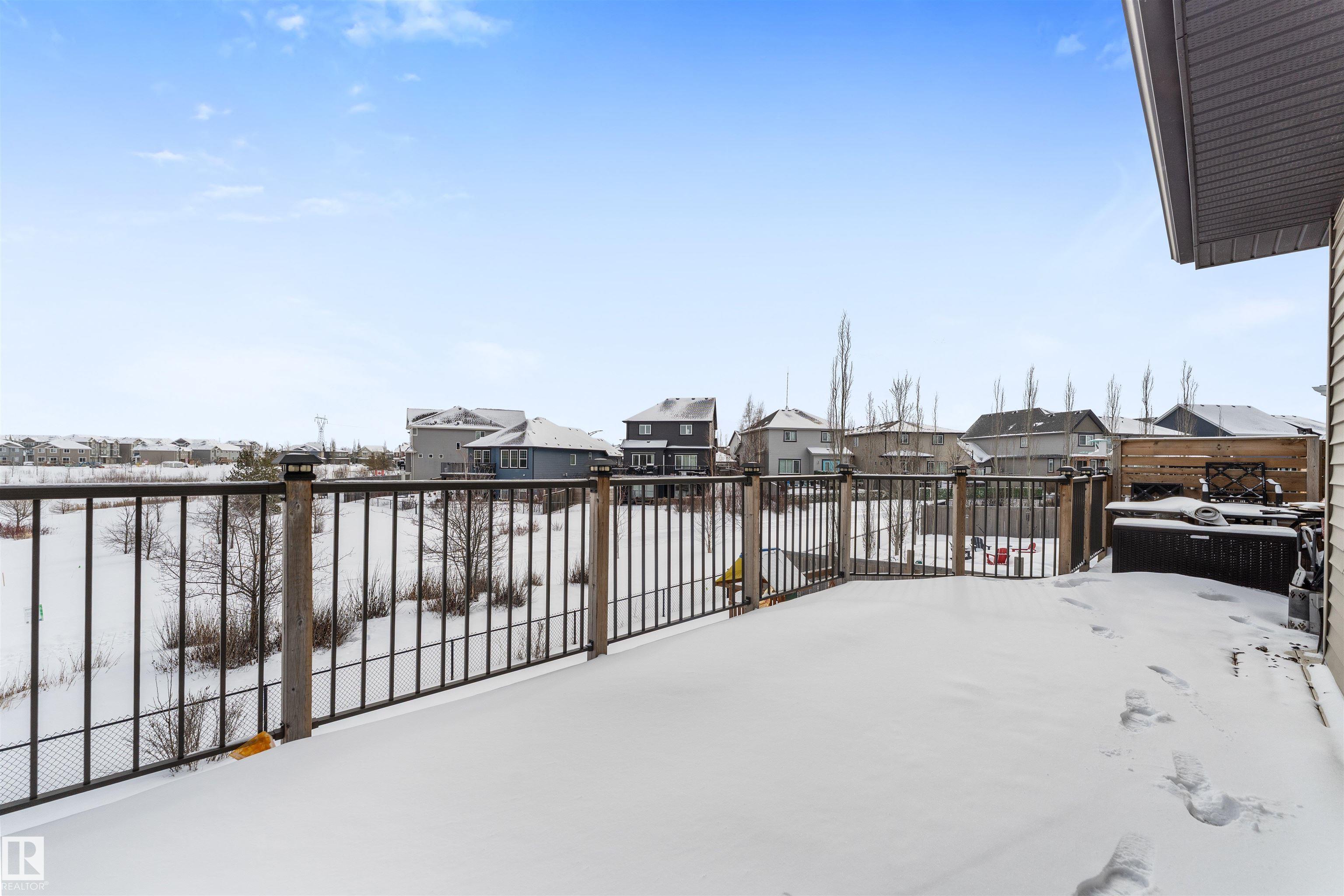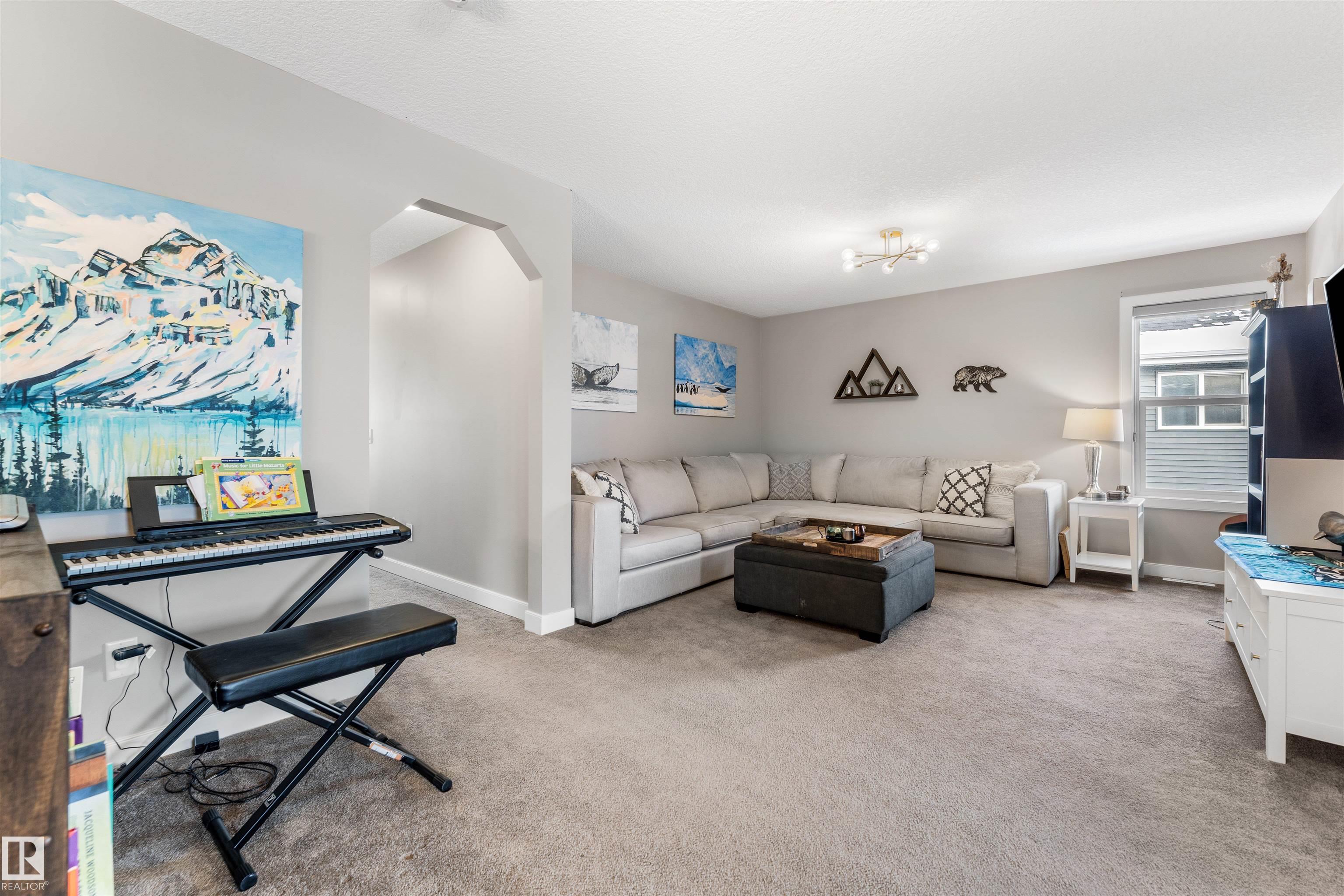 VA-VA-VA VOOM! You're going to FALL IN LOVE with this GORGEOUS AIR-CONDITIONED 2-storey with 2,419 ftý, 4 beds, 3.5 baths, BONUS ROOM, den + FULLY FINISHED WALKOUT basement with DOUBLE ATTACHED GARAGE backing beautiful Lake Relvas in NW Edmonton's Trumpeter! Spacious entry leads to the bright living room with huge windows overlooking the lake! GAS FIREPLACE & sleek vinyl plank flooring! The kitchen is beautiful with GRANITE countertops, eat-up breakfast bar, WALK-THROUGH PANTRY & COFFEE BAR + DEN + 2-pc bath! Upstairs is a large BONUS ROOM, HUGE primary bed with WALK-IN CLOSET & luxurious 5-pc ENSUITE with SOAKER TUB + SEPARATE SHOWER. Two additional beds (both with walk-in closets), laundry room + 4-pc bath! Fully finished walkout bsmnt has the perfect FAMILY ROOM for entertaining, 4th bed, 4-pc bath & plenty of storage! Enjoy peaceful mornings or evenings on your deck. Steps to walking trails! Close to transit, golf & Lois Hole Park! Over 3,400 ftý of living space! Your next chapter starts right here!