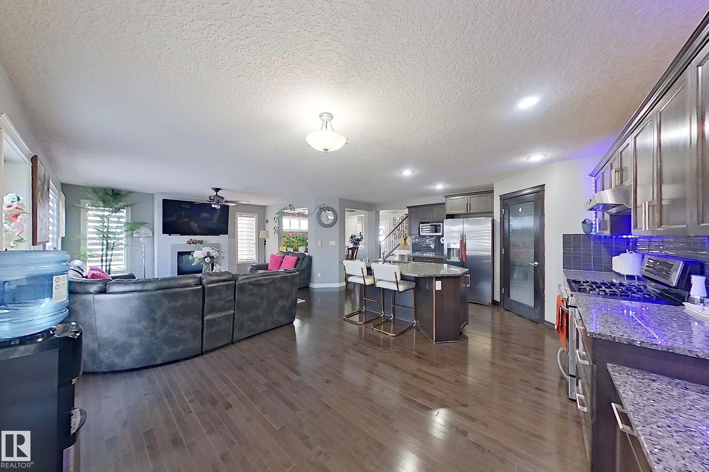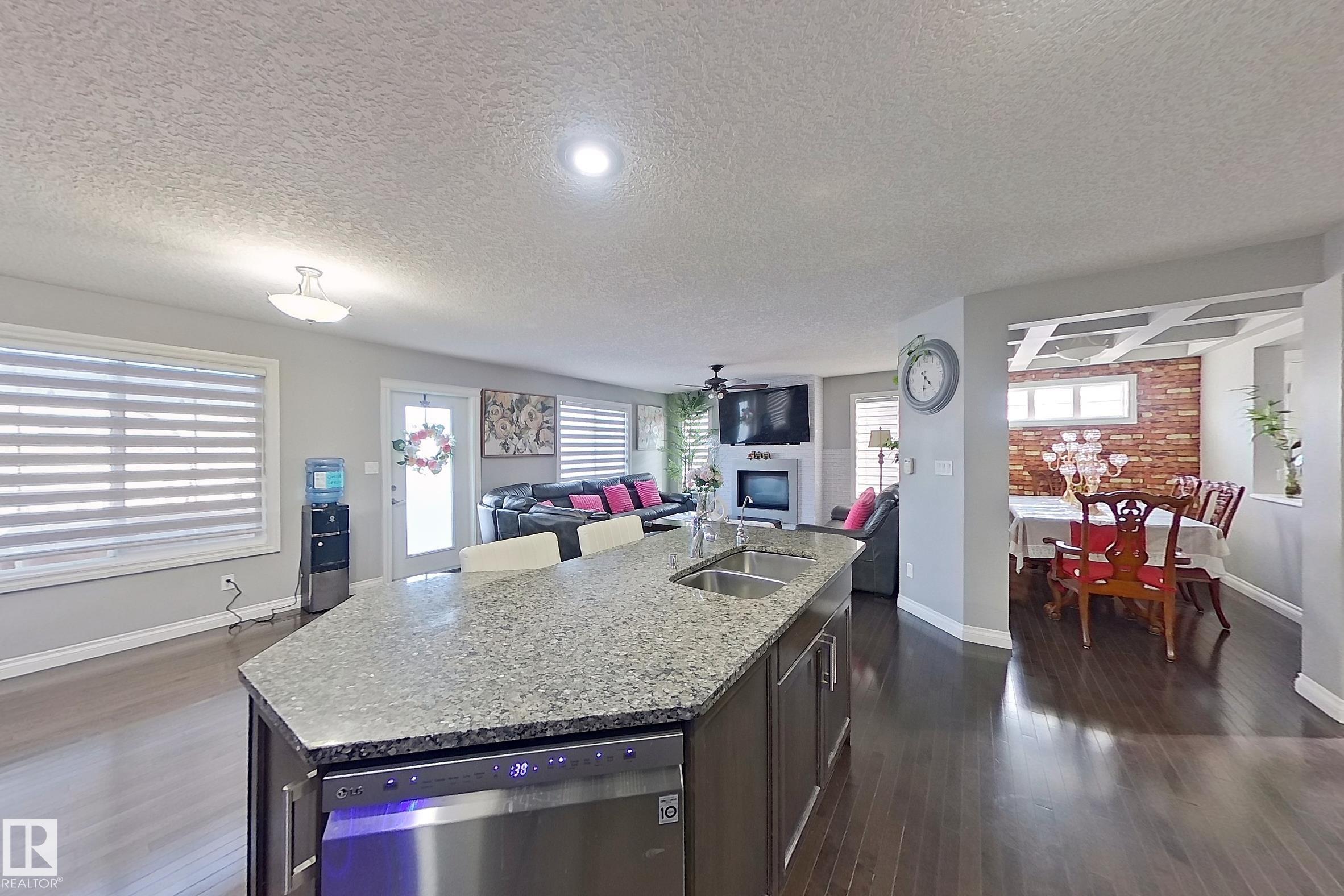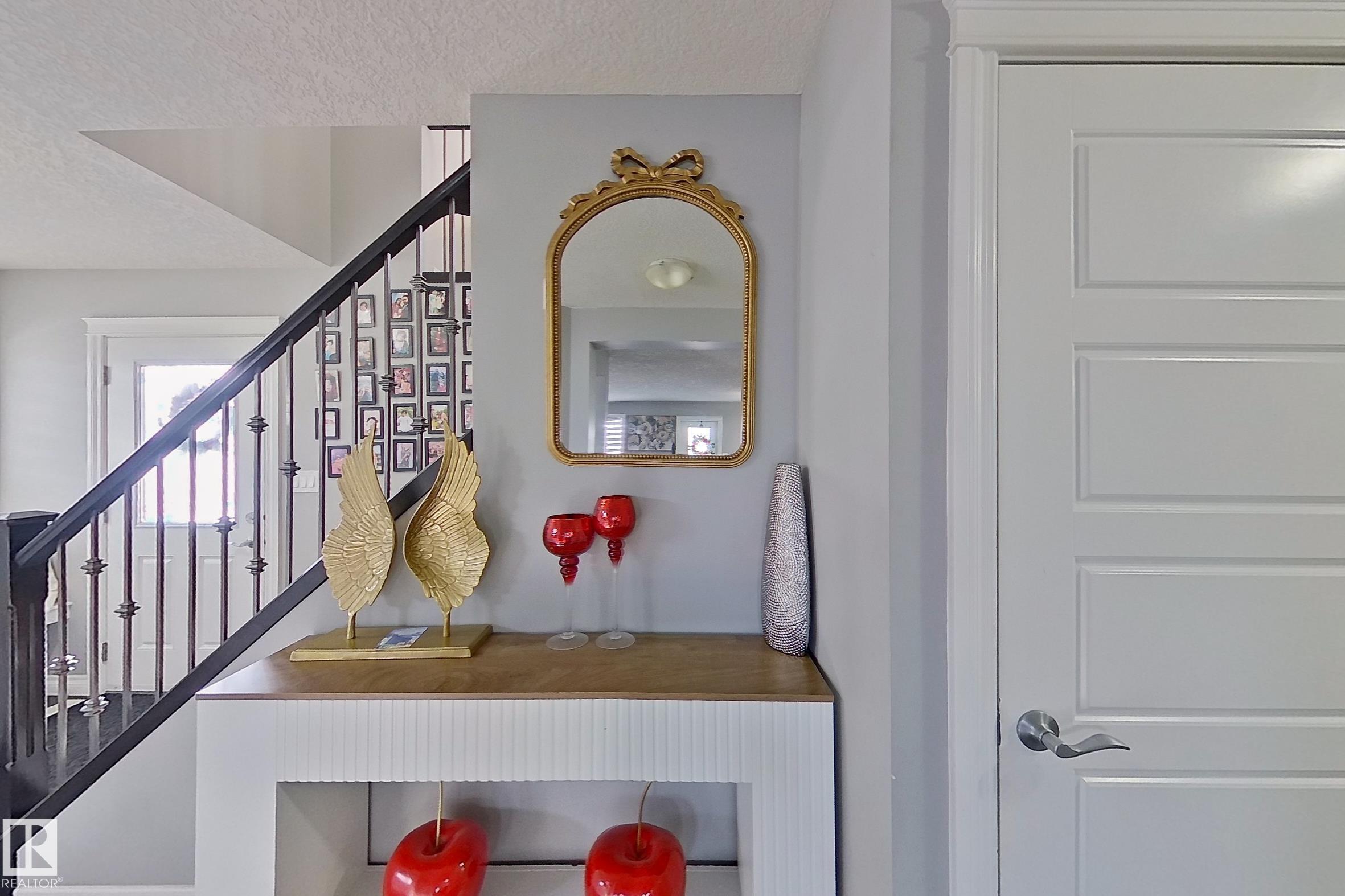 Welcome to one of the most sought-after communities in Southwest Edmonton! This well-maintained and upgraded 2,050 sq. ft. home is ideally located on a quiet street, while still offering easy access to shopping, public transit, and a new K-9 school within walking distance. The home features an extended kitchen with added cabinetry into the nook and a built-in desk, along with granite countertops throughout--even in the upstairs laundry room, which also includes a sink. The spacious mudroom is thoughtfully designed with built-in organizers, benches, hooks, and extra storage. An open den with elegant ceiling detail adds charm, while the upstairs bonus room boasts impressive 10 ft ceilings. The primary bedroom includes separate his-and-her closets for added convenience. Additional features include a water softener and drinking water filtration system. Outside, the home is fully fenced, landscaped, and comes with a deck--perfect for comfortable family living.