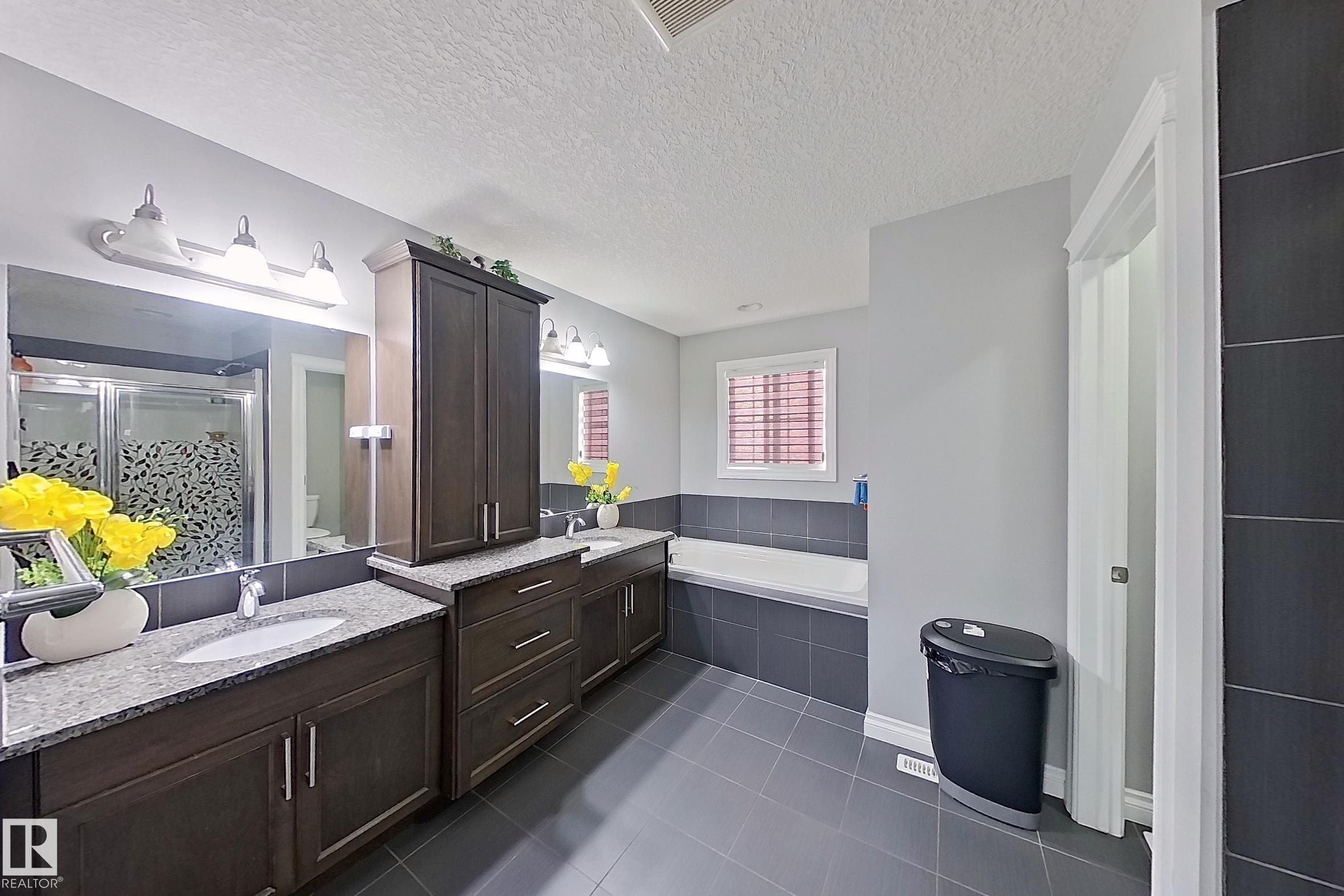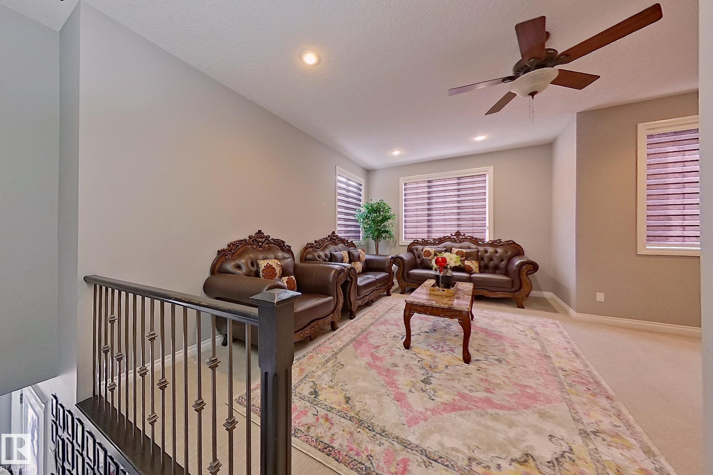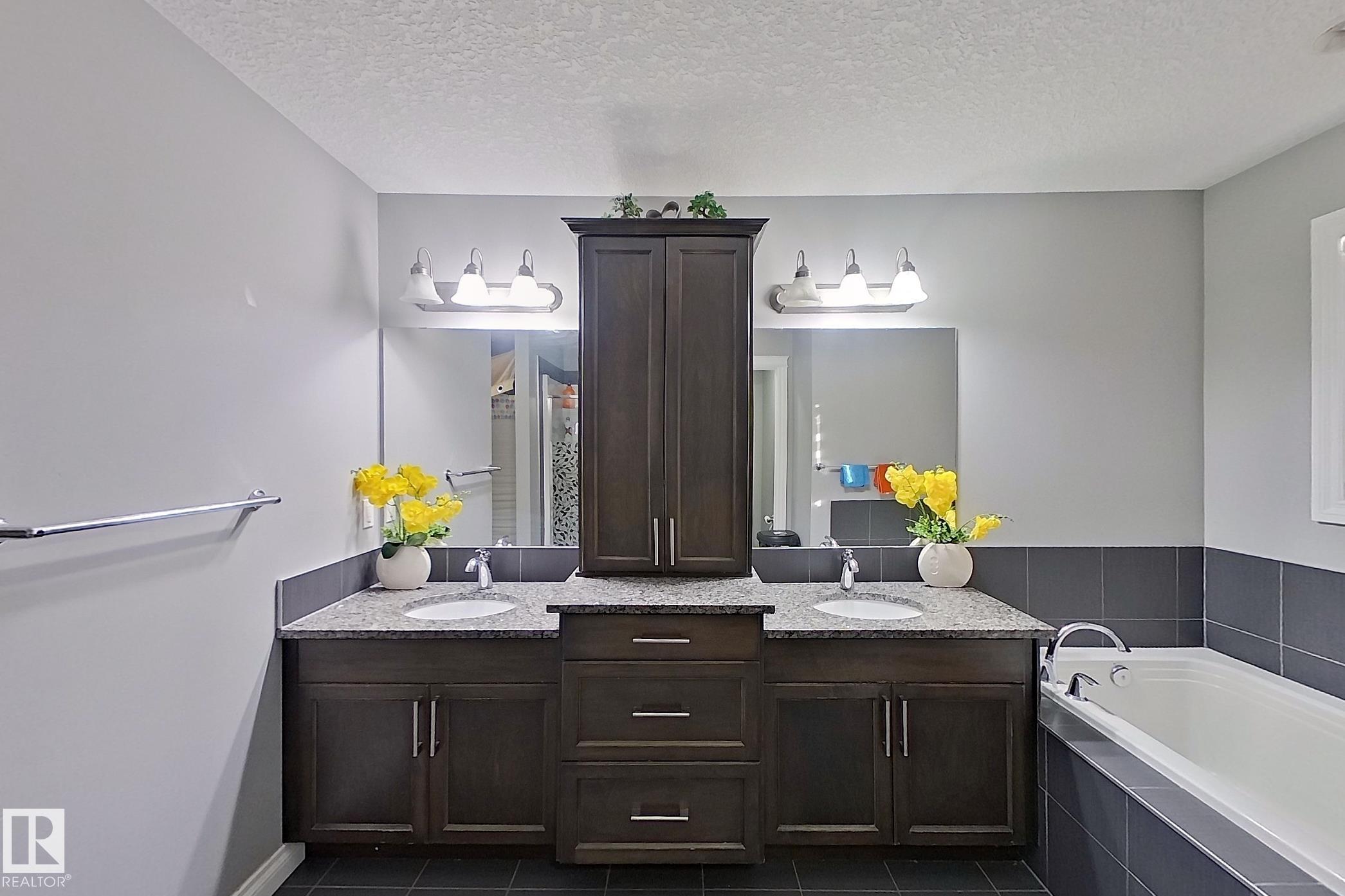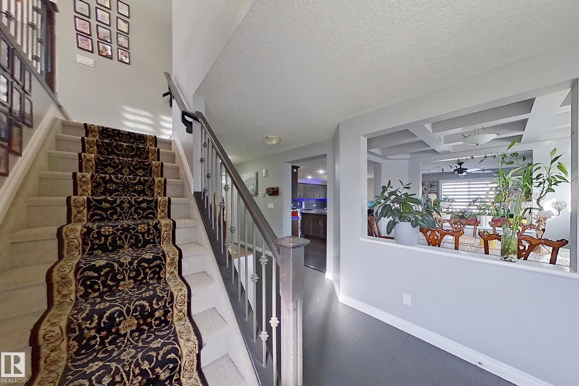 Welcome to one of the most sought-after communities in Southwest Edmonton! This well-maintained and upgraded 2,050 sq. ft. home is ideally located on a quiet street, while still offering easy access to shopping, public transit, and a new K-9 school within walking distance. The home features an extended kitchen with added cabinetry into the nook and a built-in desk, along with granite countertops throughout--even in the upstairs laundry room, which also includes a sink. The spacious mudroom is thoughtfully designed with built-in organizers, benches, hooks, and extra storage. An open den with elegant ceiling detail adds charm, while the upstairs bonus room boasts impressive 10 ft ceilings. The primary bedroom includes separate his-and-her closets for added convenience. Additional features include a water softener and drinking water filtration system. Outside, the home is fully fenced, landscaped, and comes with a deck--perfect for comfortable family living.