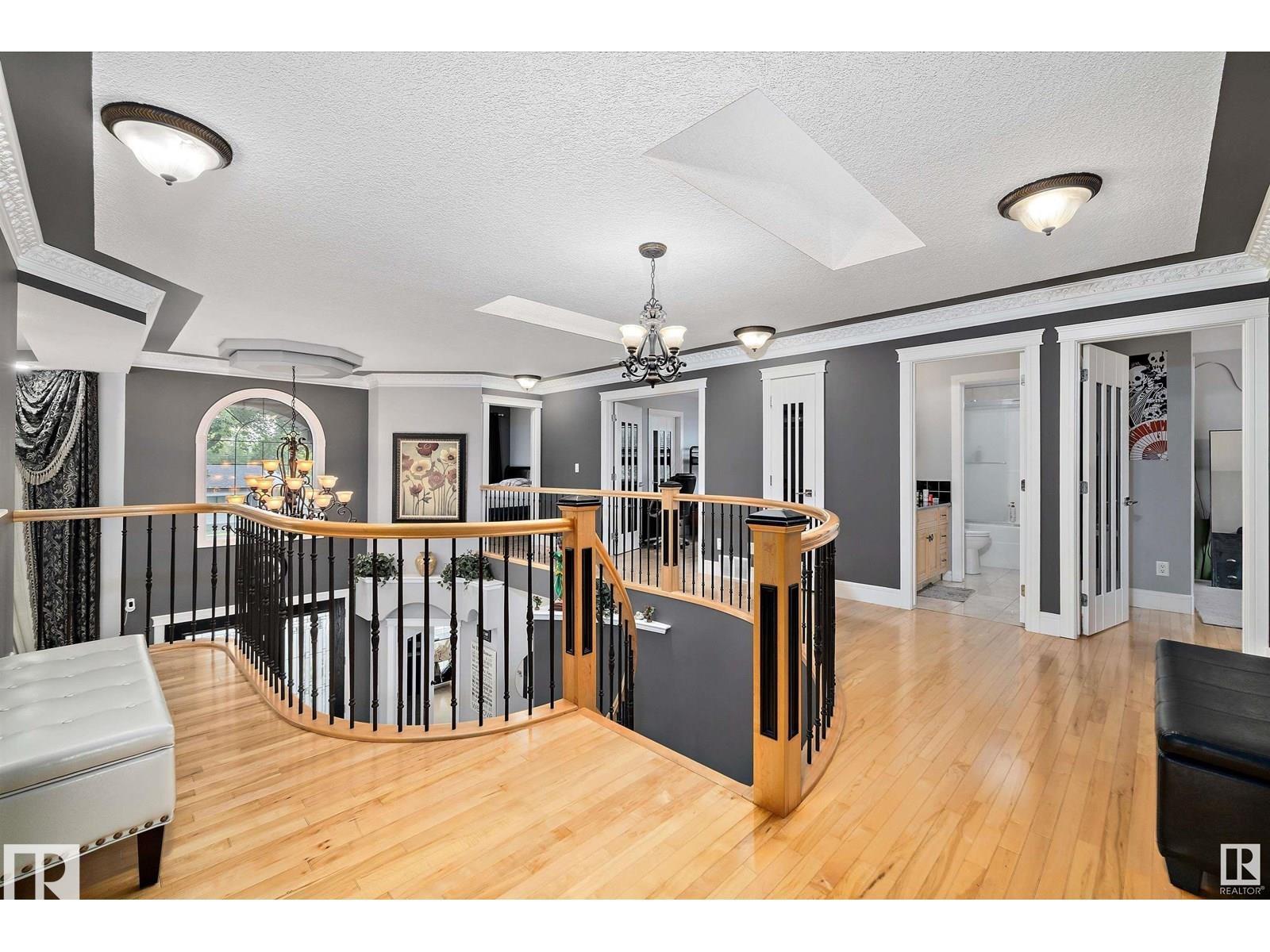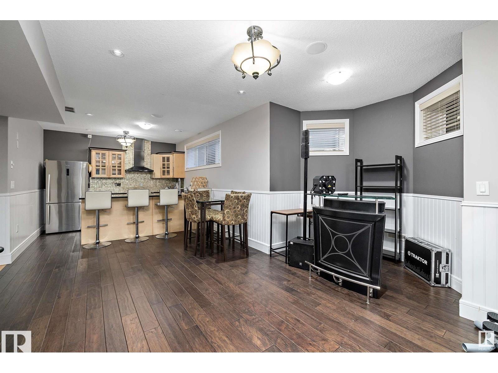 Welcome to this stunning 2-storey home with TRIPLE CAR GARAGE offering nearly 3,100 sq ft of luxurious living space, located just minutes from Downtown Edmonton and West Edmonton Mall. This spacious home features 7 bedrooms and 4.5 full bathrooms, perfect for large or extended families. A grand foyer and curved staircase create a striking first impression with an open-to-below design that elevates the space. The main floor offers a den, engineered hardwood, upgraded tile flooring, a gourmet kitchen with quartz countertops, gas stove, SS appliances, and a spice kitchen--ideal for preparing your favorite meals and entertaining guests. Upstairs, you'll find 4 large bedrooms and 3 full bathrooms, including a massive primary suite with a luxurious 5-piece ensuite and walk-in closet. Each room feels generously sized and thoughtfully designed. The fully finished basement features a Separate Entrance, second kitchen, 2 bedrooms, a 3-piece bath, and a spacious living room .