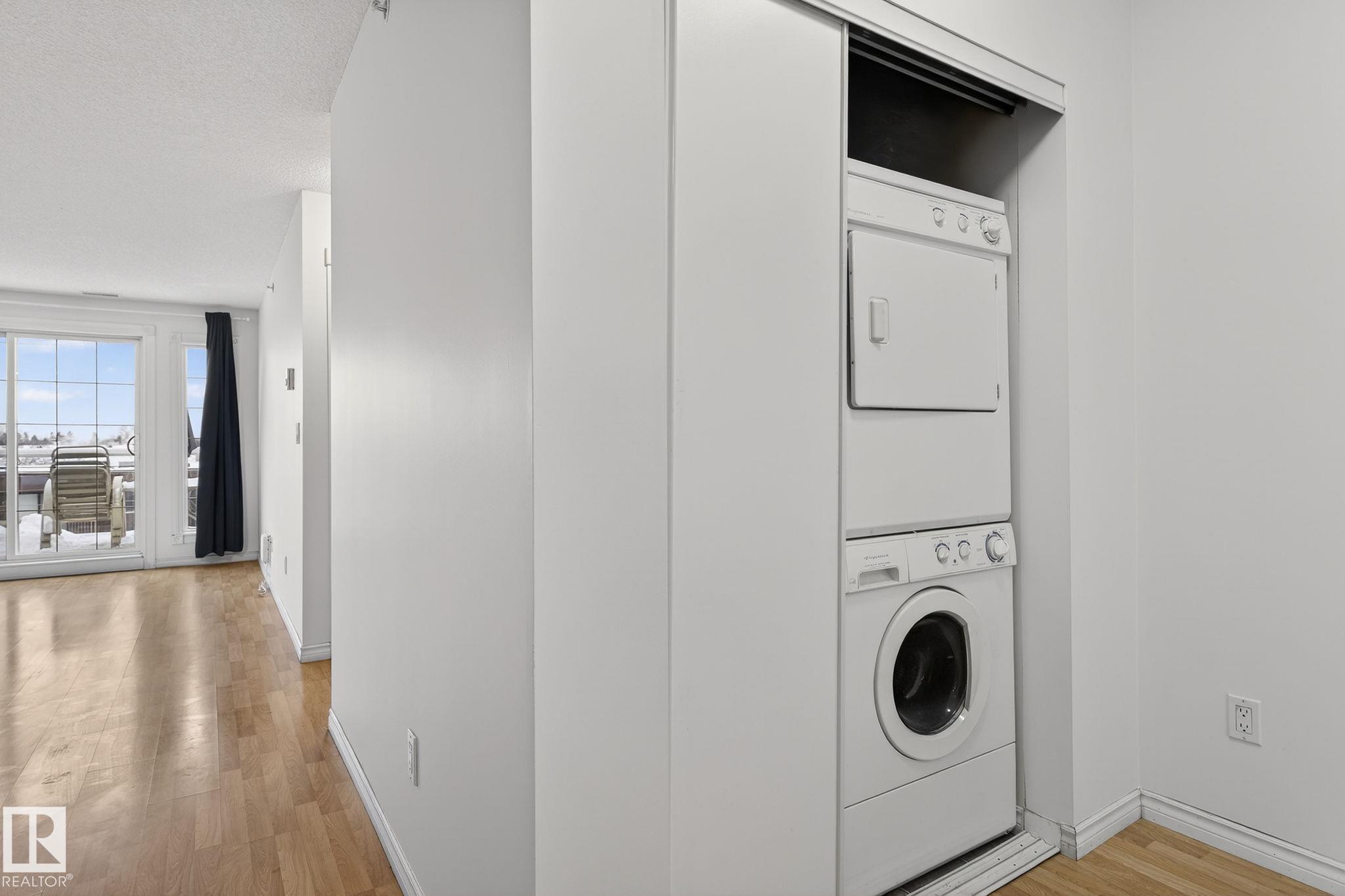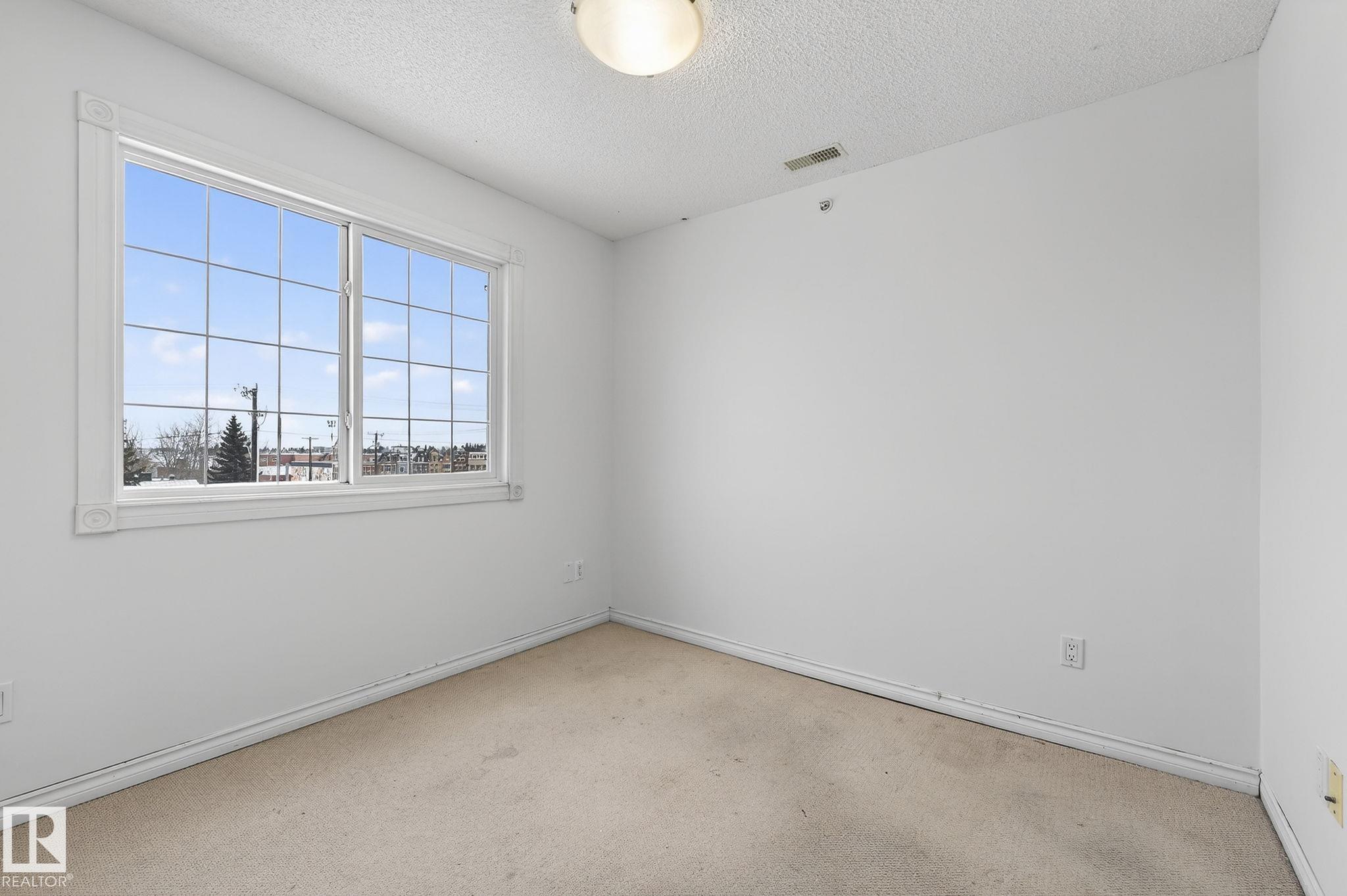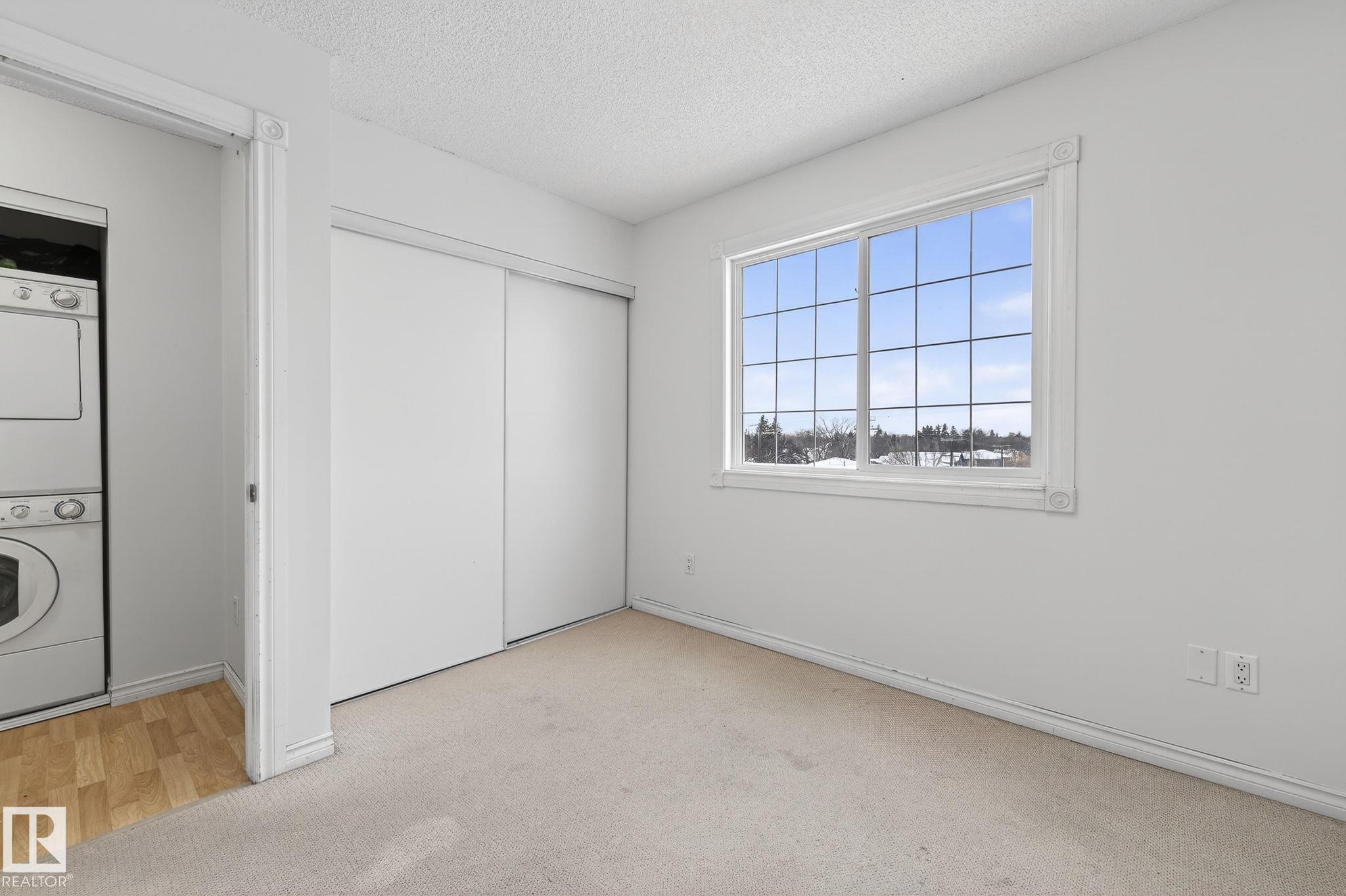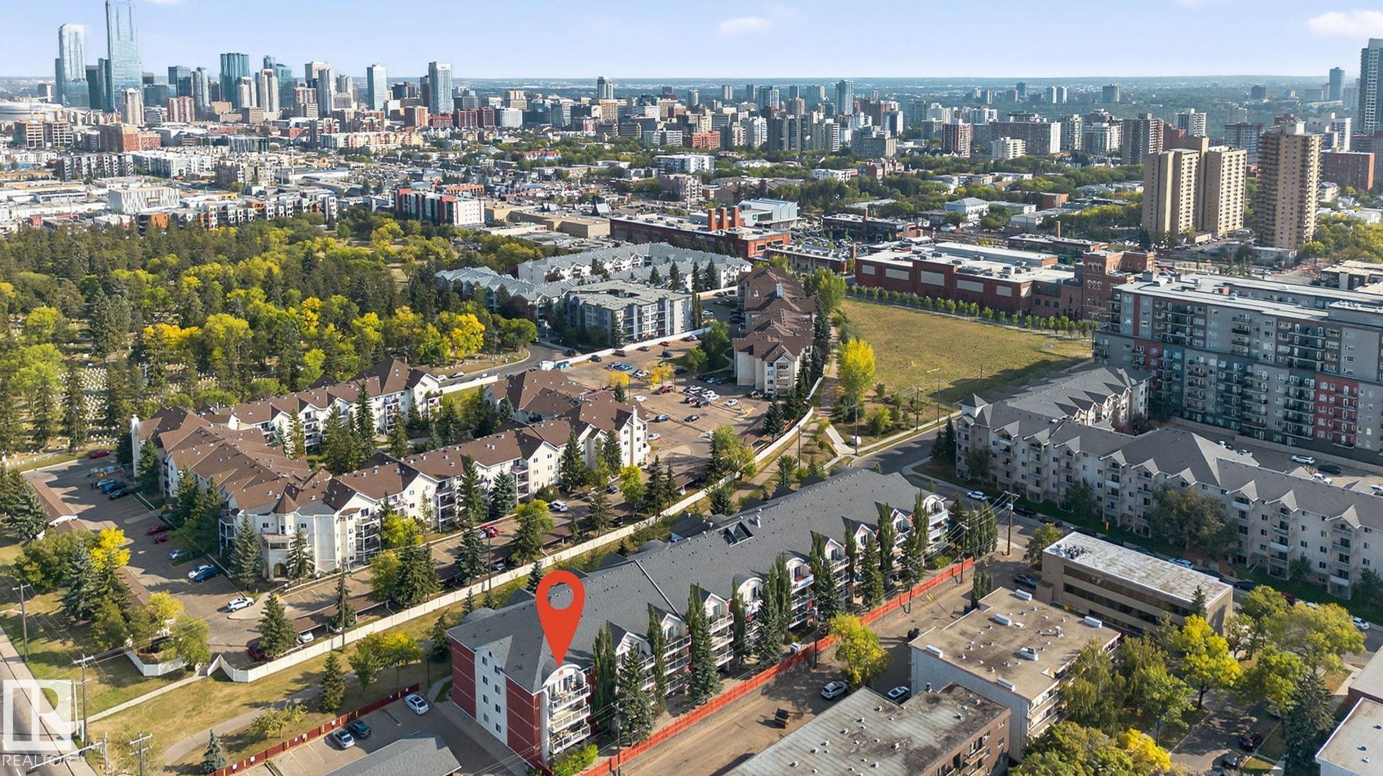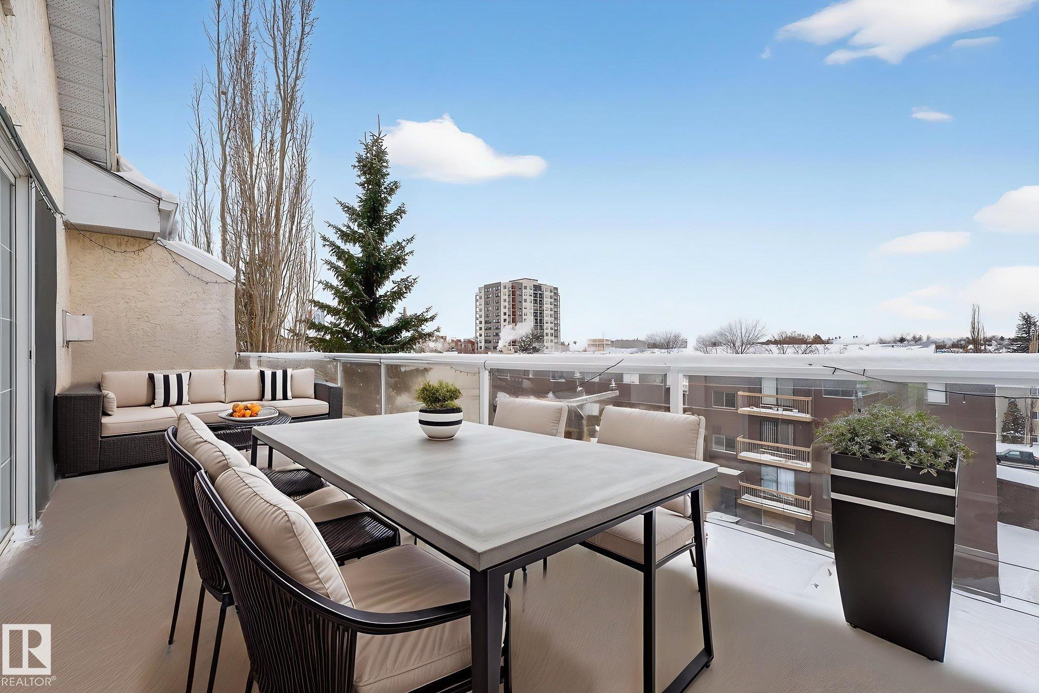 Welcome to Glenora Mansion! one or more photos were virtually satged! This beautiful top-floor, corner 808 sq. ft. 2-bedroom condo offers exceptional privacy, comfort, and an unbeatable location. With stairwells located on one side, there is minimal foot traffic and no neighboring noise, making it ideal for quiet, carefree living. The open-concept layout is bright and inviting, flowing seamlessly to a spacious west-facing patio with a gas BBQ hookup and completely unobstructed open views--perfect for entertaining or enjoying peaceful sunsets. The unit features a full bathroom, in-suite laundry, air conditioning, and single carport parking. Residents also enjoy access to a fully equipped fitness gym within the building. Ideally located near Grant MacEwan University, Rogers Place, Downtown, and LRT/public transit, this home combines convenience, privacy, and style. Perfect location, beautiful views, and looks just as impressive in person as it does in the pictures!