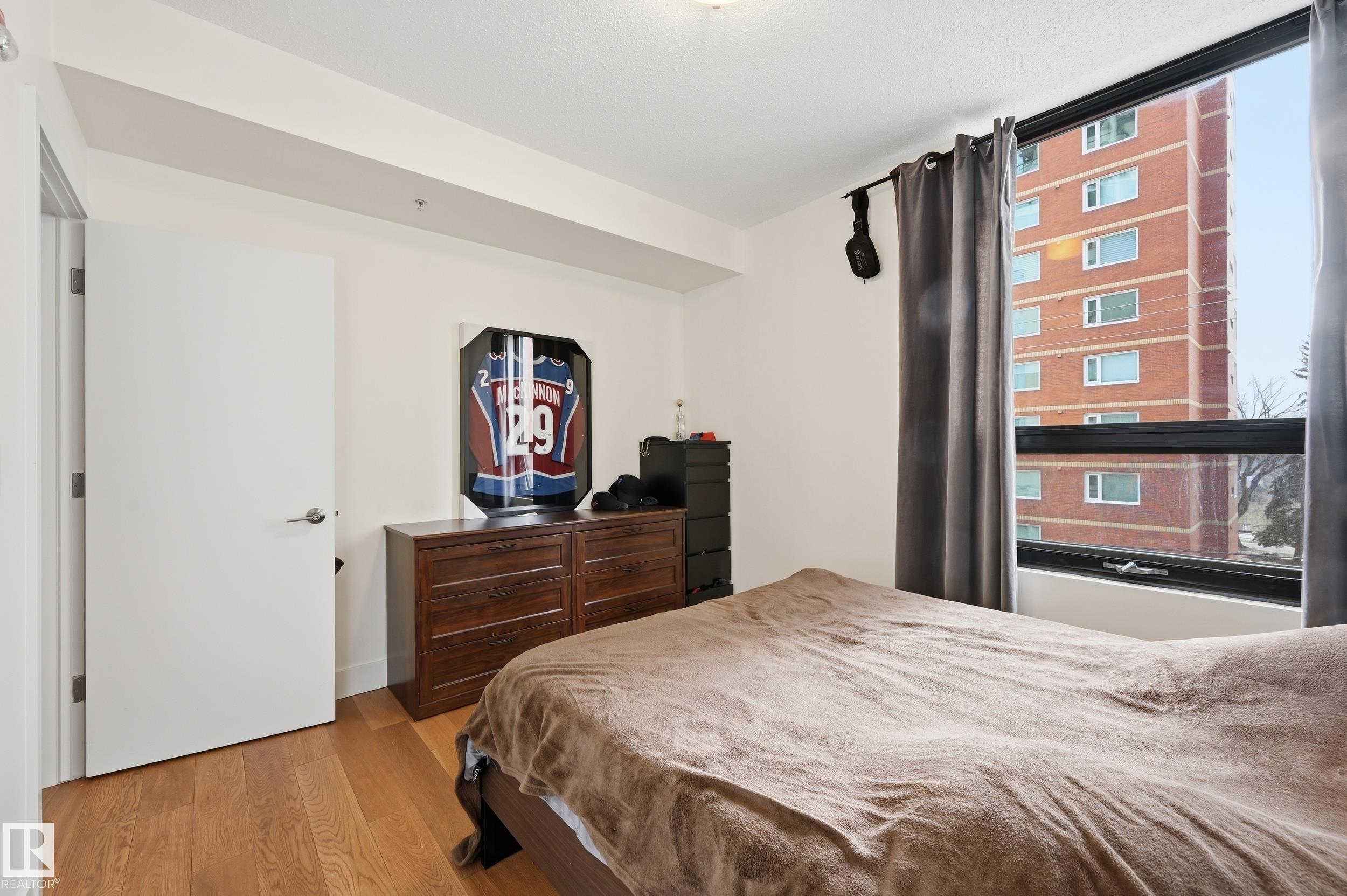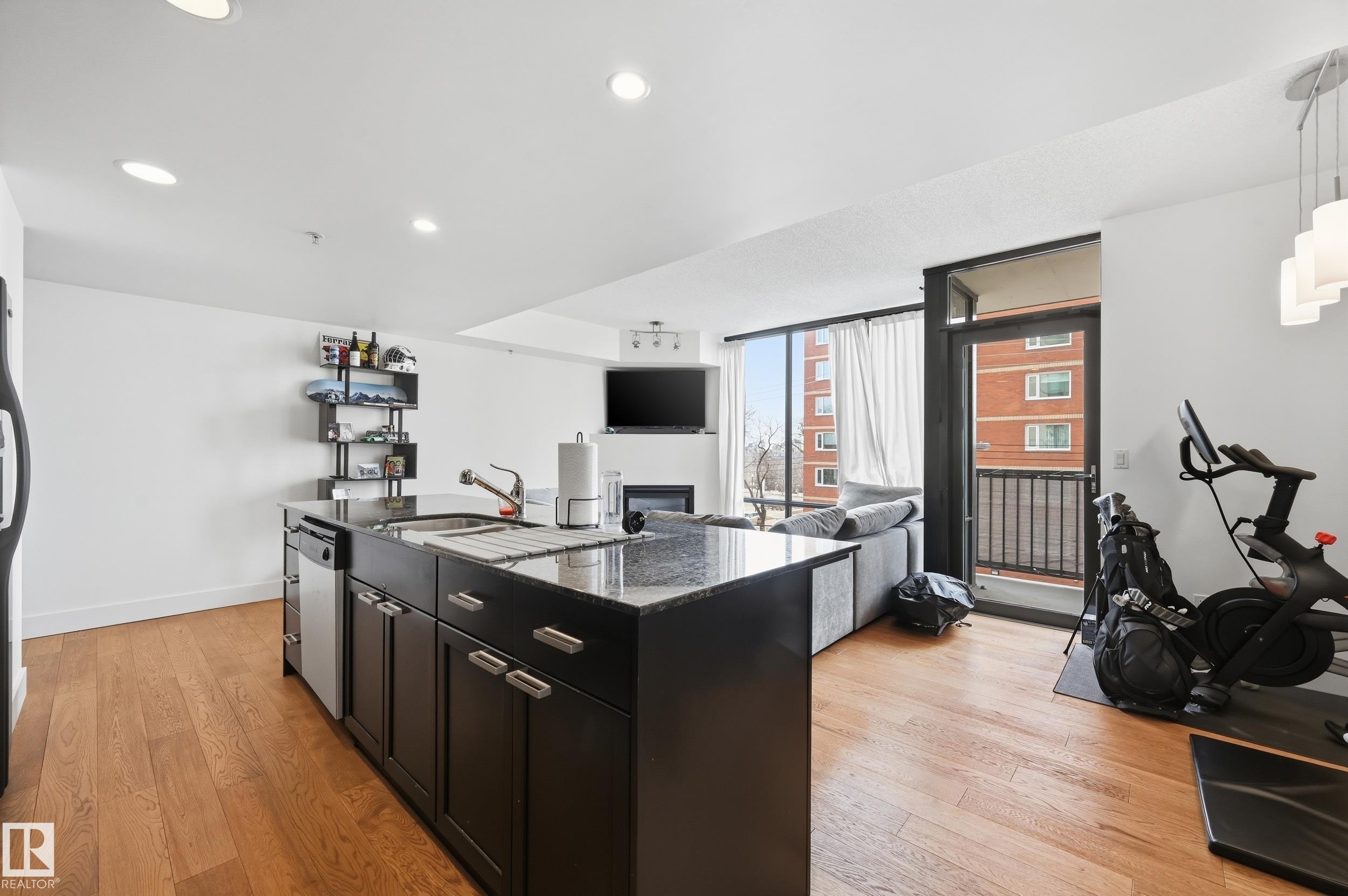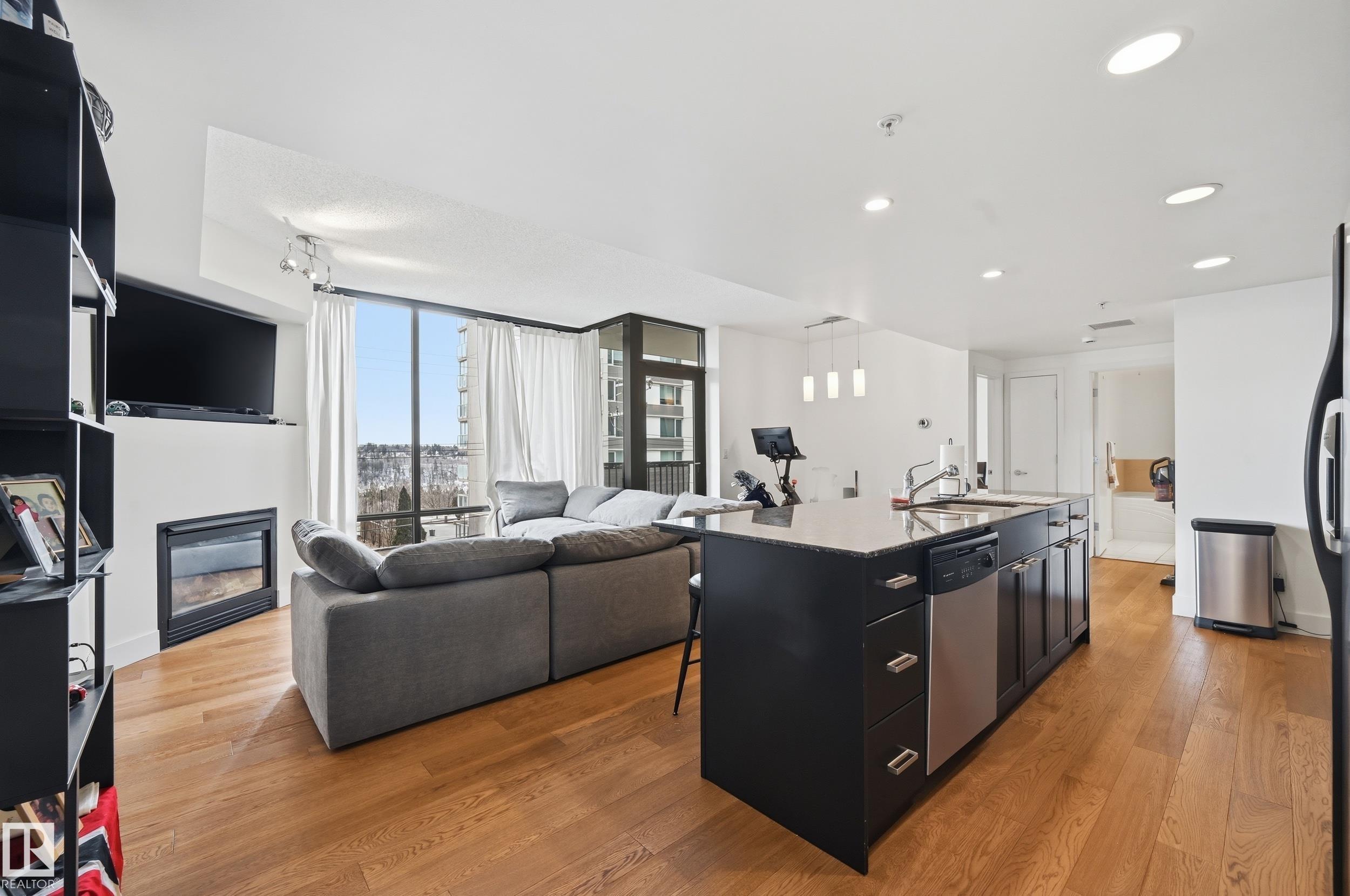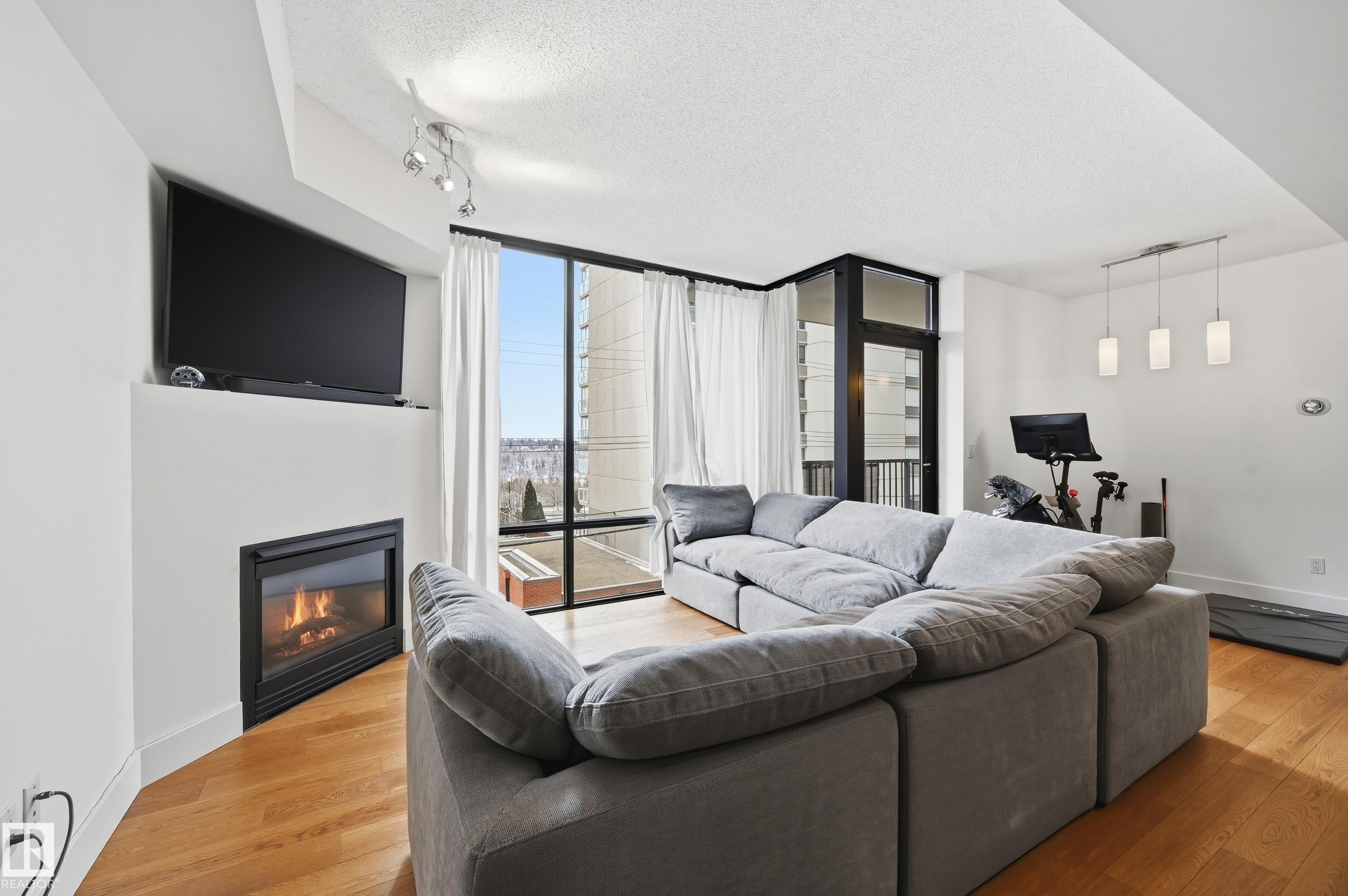 Welcome home to this spacious, luxury condo in the west downtown area. This one bed, one bath suite features floor to ceiling windows on the building's quiet side with river valley views! The spacious kitchen with a huge island, granite counters and stainless steel appliances, ideal for entertaining. Walnut hardwood floors throughout and a gas fireplace in the corner for those cold winter nights. The bathroom is huge with a large soaker tub, separate shower and private water closet. Primary bedroom is big enough to handle your king sized bed plus night stands. Some of the perks include a guest suite, underground parking for yourself and visitors and a car wash. Great patio to soak up those summer rays too. Great dining options within a couple of blocks. You're one block from jogging the river valley trails and if you work downtown you can walk to work. This is a must see for the first time buyer who wants to be in the heart of the action or if you're downsizing.