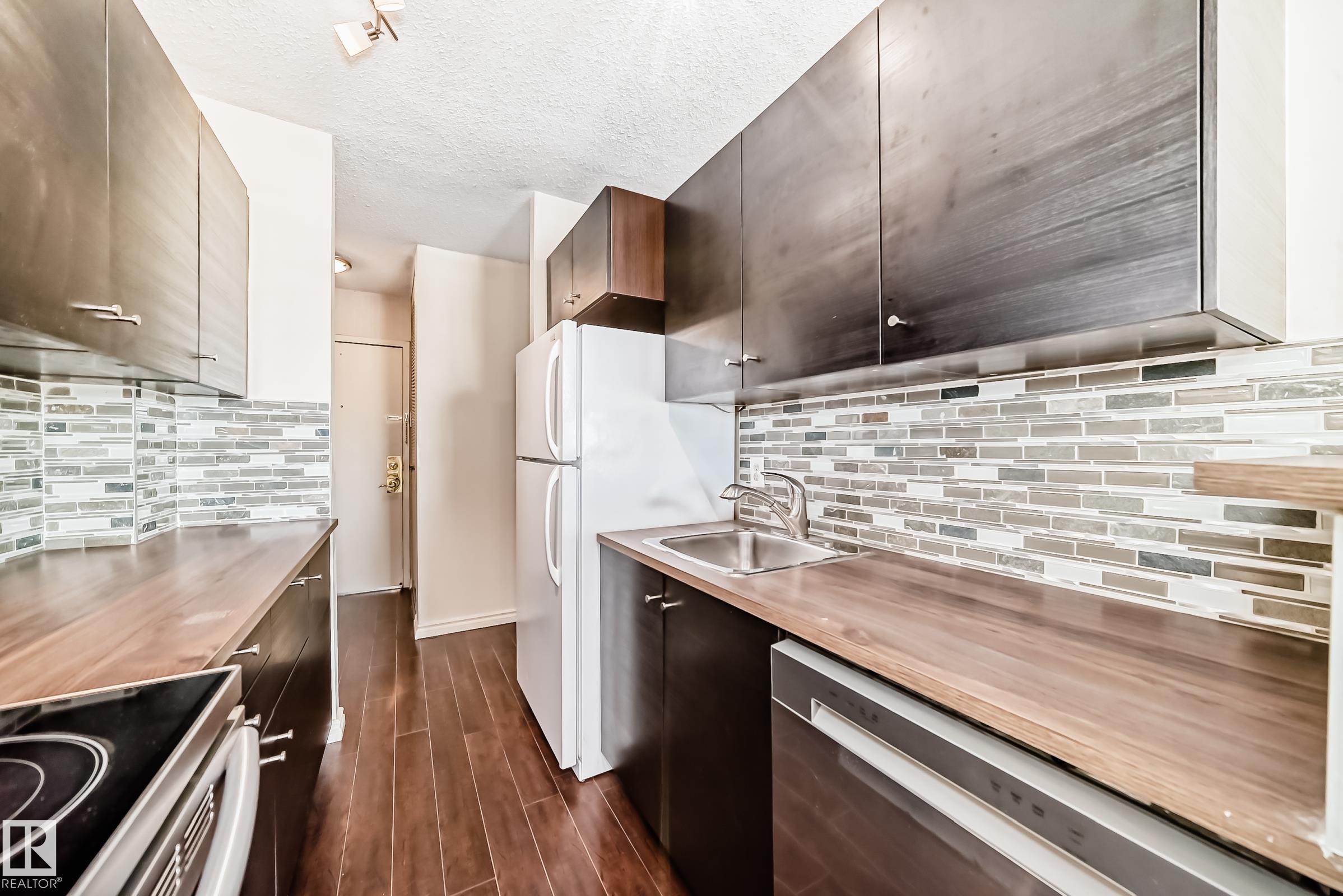 This newly-upgraded 3 bedroom, 2 full bath condo in Westcliff Arms offers fantastic views of the Legislature, city skyline, and Canada Day fireworks. This effectively managed, quiet concrete building only has 4 units per floor. This corner, 16th floor unit boasts beautiful dark flooring, upgraded kitchen cabinets, countertop, backsplash, appliances and paint. Bright and open with nearly 1100 sq ft featuring in-suite laundry, newer oversized patio door and all windows. Lots of storage in the unit, plus two extra storage cages in front of the 99-year leased underground parking, and a titled outdoor parking stall. Condo fees include heat, power, water/sewer and amenities: exercise room, party room, game room and saunas. Government Centre LRT station is right at your door, close to river valley, walking/bike paths, High Level streetcar, excellent restaurants, and much more. Perfect for families, investors, or students.