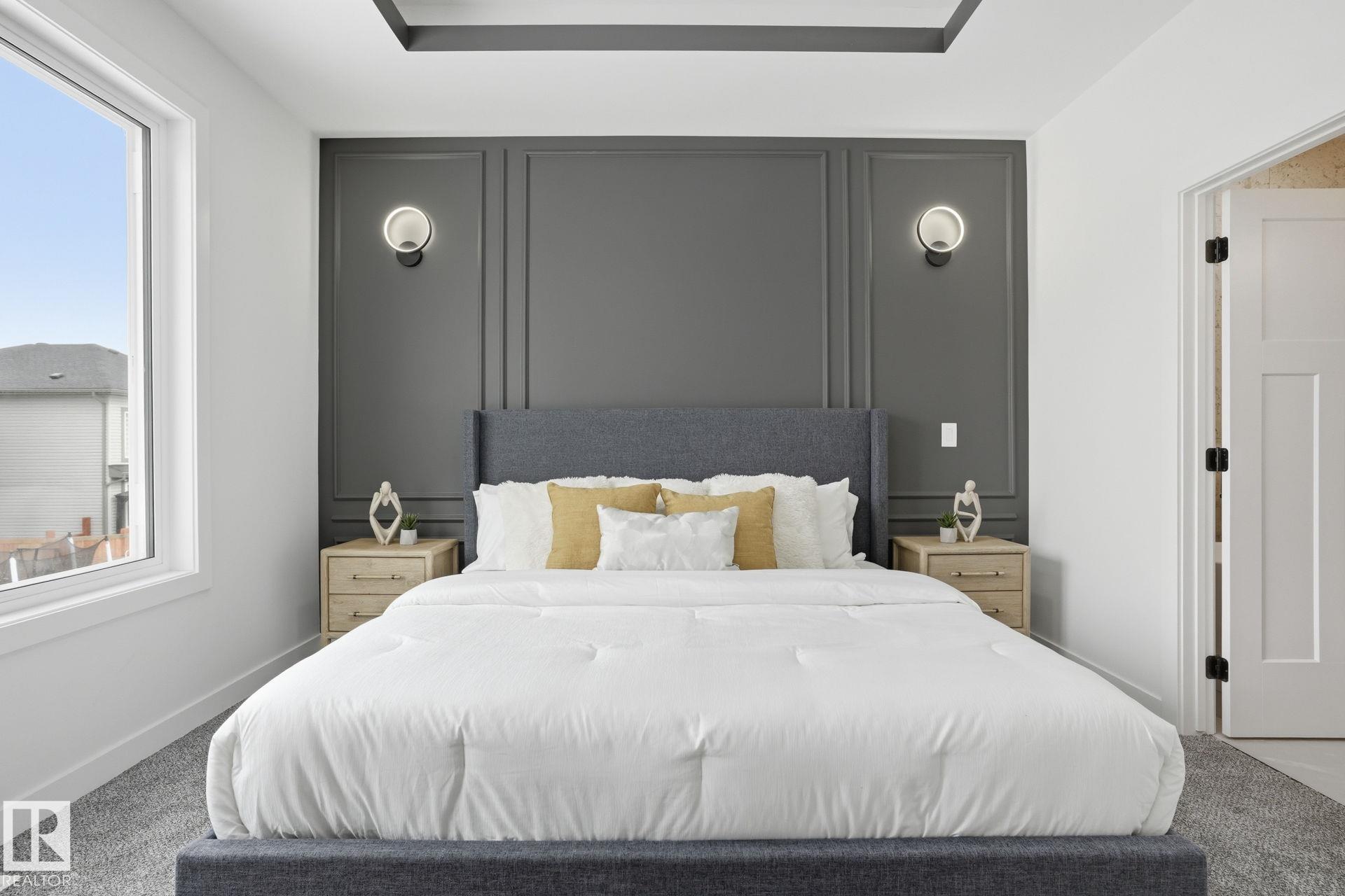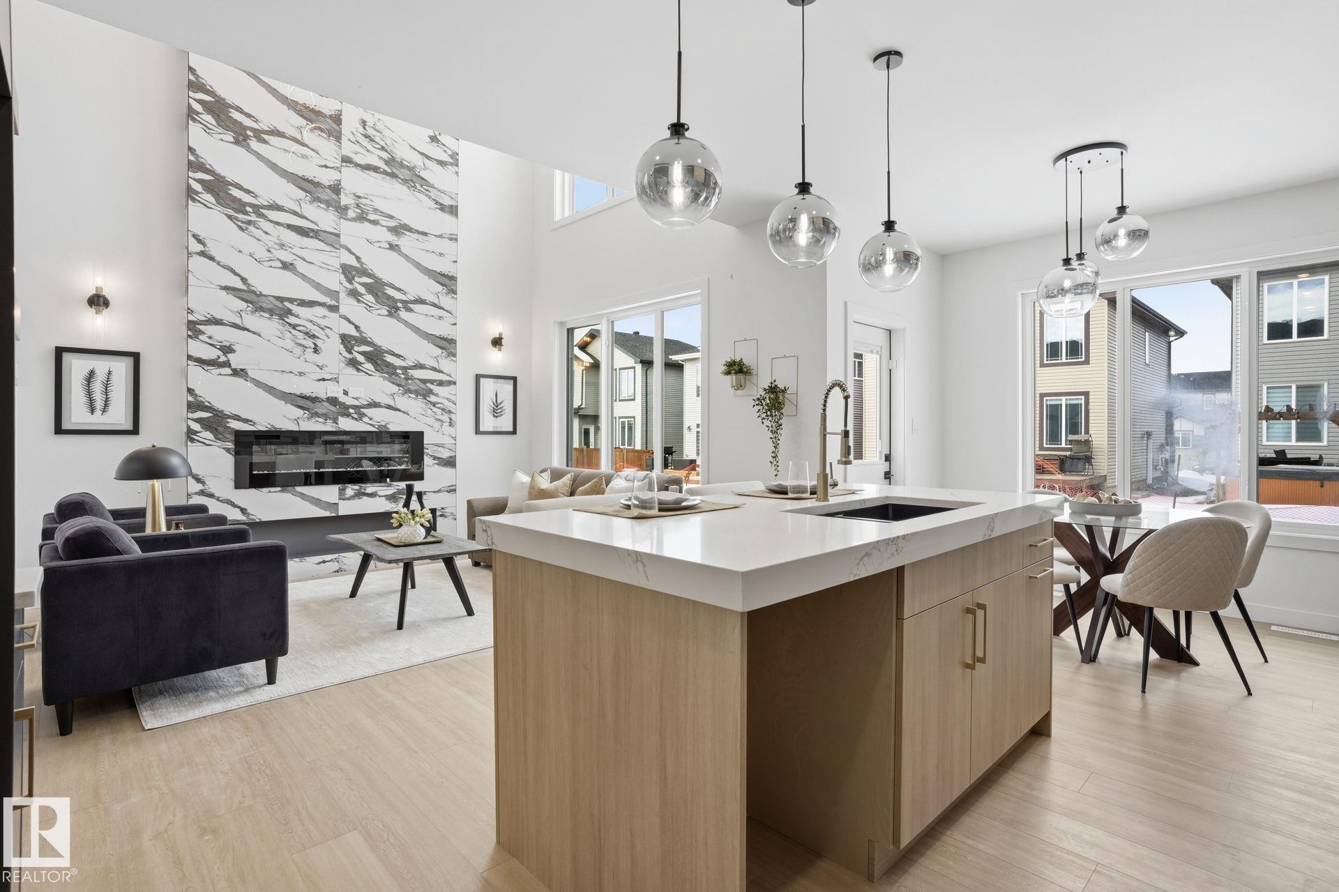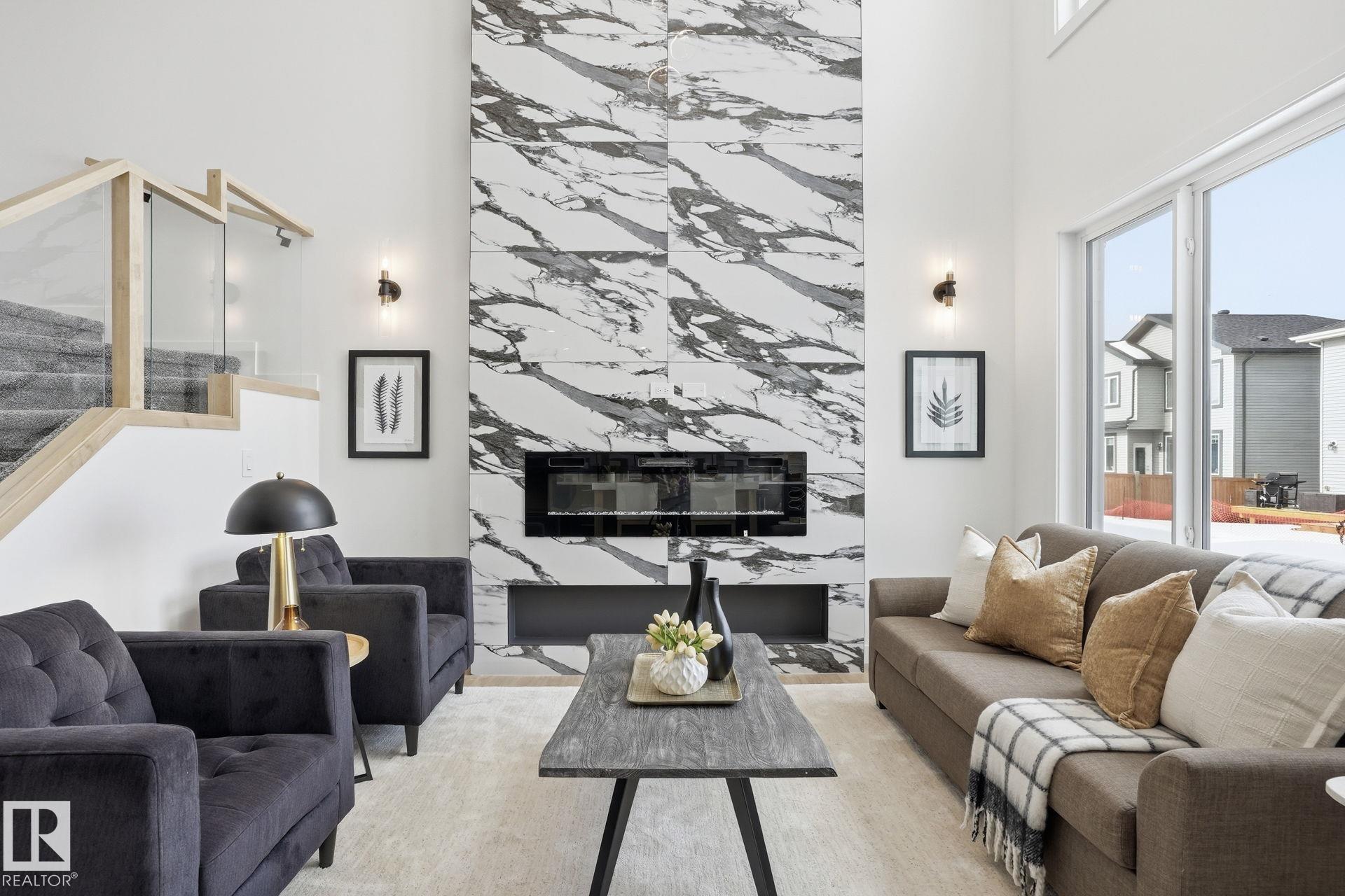 Experience refined living in this quick-possession luxury home in Beaumont, featuring a double attached garage and a separate side entrance. The main floor is thoughtfully designed with a office space, elegant 3-pc bath, and spacious mudroom, leading into a breathtaking open-concept living space. A chef-inspired gourmet kitchen is complemented by a dedicated spice kitchen - perfect hosting the whole family - while the great room impresses with a striking tiled fireplace and dramatic open-to-above ceilings that flood the home with light. Upstairs, discover a beautifully planned retreat with a bonus space, 4pc bath and convenient laundry with sink and quartz countertop. Three bedrooms include a lavish primary suite showcasing a spa-inspired 5-pc ensuite with double sinks, a seated makeup vanity, freestanding tub, and a custom walk-in closet designed for elevated everyday living. $5,000 appliance credit included to select your choice of appliances!