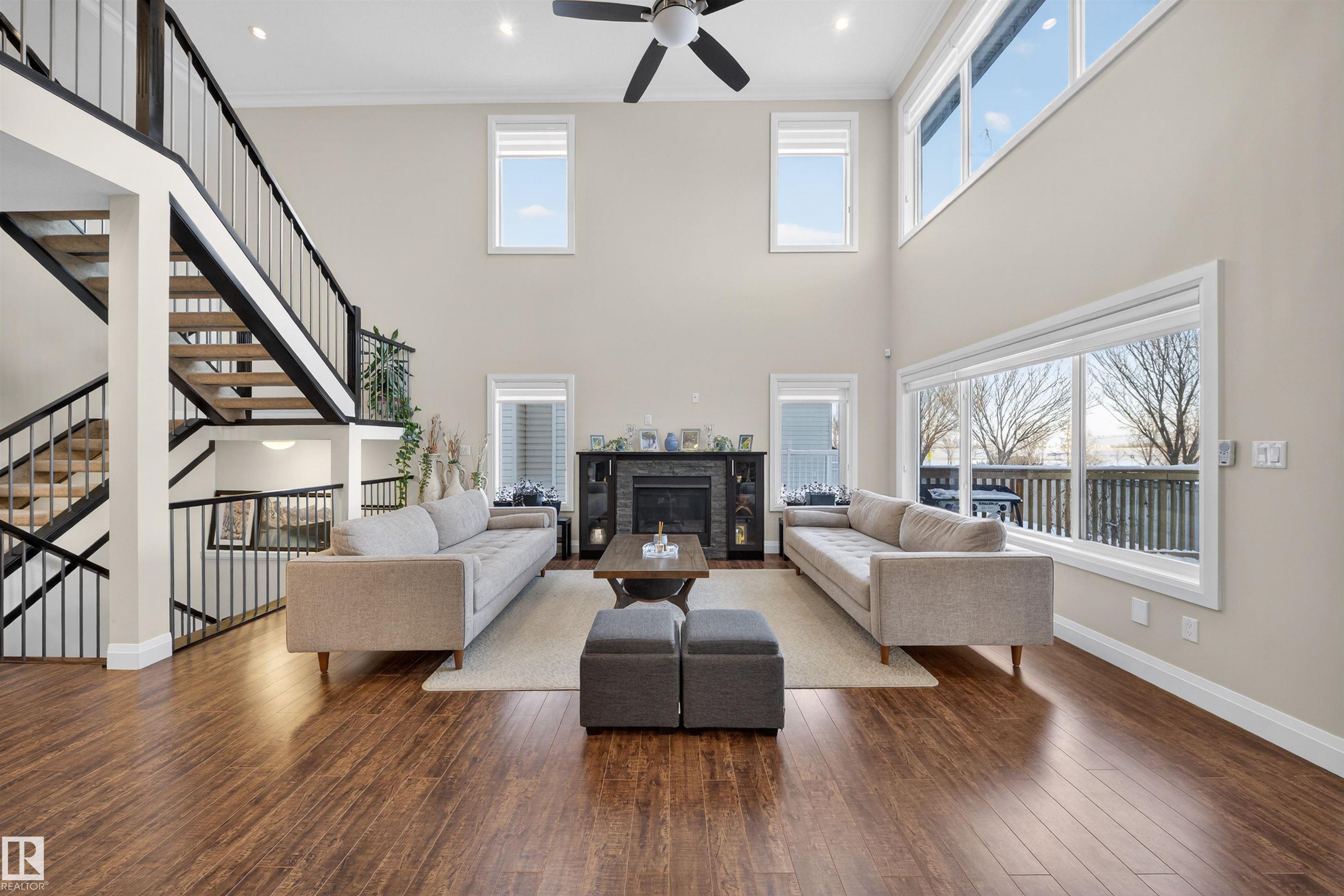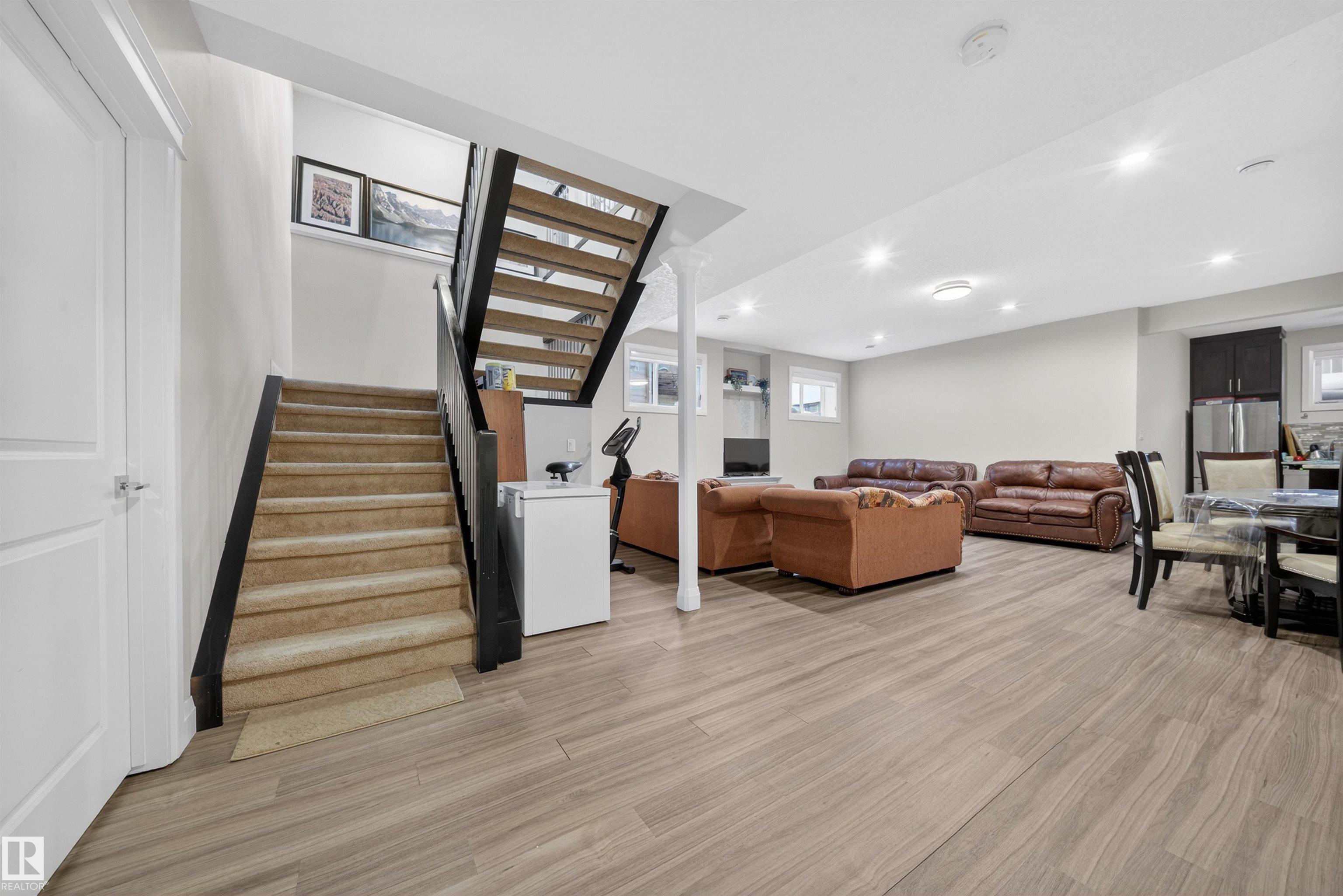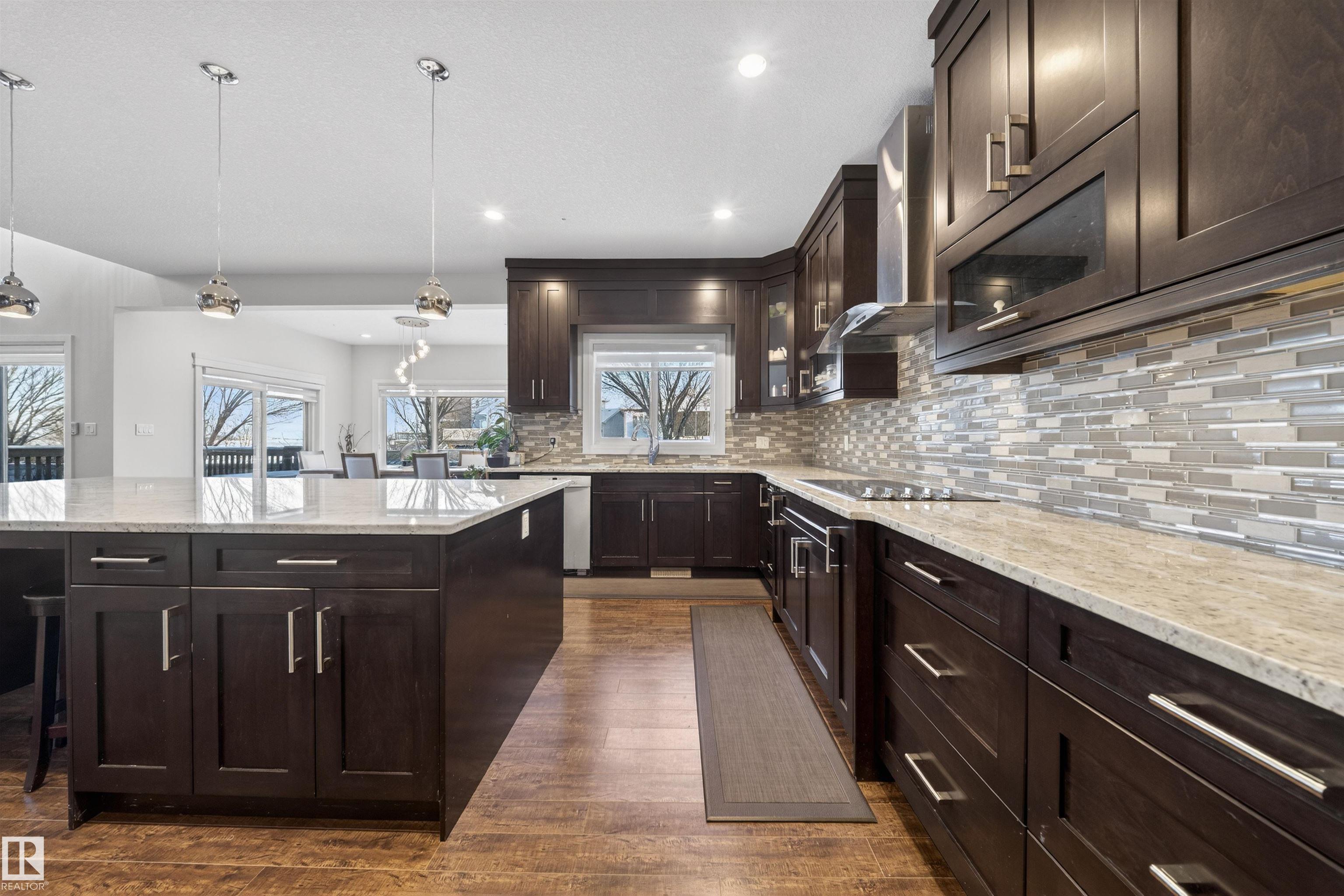 Welcome to this impressive custom-built home offering over 4,200 sqft of total living space, located in the desirable community of Bridgeport. The main floor includes an office & full bathroom, gourmet kitchen showcases granite countertops, ample cabinetry with pantry, large central island & an expansive dining area & an open-concept layout overlooking the living area with open-to-below ceiling & custom staircase. Upstairs offers oversized primary bedroom with a walk-in closet & a spacious ensuite featuring a standing shower, jacuzzi & double-sink vanity, 2 generously sized bedrooms, a full bathroom, a convenient laundry room & a large bonus area perfect for family living. The fully finished basement adds flexibility with a second kitchen, full bath, bedroom & huge rec room. Completing this exceptional home are a stucco exterior, rear deck, & fully landscaped yard, along with an oversized double attached garage featuring a floor drain, 220V outlet, sink, convenient side door, & generous storage.