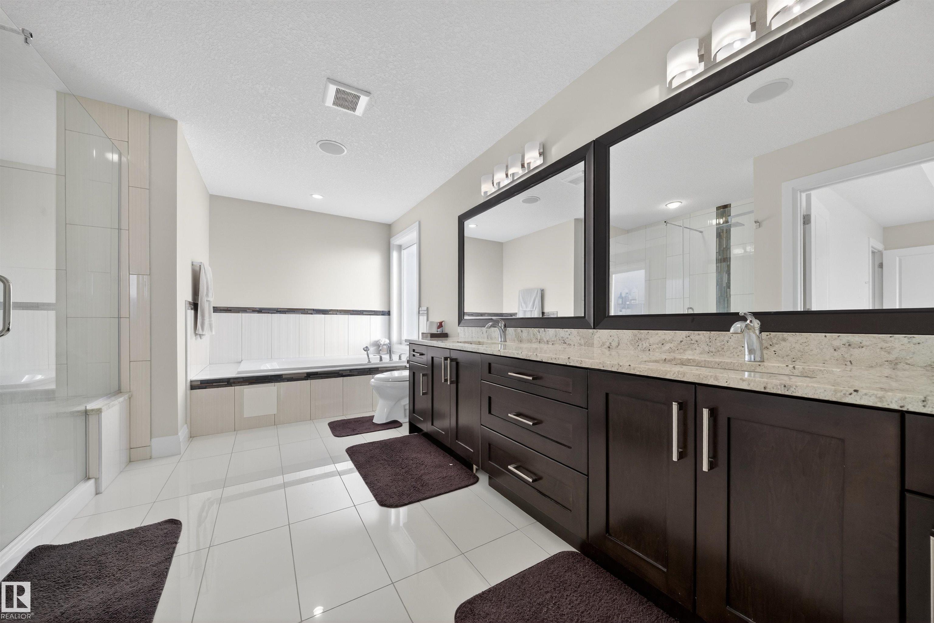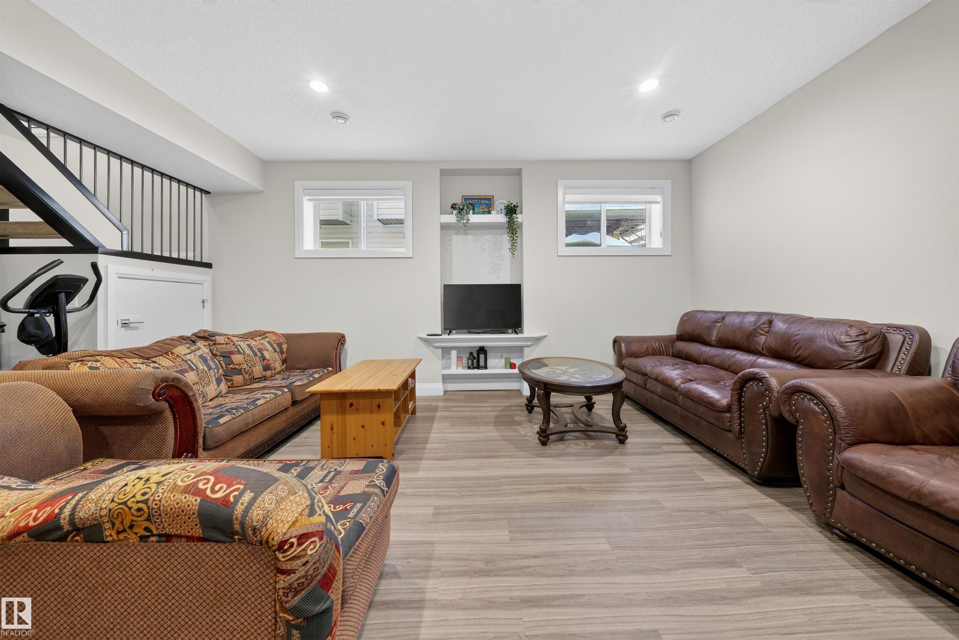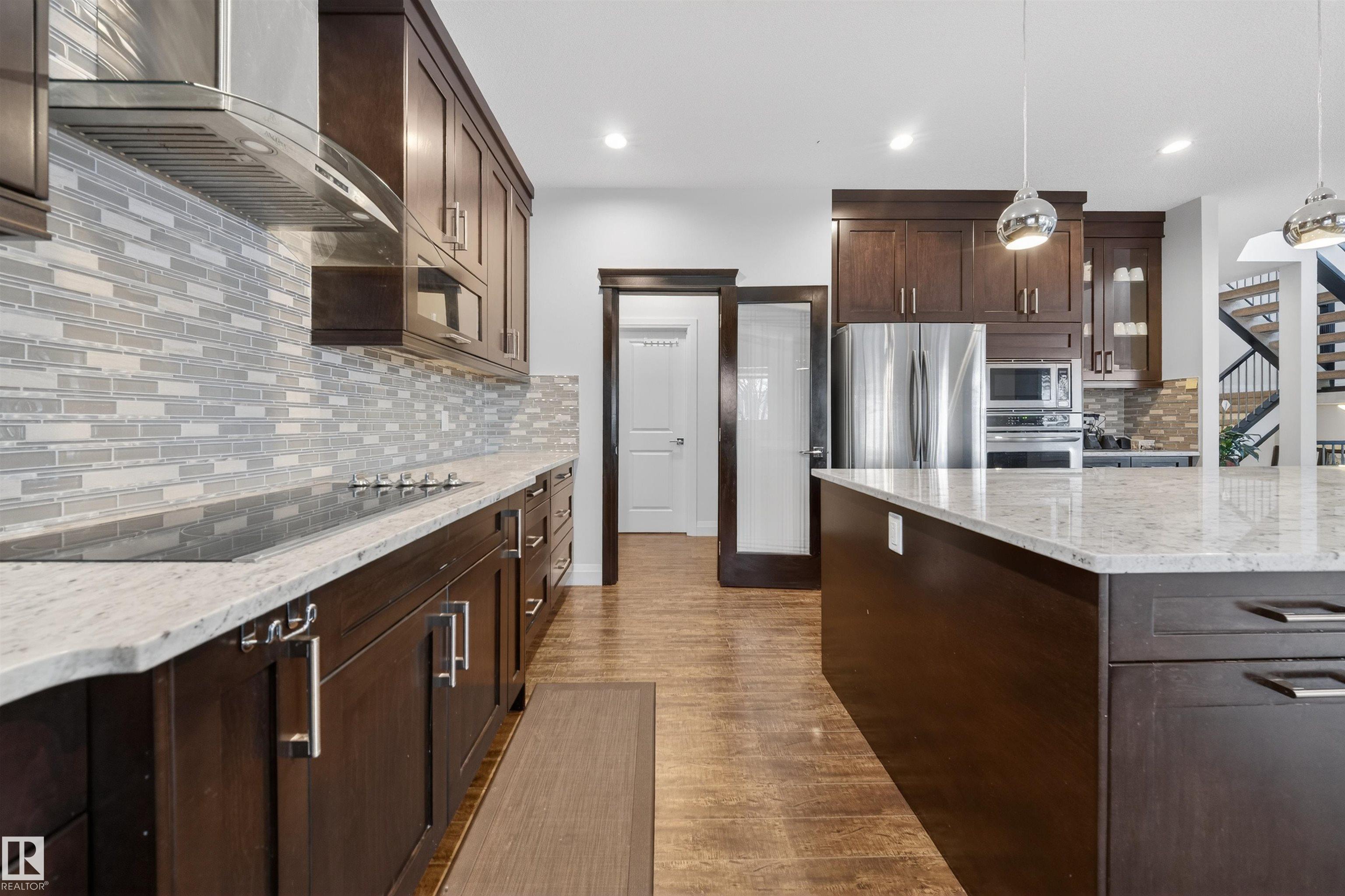 Welcome to this impressive custom-built home offering over 4,200 sqft of total living space, located in the desirable community of Bridgeport. The main floor includes an office & full bathroom, gourmet kitchen showcases granite countertops, ample cabinetry with pantry, large central island & an expansive dining area & an open-concept layout overlooking the living area with open-to-below ceiling & custom staircase. Upstairs offers oversized primary bedroom with a walk-in closet & a spacious ensuite featuring a standing shower, jacuzzi & double-sink vanity, 2 generously sized bedrooms, a full bathroom, a convenient laundry room & a large bonus area perfect for family living. The fully finished basement adds flexibility with a second kitchen, full bath, bedroom & huge rec room. Completing this exceptional home are a stucco exterior, rear deck, & fully landscaped yard, along with an oversized double attached garage featuring a floor drain, 220V outlet, sink, convenient side door, & generous storage.