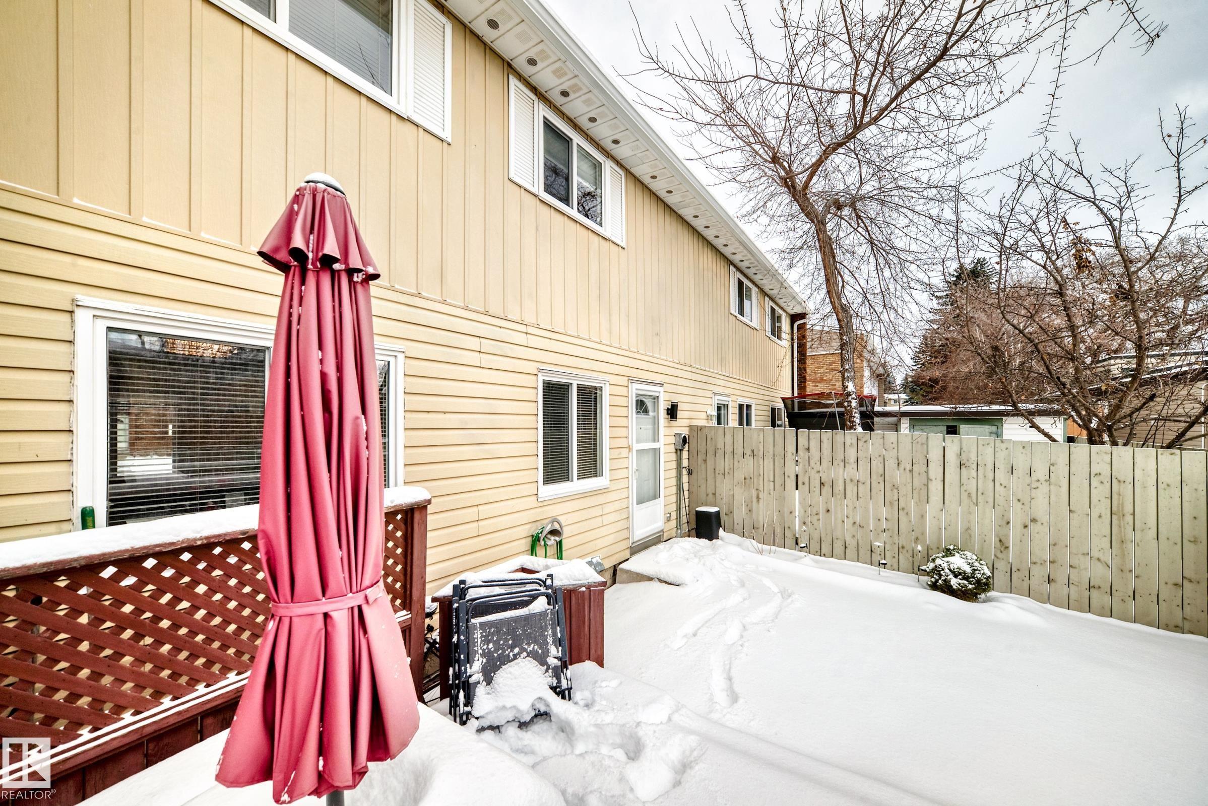 SERENITY AWAITS in this SUBSTANTIALLY RENOVATED townhome, situated in St Albert's highly coveted Braeside area. Enjoy living mere steps away from treed ravines, schools, shopping, recreation & so much more. Situated in a quiet location in Ridgewood Terrace, you will love having quick access to your COVERED PARKING SPOT, located just across from the front door. Step inside & be treated to a world of comfort & quality, with a main floor offering a functional layout, suitable for all lifestyles. Enjoy a modern color-palette, gleaming floors, a large FULLY UPGRADED KITCHEN w/ granite countertops, modern appliances & newer cabinets. The main floor offers a convenient 2-pc bathroom. Upstairs are 3 spacious bedrooms & a lovingly redesigned 4-pc bath. Downstairs is wide open & spacious, offering plenty of space for storage & living! Step out back & enjoy a fenced backyard, offering direct access onto the greenspace this unit backs onto. Affordable condo fees & a well-run condo completes this package!