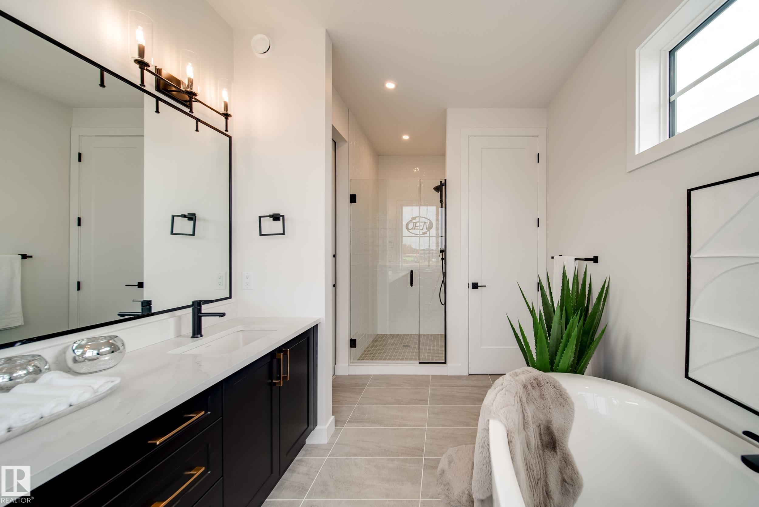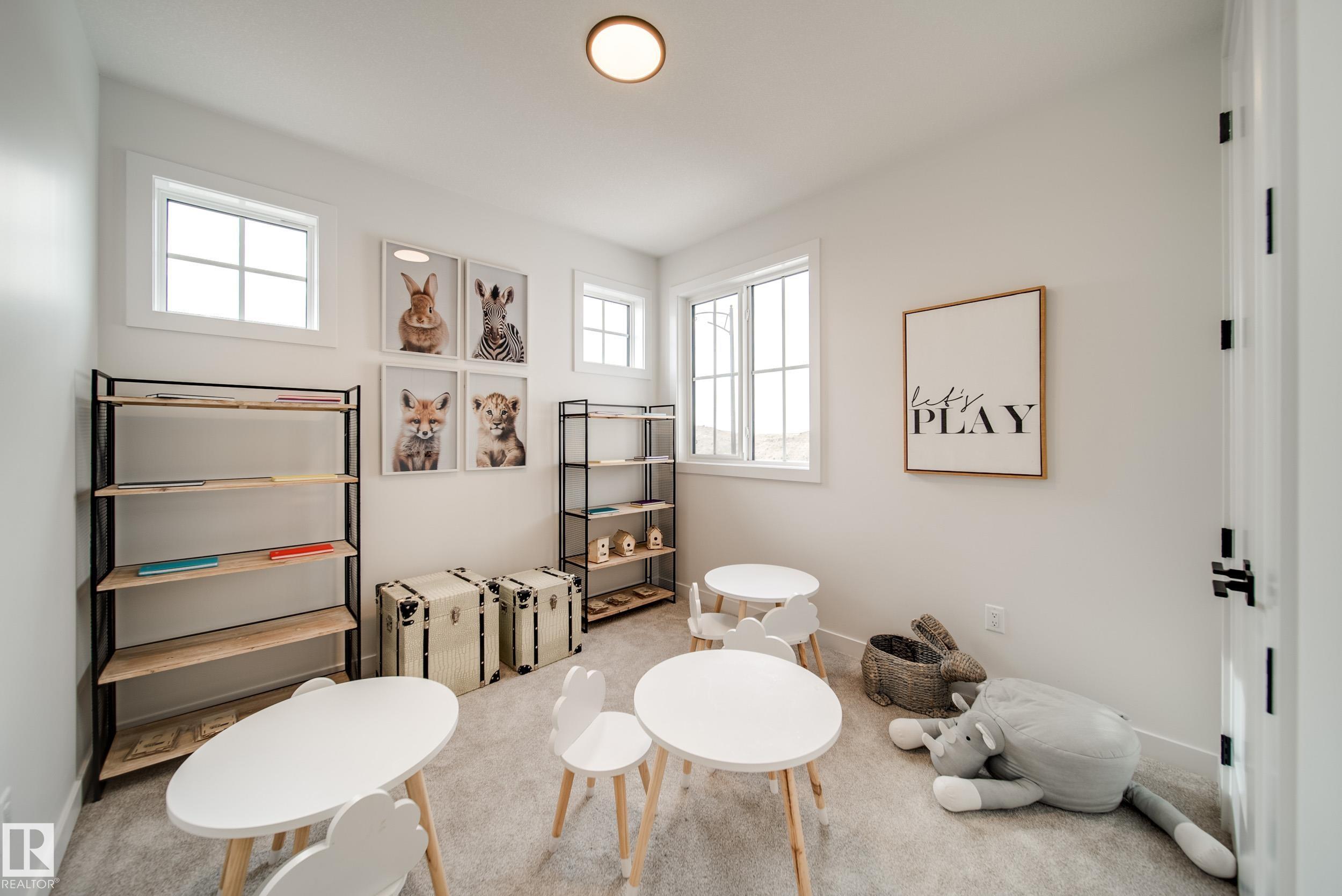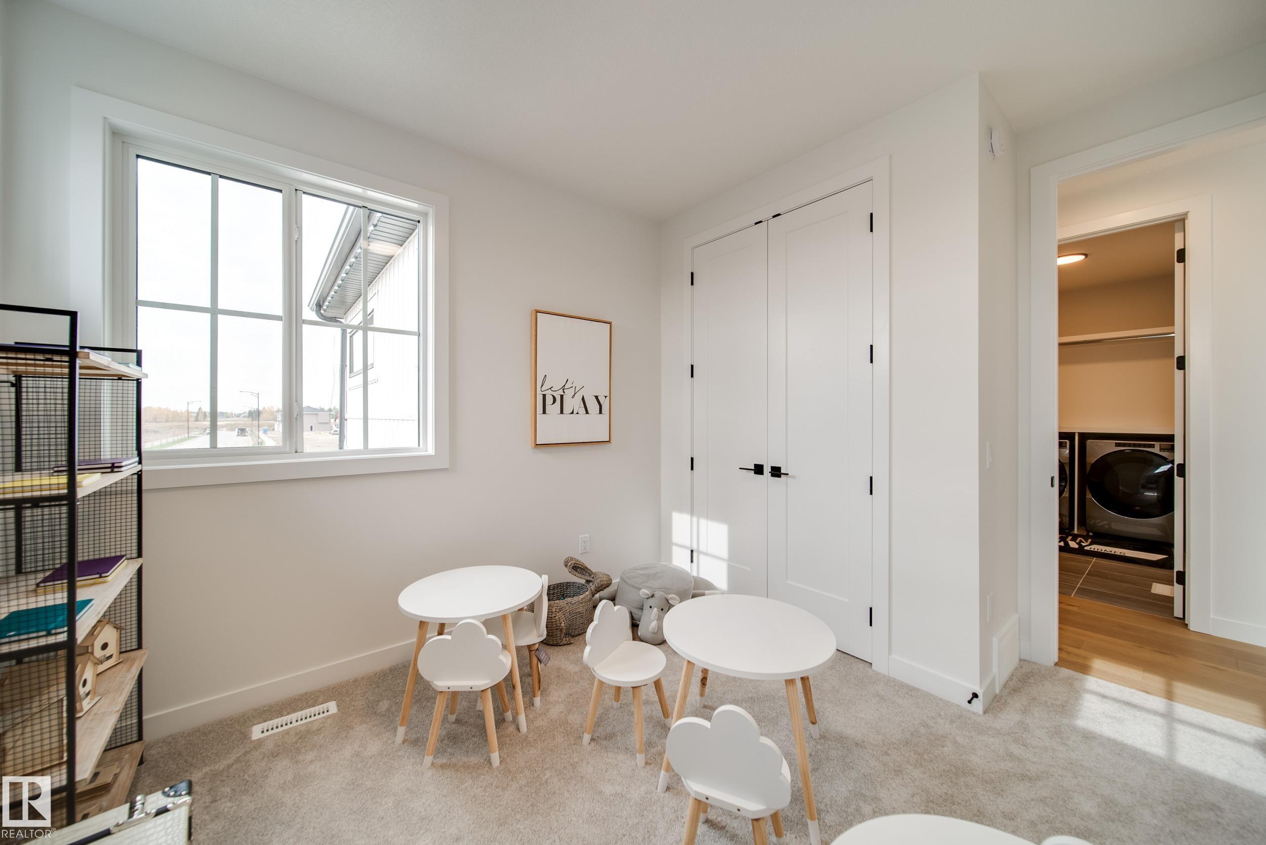 Welcome to The Vantablack by AWARD WINNING builder Justin Gray Homes, perfectly set on a 30' pocket cul-de-sac lot in Cherot. This over 2500 sqft UPGRADED masterpiece blends luxury & functionality in a Modern Farmhouse colour palette by CM Interiors, showcasing sleek black cabinetry & timeless Carrera QUARTZ counters. The open to below great rm fills the home w/natural light, complemented by 9' ceilings, 8' doors, HARDWOOD floors, & a cozy GAS fireplace. An oversized dbl garage leads to a mudrm w/custom MDF built-ins, connecting to a walkthru pantry w/JG's signature archways,to a chef inspired kitchen w/huge island, & premium DOVETAIL cabinetry. A bright den & 1/2 bath complete the main. Upstairs features 3 spacious bdrms, incl. a dreamy primary retreat w/VAULTED ceilings, panelled feat. wall, spa-inspired 5 pc ensuite & massive WIC w/DIRECT access to laundry. Steps to parks,& near future schools & rec center - where luxury, comfort & craftsmanship meet. Photos of similar model&layout/finishes may vary.