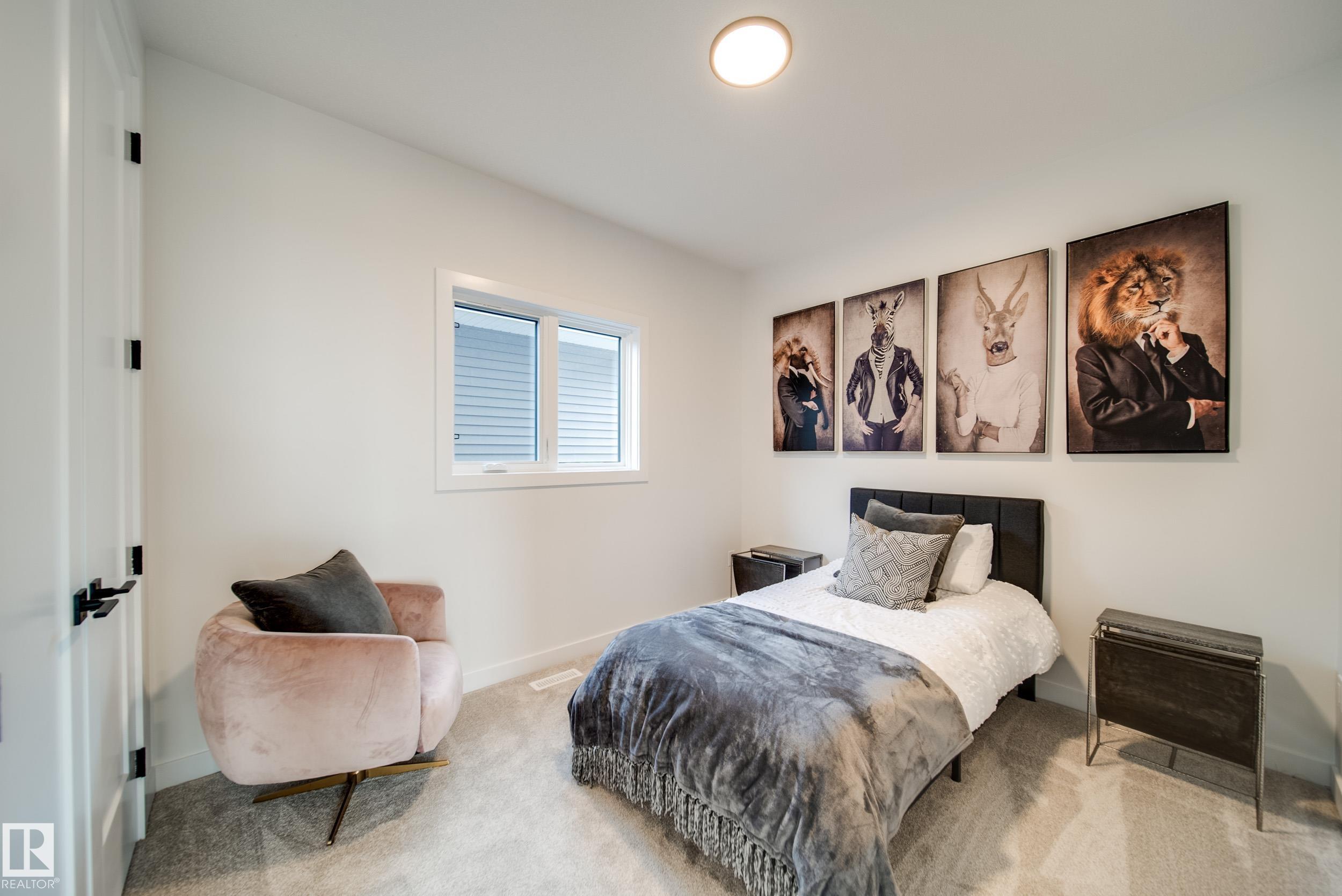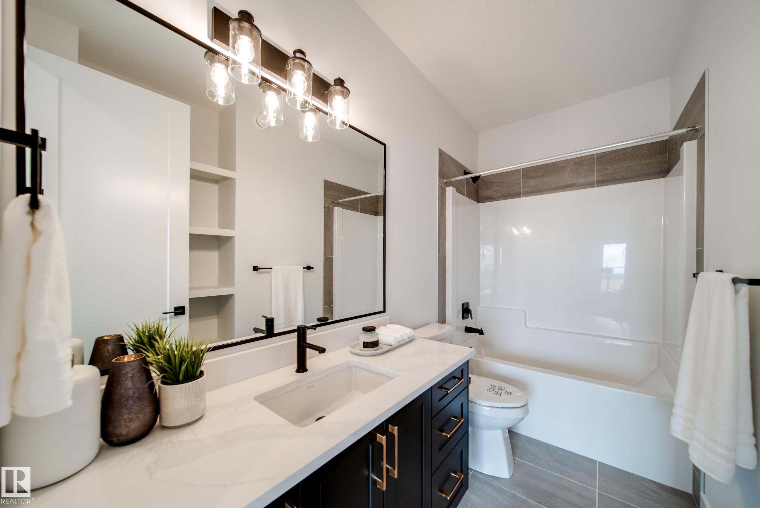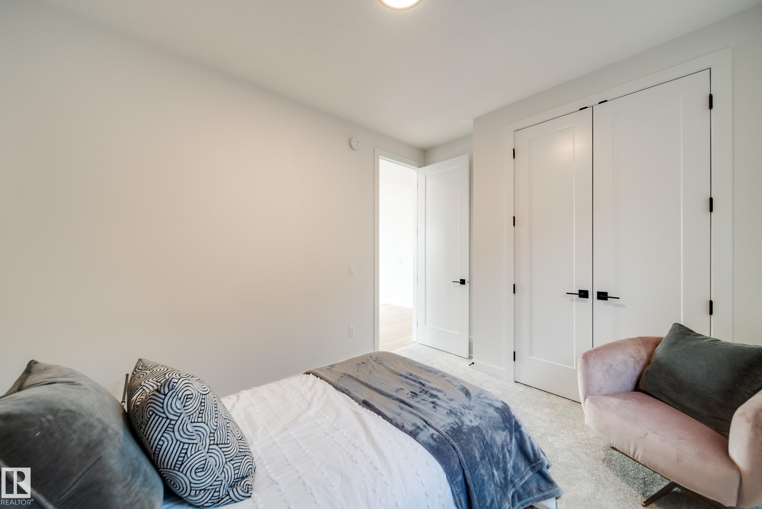 Welcome to The Vantablack by AWARD WINNING builder Justin Gray Homes, perfectly set on a 30' pocket cul-de-sac lot in Cherot. This over 2500 sqft UPGRADED masterpiece blends luxury & functionality in a Modern Farmhouse colour palette by CM Interiors, showcasing sleek black cabinetry & timeless Carrera QUARTZ counters. The open to below great rm fills the home w/natural light, complemented by 9' ceilings, 8' doors, HARDWOOD floors, & a cozy GAS fireplace. An oversized dbl garage leads to a mudrm w/custom MDF built-ins, connecting to a walkthru pantry w/JG's signature archways,to a chef inspired kitchen w/huge island, & premium DOVETAIL cabinetry. A bright den & 1/2 bath complete the main. Upstairs features 3 spacious bdrms, incl. a dreamy primary retreat w/VAULTED ceilings, panelled feat. wall, spa-inspired 5 pc ensuite & massive WIC w/DIRECT access to laundry. Steps to parks,& near future schools & rec center - where luxury, comfort & craftsmanship meet. Photos of similar model&layout/finishes may vary.