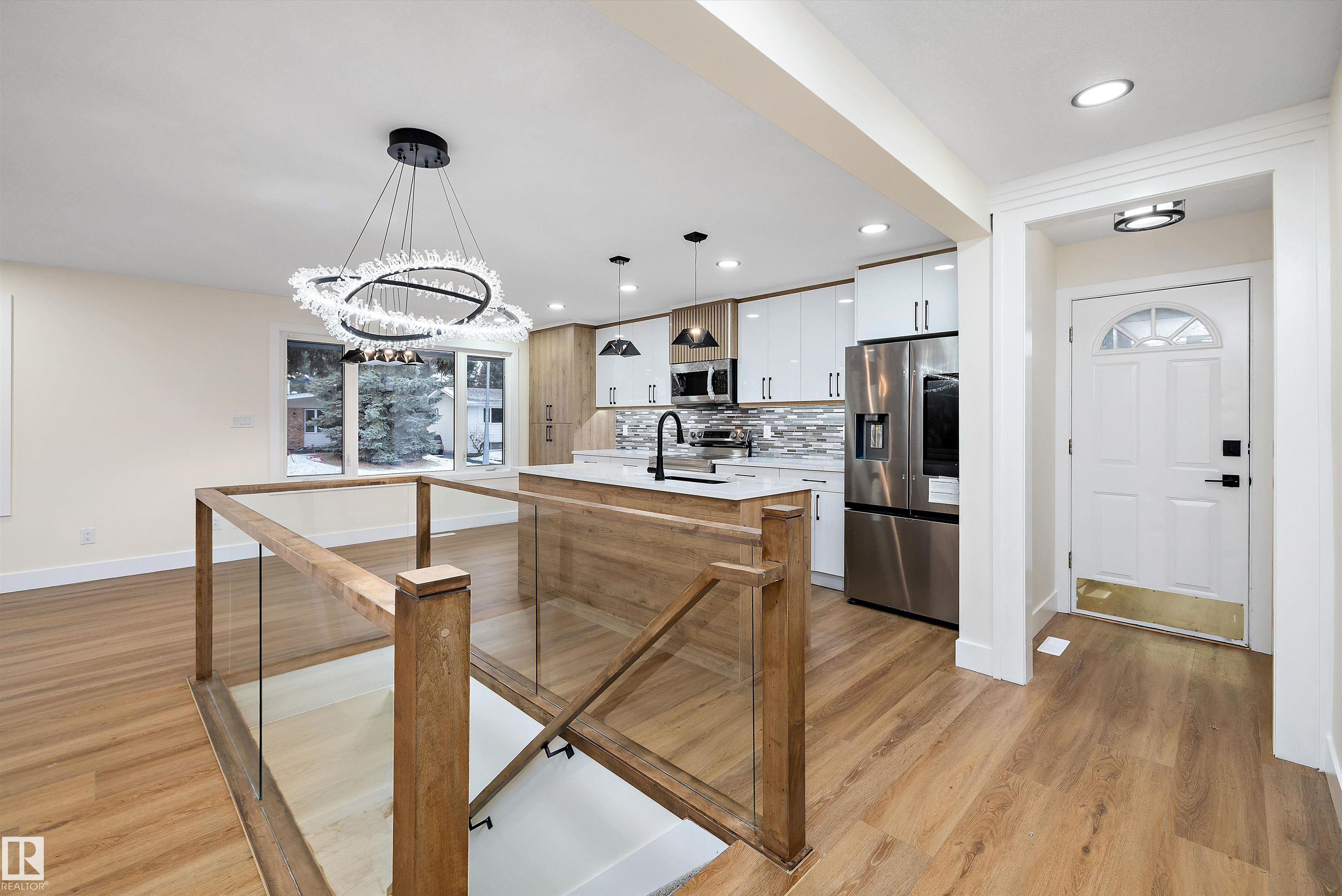 Welcome to this beautifully renovated home in the desirable Glen Allan community of Sherwood Park. Thoughtfully redesigned with an open-concept layout, this home offers a seamless flow perfect for both everyday living and entertaining. Featuring 4 spacious bedrooms and 3 full bathrooms, there's plenty of room for families of all sizes. The modern glass railing adds a striking architectural touch as it leads you to the fully developed basement, complete with a stylish wet bar and an incredible theater room--perfect for hosting and movie nights. The single attached garage adds everyday convenience, while the quality upgrades throughout provide a true move-in ready experience. A perfect blend of style, comfort, and functionality in a well-established neighborhood.