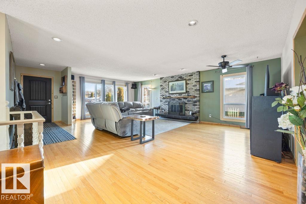 This amazing bungalow located in the quiet Neighborhood of Woodbridge Farms, has over 3000sq of comfortable living space. With a spacious floor plan, beautiful hardwood and large windows for loads of natural light, this home truly feels welcoming. Enjoy the updated kitchen with custom made cabinets or relax in the large family/ Rec area that can easily accommodate a pool table. With 3 +2 Bedrooms and being so close to multiple schools, this house is perfect for a growing family. For the cold Alberta nights, the property has 2 working wood burning fireplaces. When the snow finally melts, you will enjoy the recently landscaped yard and updated deck. Close to the Anthony Henday, Costco, public golf and Broadmoor Park, It's the perfect location to start your new Journey!!!